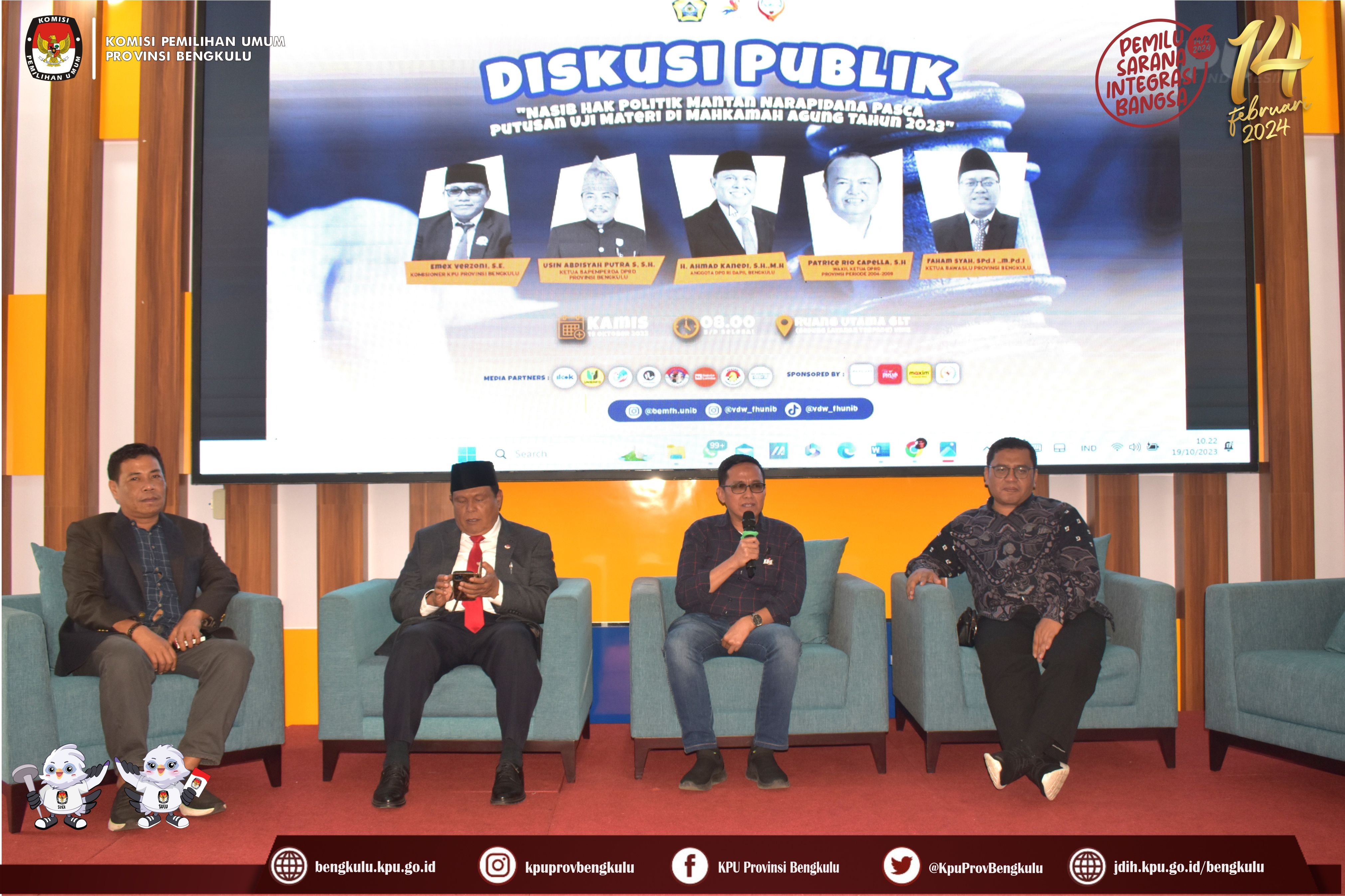 Anggota KPU Provinsi Bengkulu Emex Verzoni hadir sebagai Narasumber Dialog Publik dengan Tema Nasib Hak Politik Mantan Narapidana Pasca Putusan Uji mater Mahkamah Agung 2023