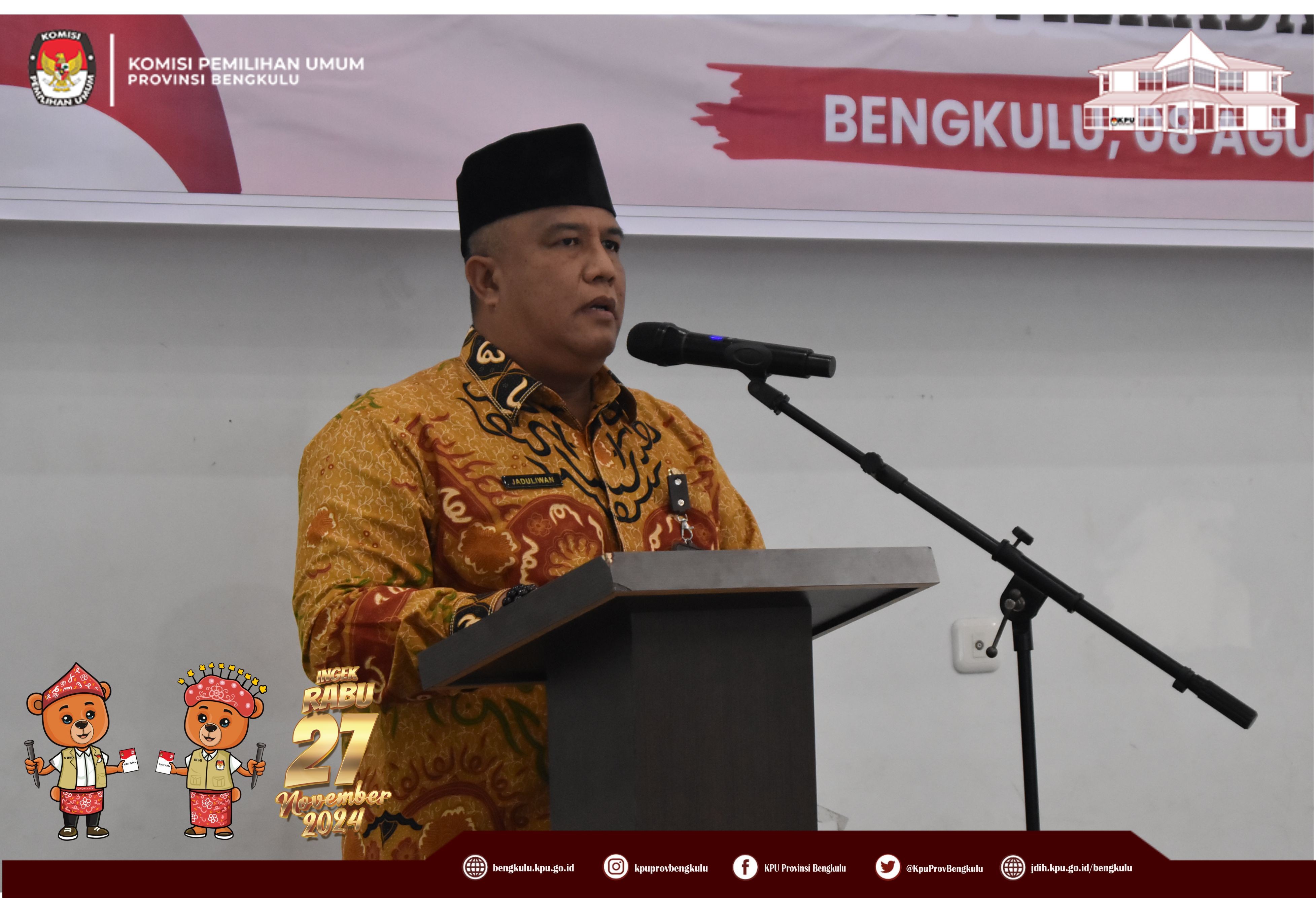 Anggota KPU Provinsi Bengkulu Emex Verzoni Narasumber Rapat Koordinasi Badan Kesbangpol se-Provinsi Bengkulu Dalam Rangka Antisipasi Menghadapi ATHG Pelaksanaan Pilkada Serentak 2024