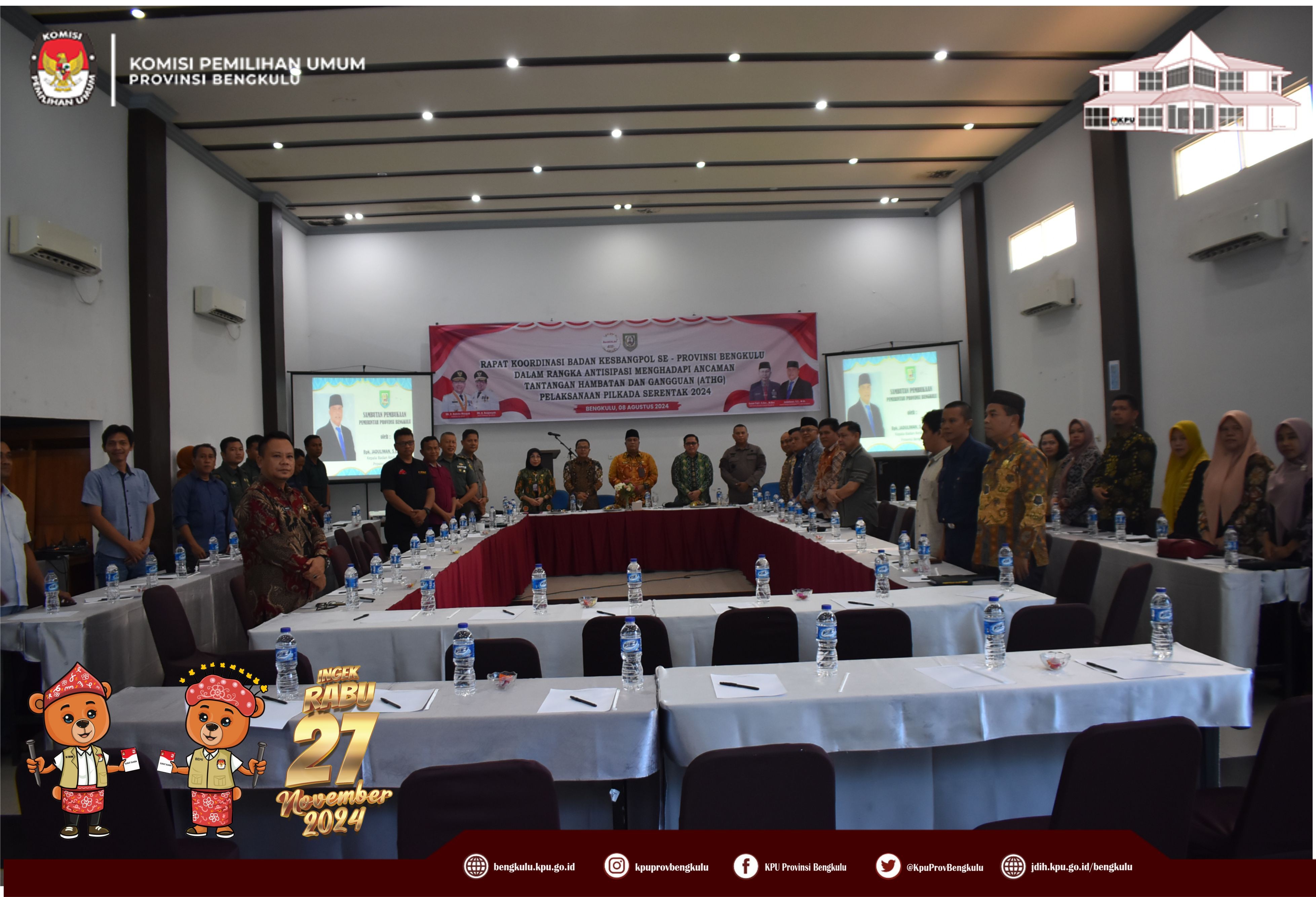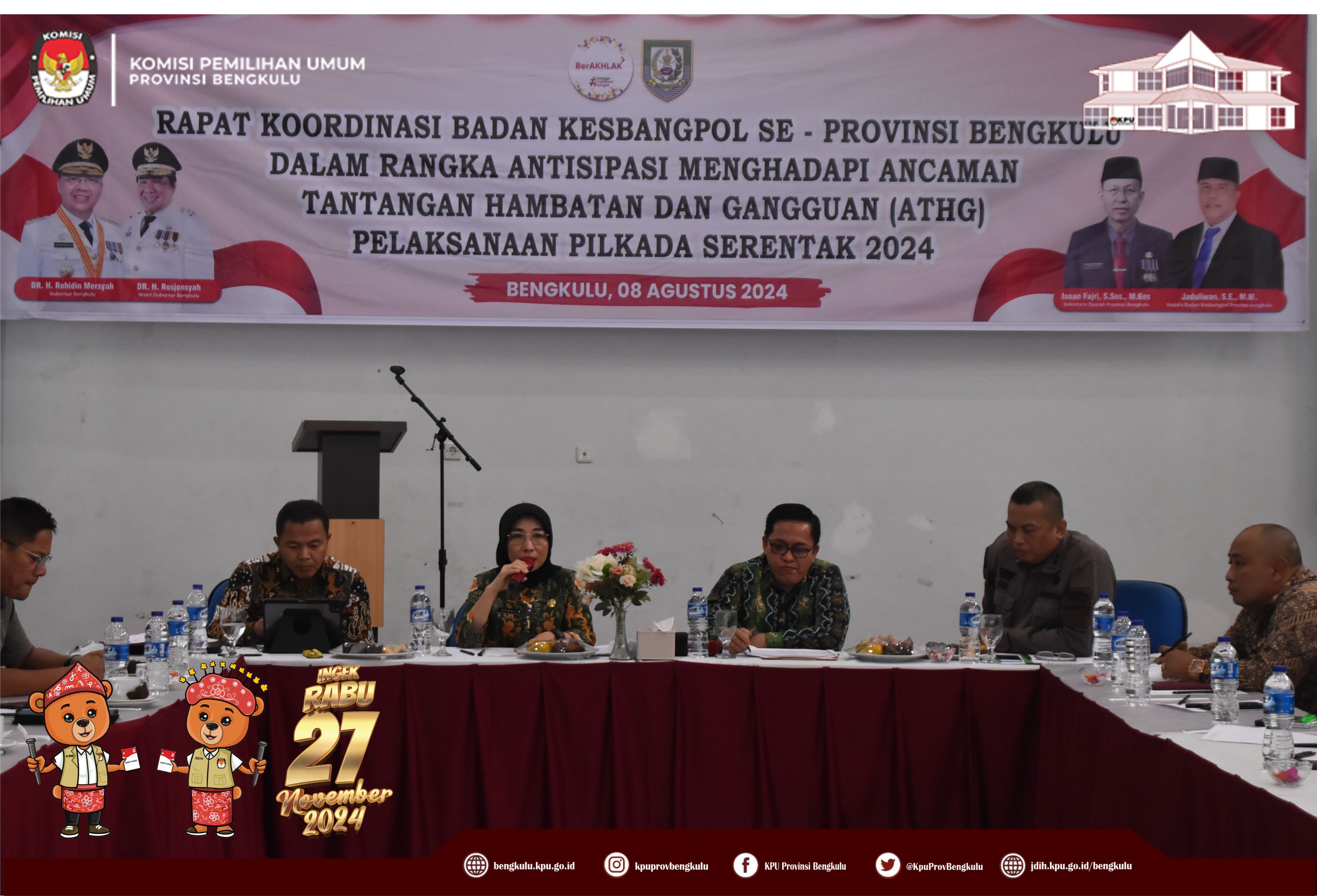 Hadir dalam rapat koordinasi Kejati, Polda, Korem 041 Gamas, Lanal, Binda, Kesbangpol Provinsi dan Kesbangpol Kabupaten/Kota se-Provinsi Bengkulu.