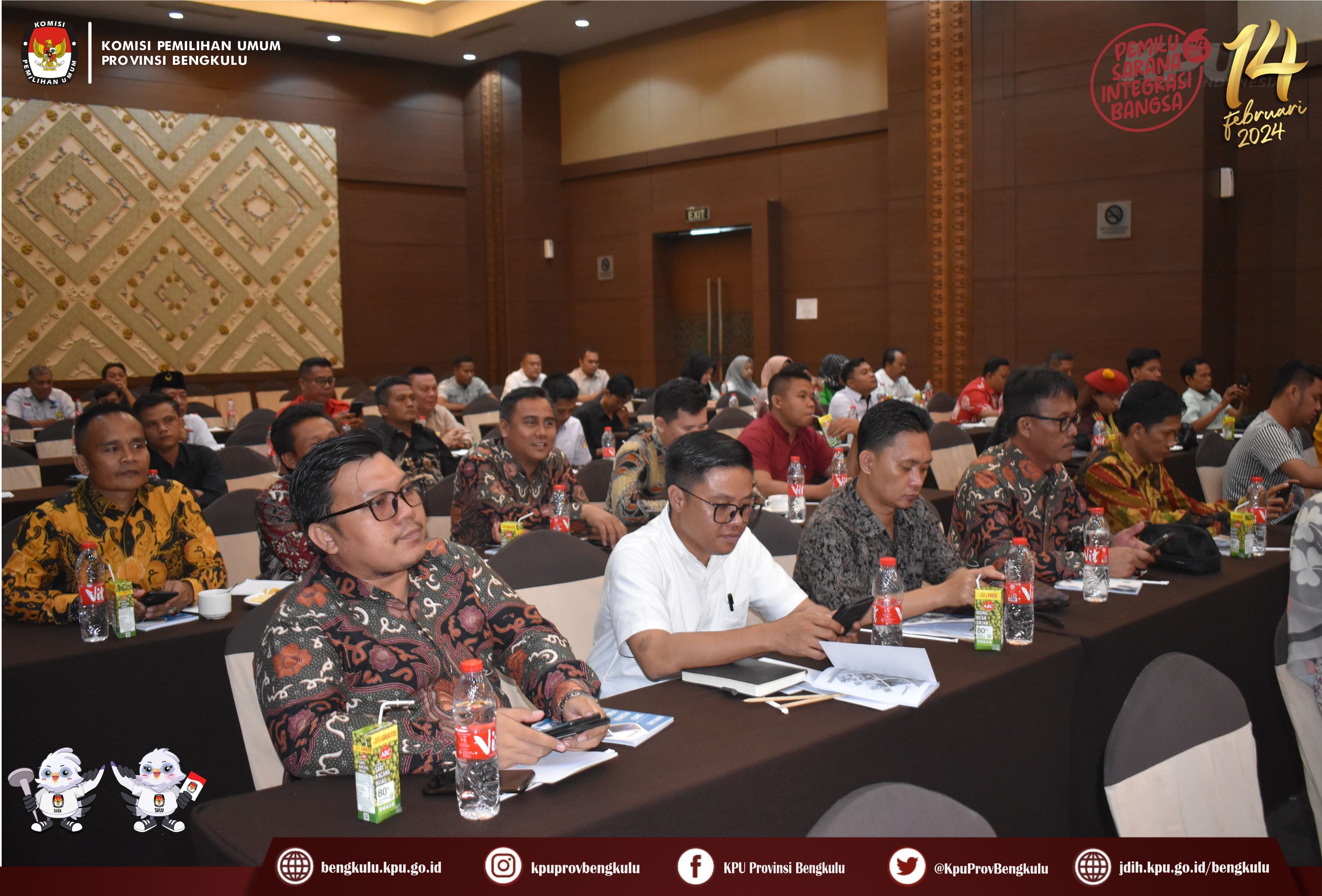 Anggota KPU Provinsi Bengkulu Sarjan Efendi hadir sebagai Narasumber dalam kegiatan Workshop Penguatan Kapasitas (TOT) dan Manajemen Pengetahuan Saksi Peserta Pemilu
