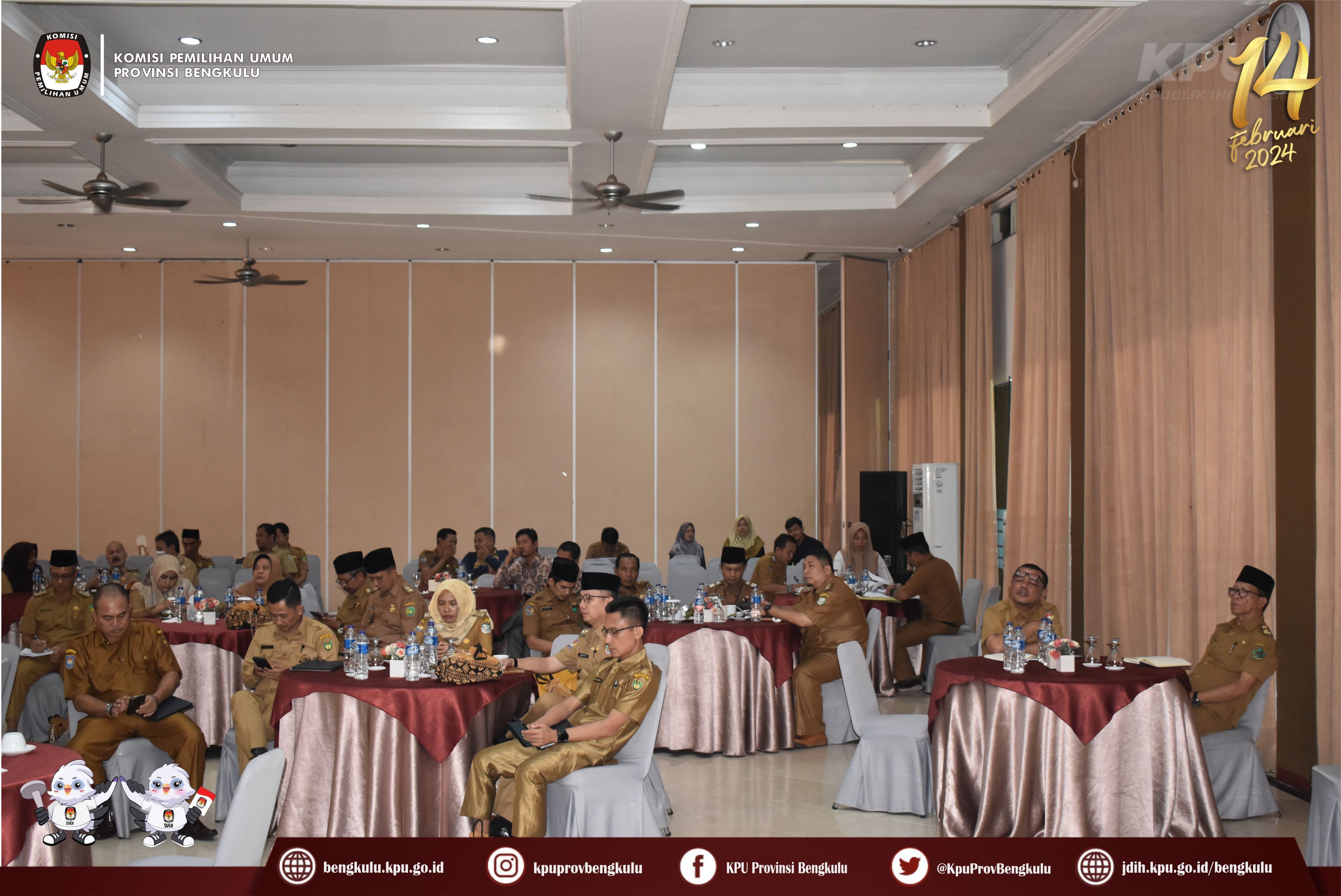 Bengkulu-bengkulu.kpu.go.id, Anggota KPU Provinsi Bengkulu Sarjan Efendi hadir sebagai Narasumber pada Rapat Koordinasi Perangkat Gubernur Sebagai Wakil Pemerintah Pusat (GWPP) di Provinsi Bengkulu Tahun 2023 di Grage Hotel pada Senin (12/6/2023). Sarjan menyampaikan materi mengenai gambaran pelaksanaan Tahapan Pemilu Tahun 2024 di Provinsi Bengkulu meliputi partai politik peserta pemilu 2024, daerah pemilihan dan alokasi kursi anggota DPRD Provinsi dan DPRD Kabupaten/Kota, Daftar Pemilih Sementara (DPS) dan Daftar Pemilih Sementara Hasil Perbaikan (DPSHP), Pendaftaran dan Pengajuan Bakal Calon Perseorangan Anggota DPD RI dan Bakal Calon Anggota DPRD Provinsi Bengkulu dan sebagainya. Selain materi, diisi juga dengan diskusi tanya jawab.