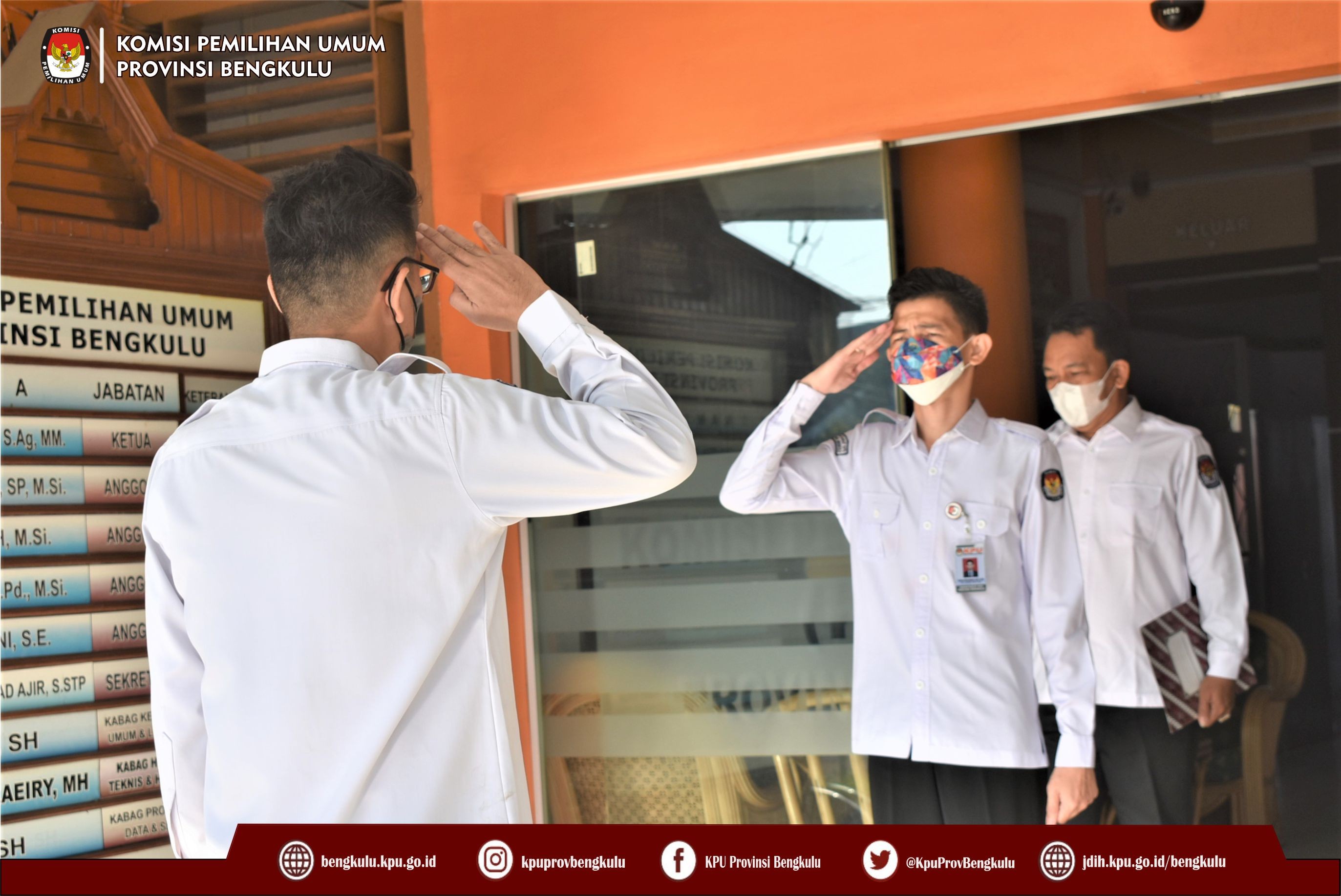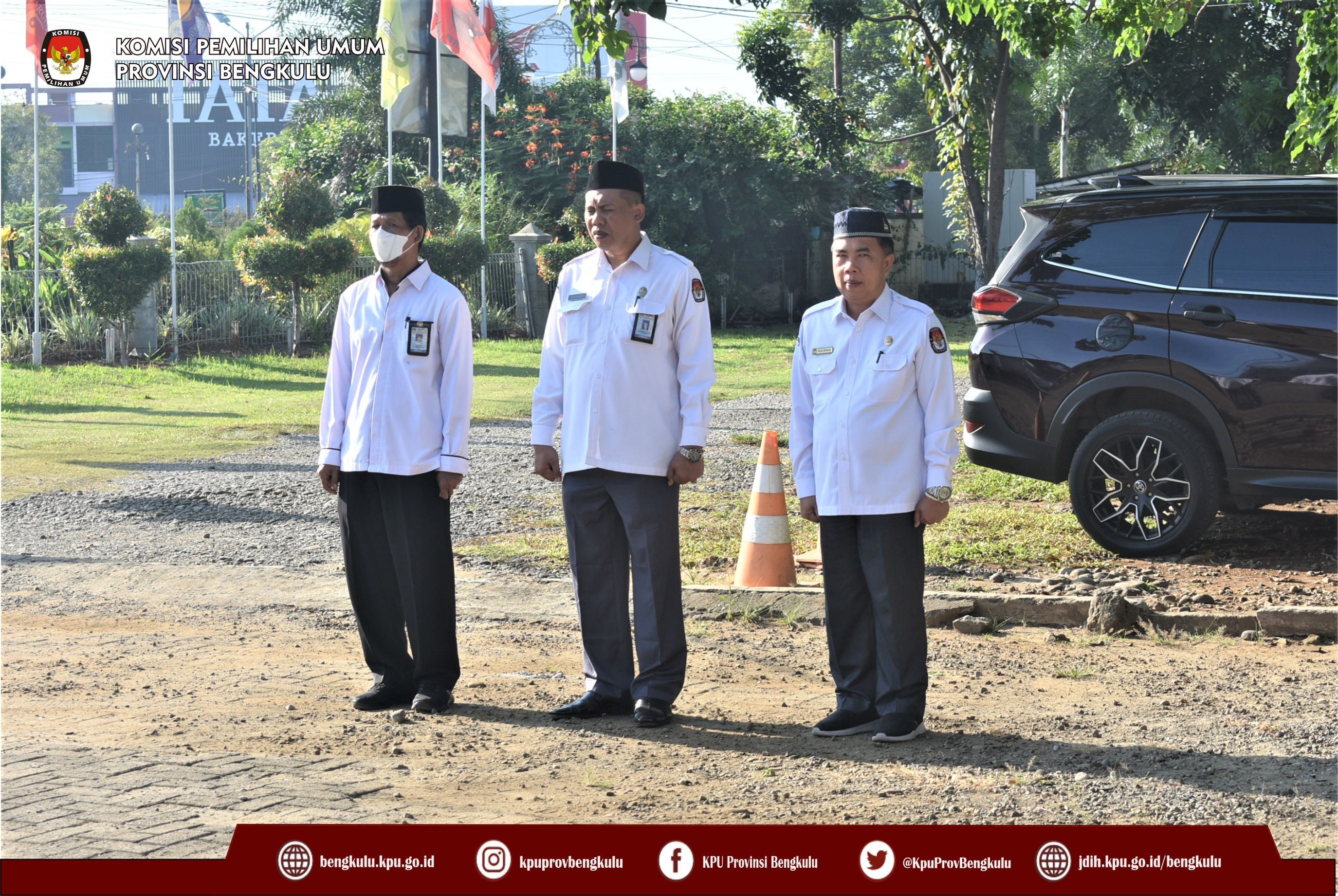 Bengkulu-bengkulu.kpu.go.id, Jajaran Sekretariat KPU Provinsi Bengkulu melaksanakan apel pagi bertempat di halaman Kantor KPU Provinsi Bengkulu pada Senin (23/5). Apel pagi diikuti oleh Sekretaris, Kabag, Kasubbag dan Staf di lingkungan Sekretariat KPU Provinsi Bengkulu. Bertindak sebagai Pembina Apel Sekretaris KPU Provinsi Bengkulu, Kemas M Ajir.