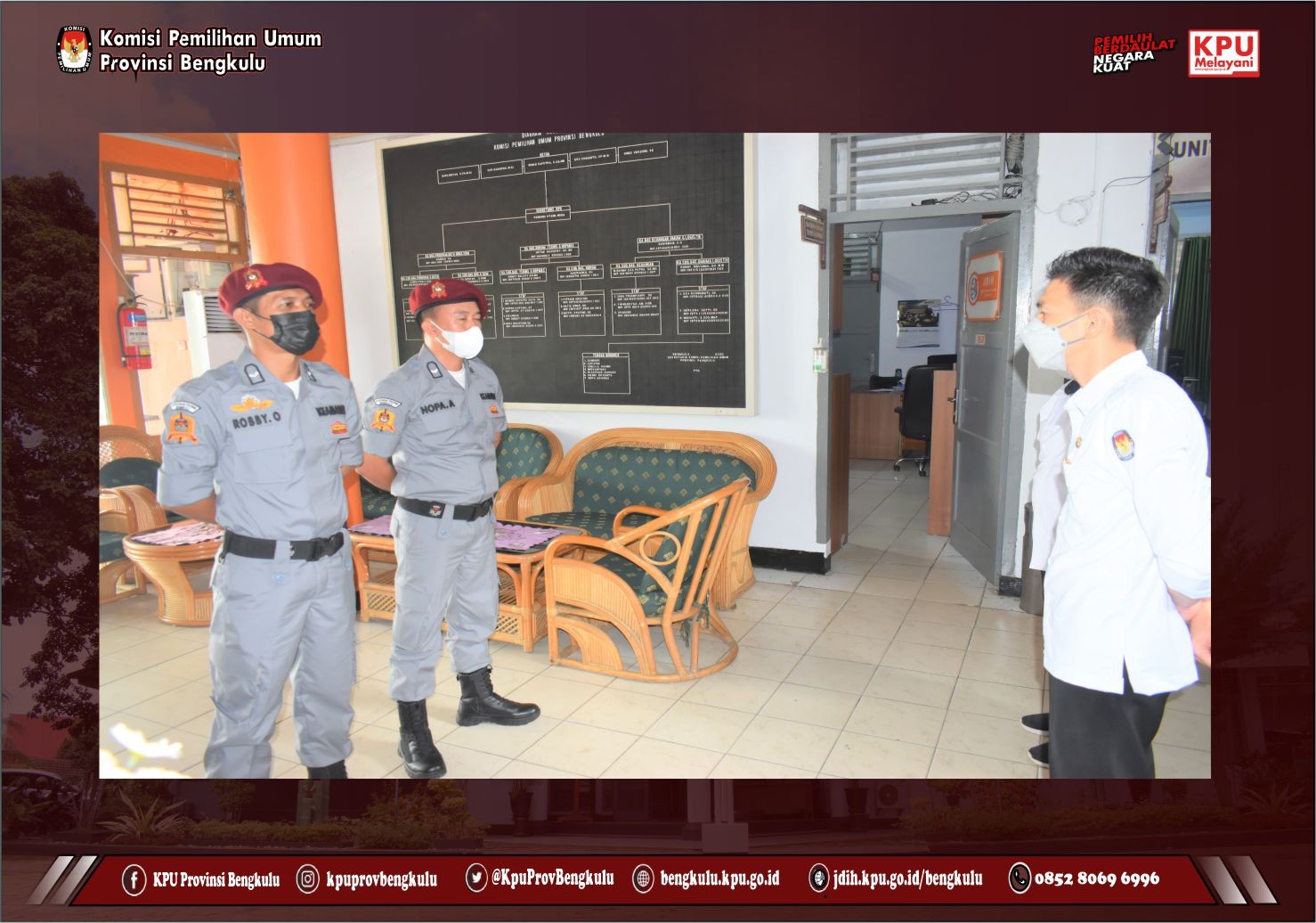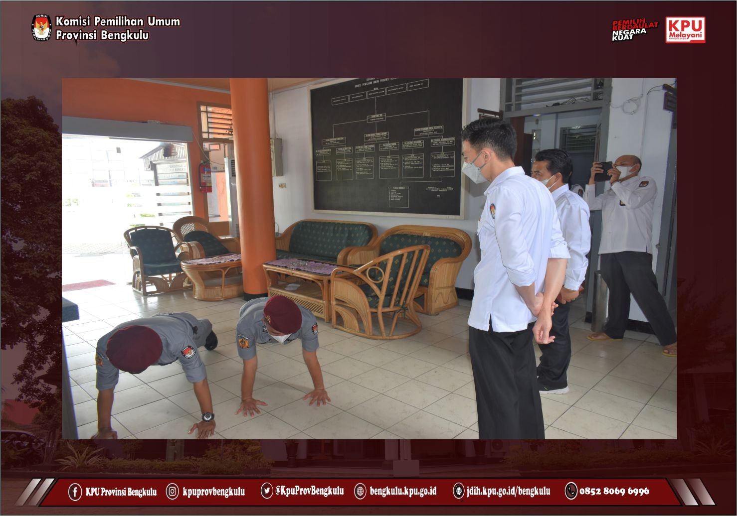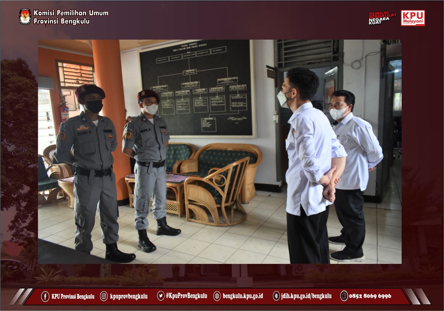 Sekretaris KPU Provinsi Bengkulu Kemas M Ajir didampingi Kabag Keuangan Umum dan Logistik Sudirman memberikan arahan langsung kepada Petugas Keamanan Kantor KPU Provinsi Bengkulu pada Kamis (18/11). Dalam arahannya Kemas M Ajir menegaskan agar Petugas Keamanan bekerja secara profesional, berintegritas dan bertanggung jawab dalam melaksanakan tugas yang diberikan.