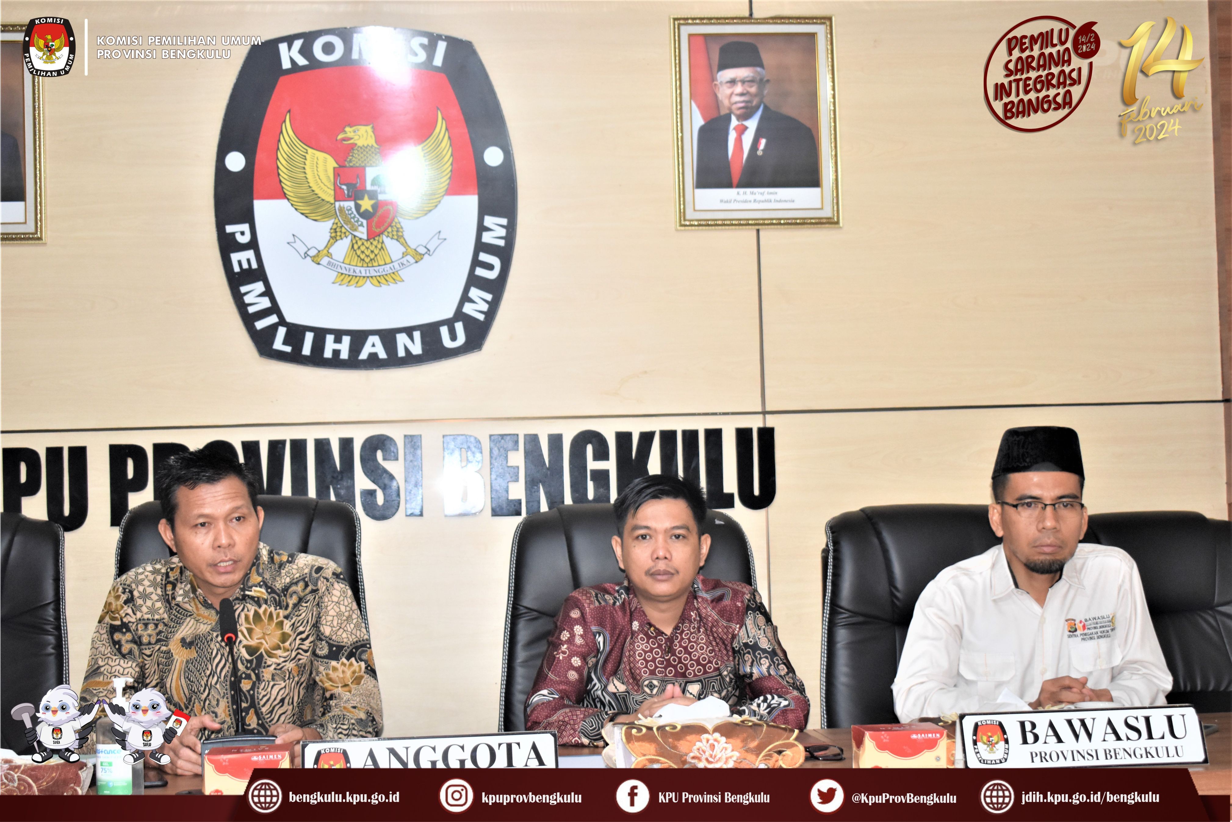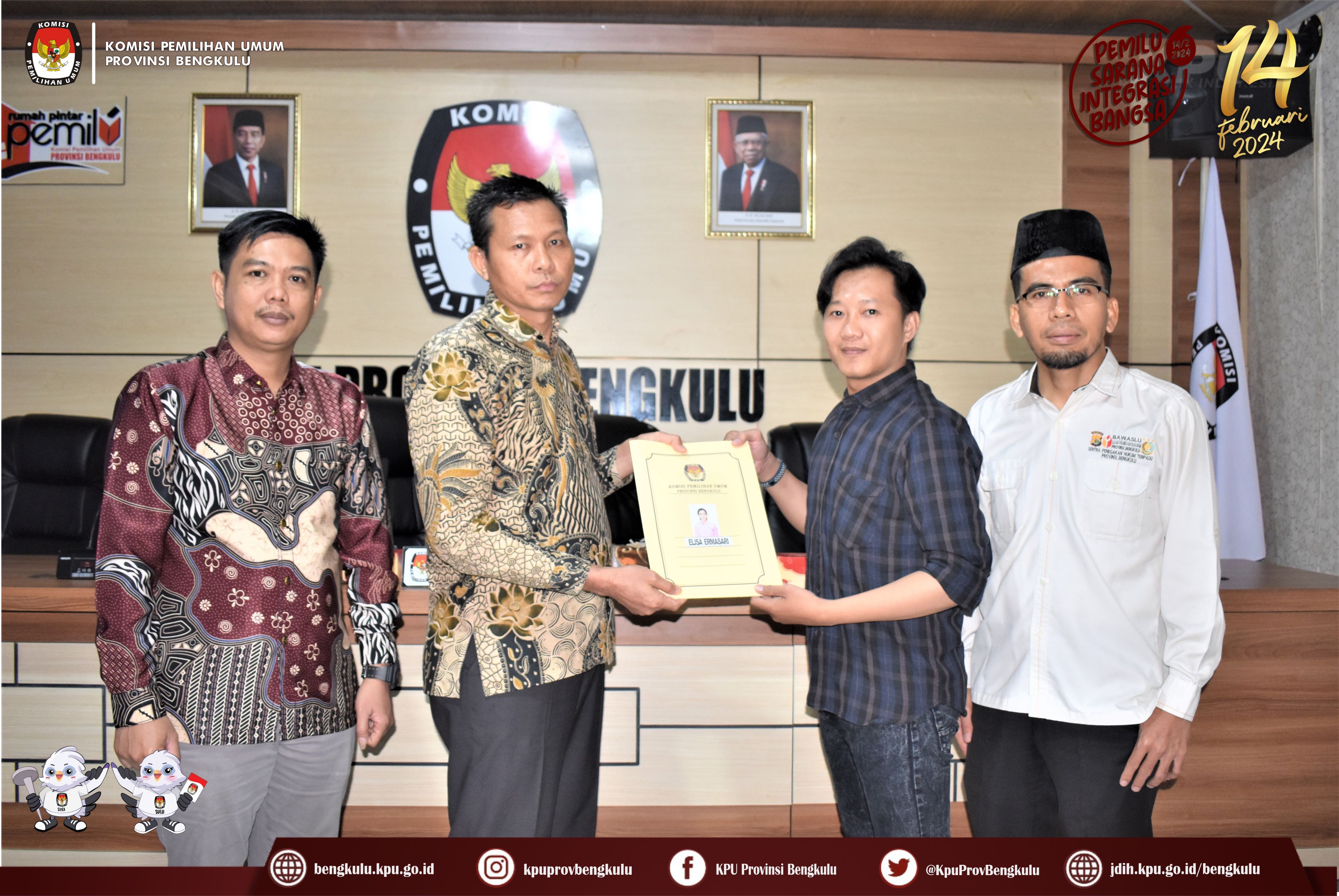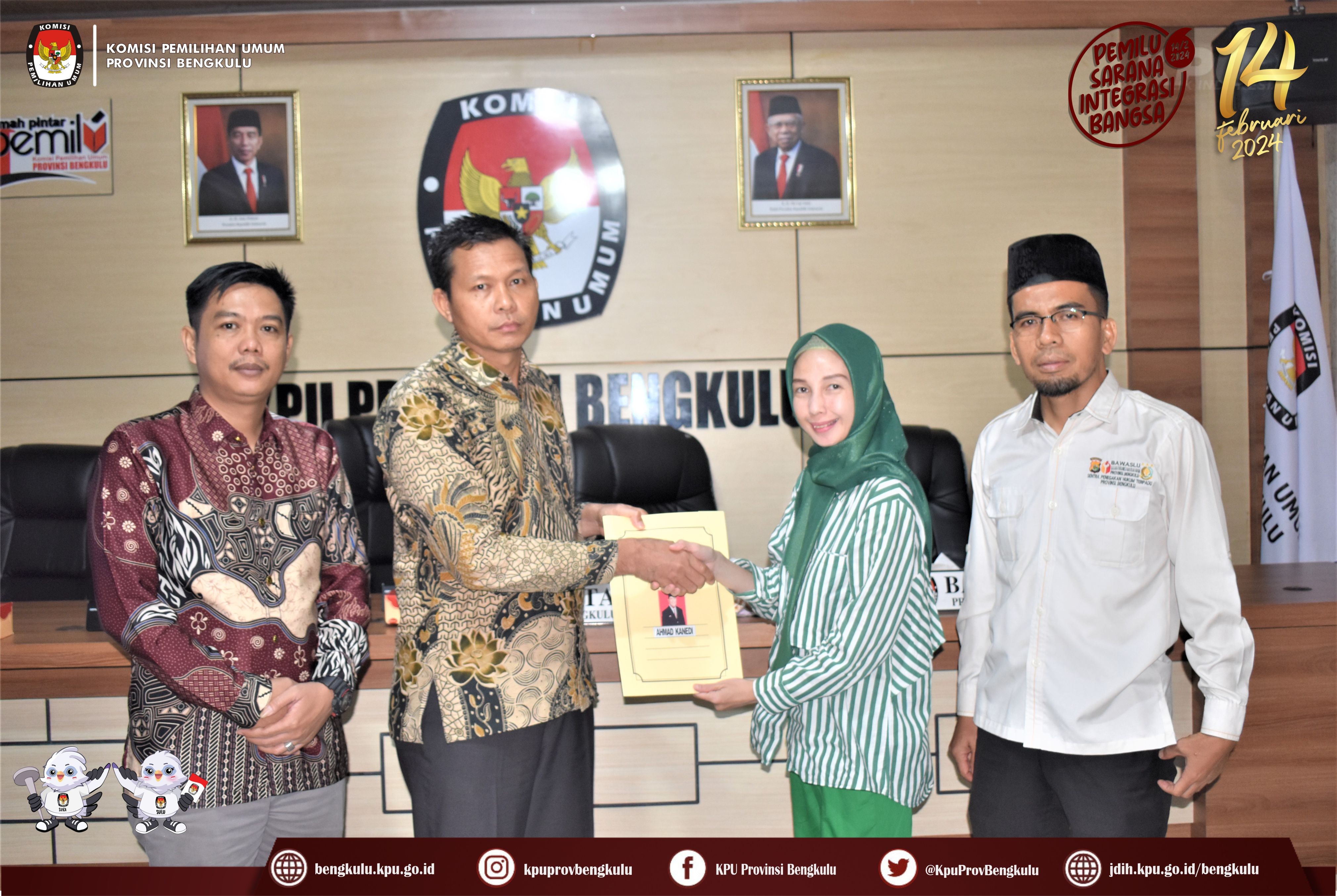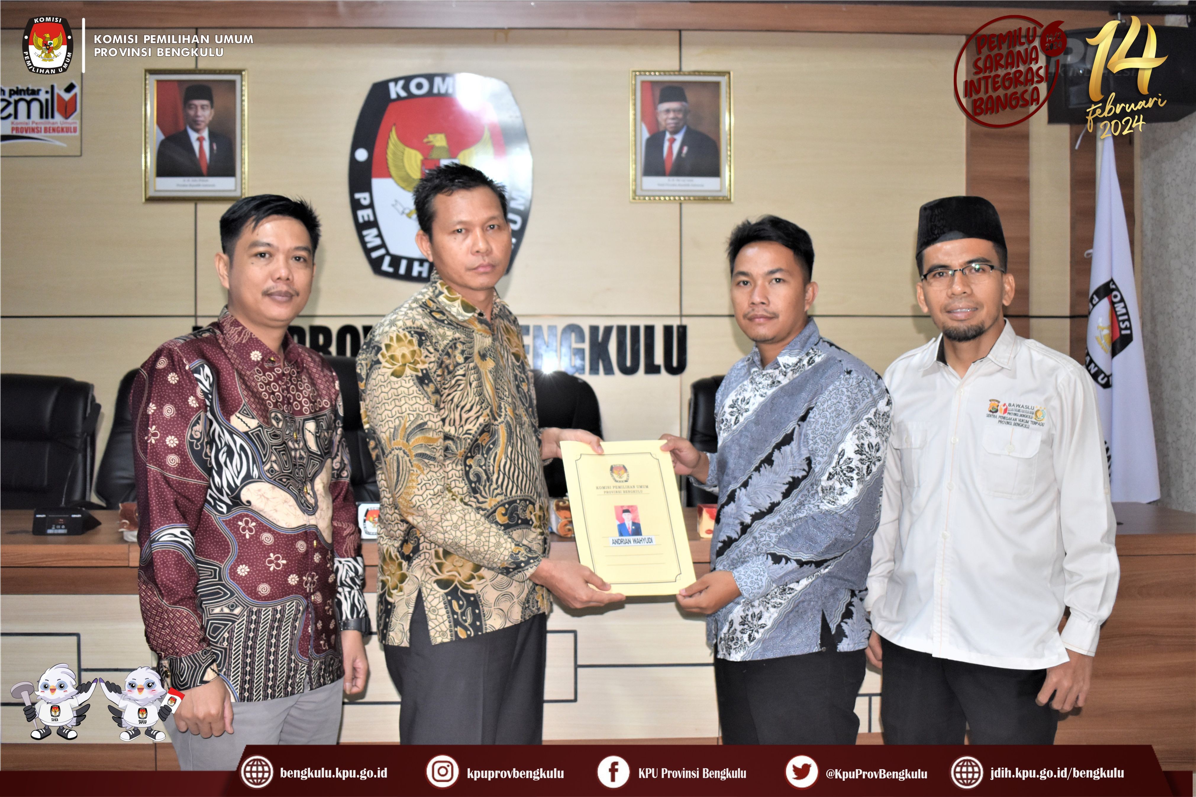 Bengkulu, bengkulu.kpu.go.id - Anggota KPU Provinsi Bengkulu Sarjan Efendi dan Alpin Samsen hadir dalam Penyampaian Berita Acara Verifikasi Administrasi Perbaikan dan Berita Acara Hasil Akhir Verifikasi Administrasi Dokumen Persyaratan Bakal Calon Anggota DPD Daerah Pemilihan Provinsi Bengkulu, Minggu (6/8/2023) di Ruang Audio Visual Rumah Pintar Pemilu KPU Provinsi Bengkulu. Penyampaian diserahkan langsung oleh Anggota KPU Provinsi Bengkulu Sarjan Efendi disaksikan Sekretariat Bawaslu Provinsi Bengkulu kepada Petugas Penghubung (LO) Bakal Calon Anggota DPD Daerah Pemilihan Provinsi Bengkulu. Selain ke Bakal Calon Berita Acara tersebut juga disampaikan kepada Bawaslu Provinsi Bengkulu.