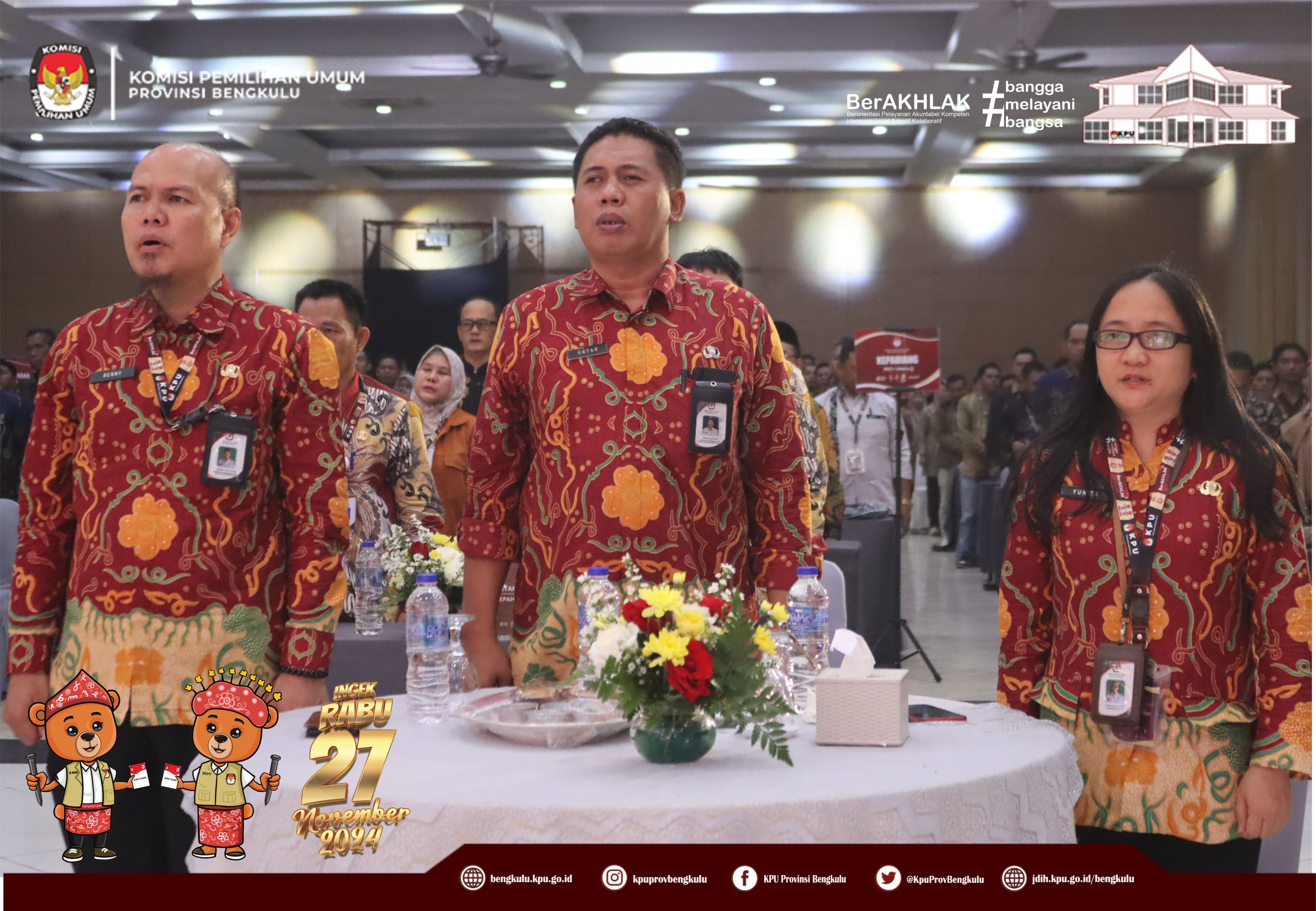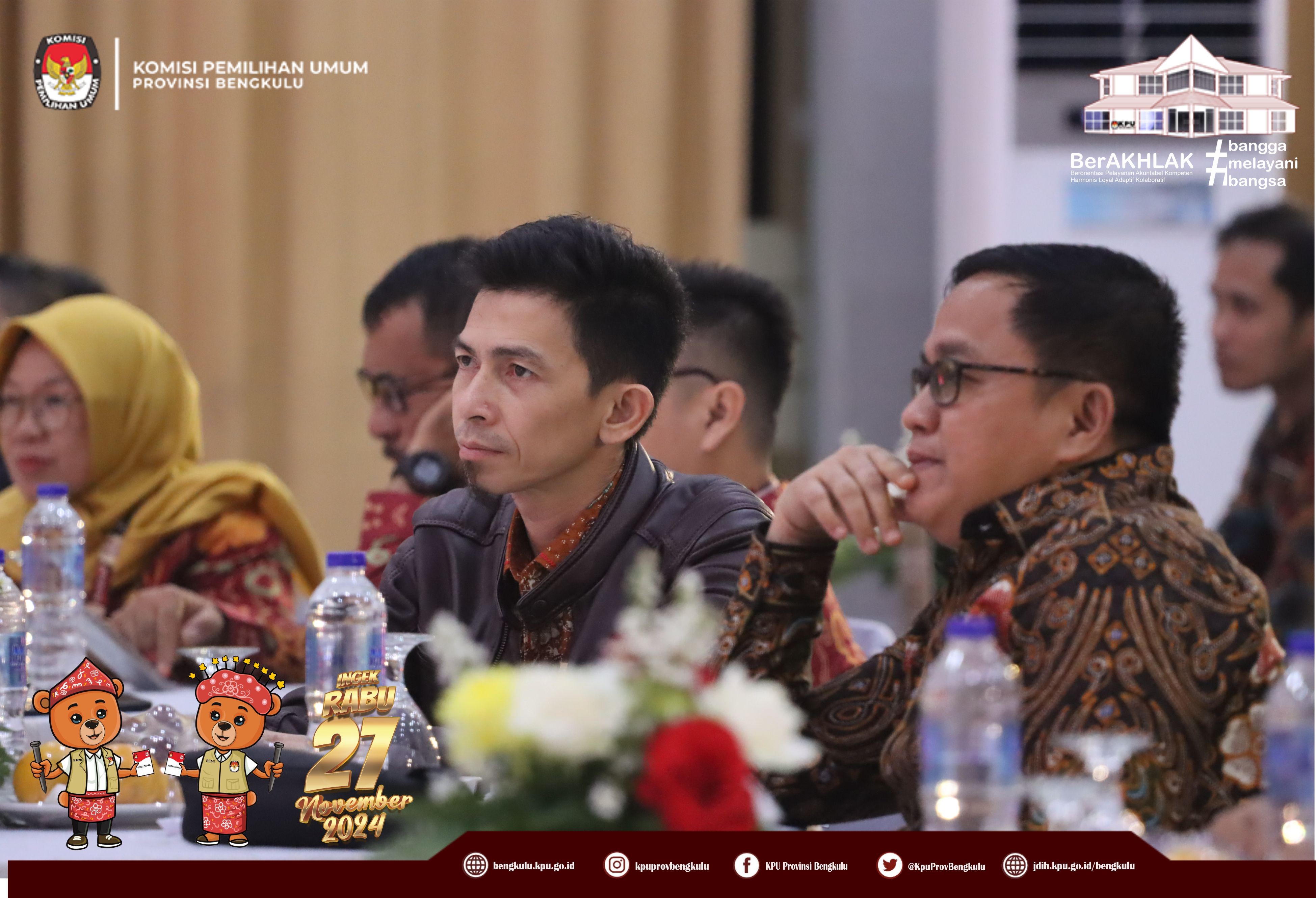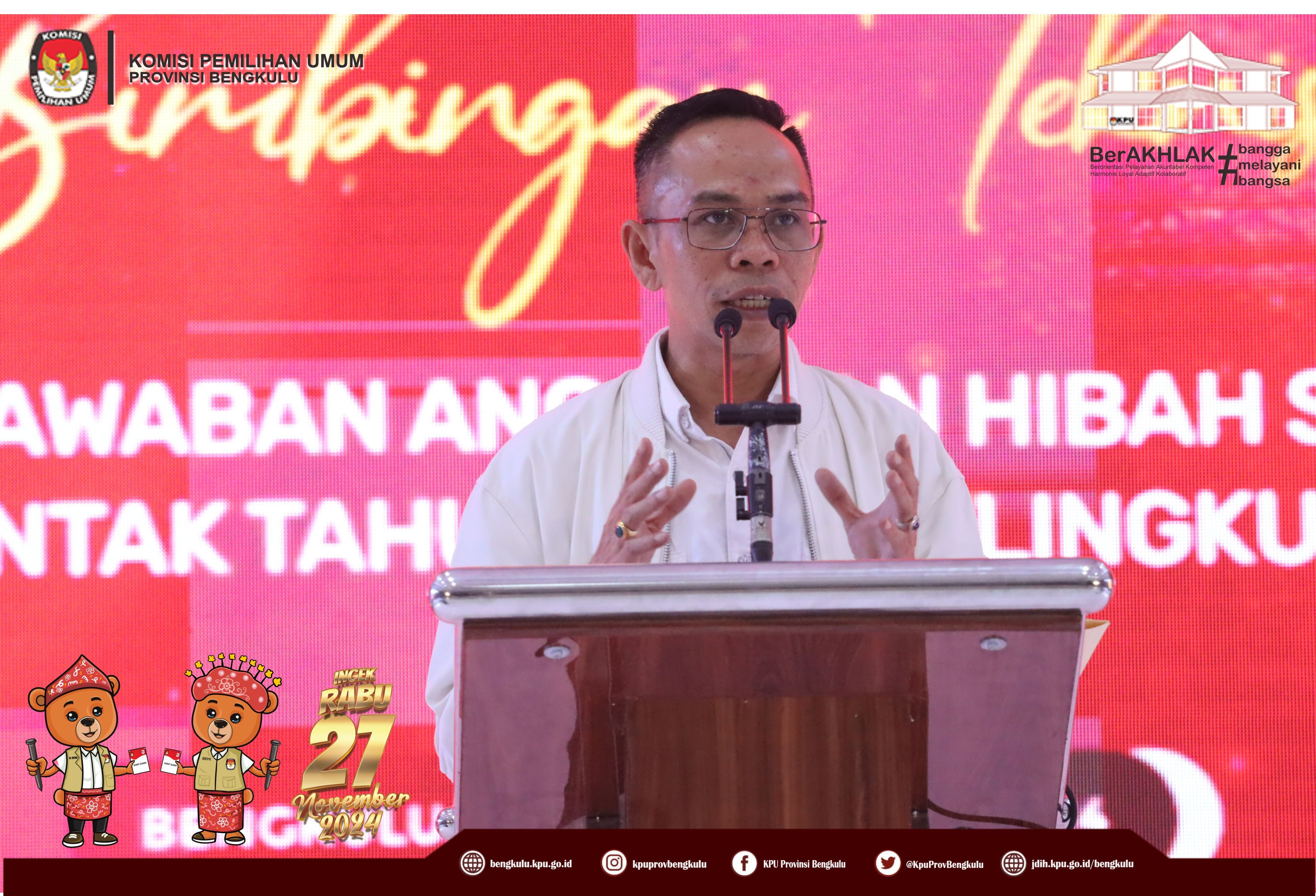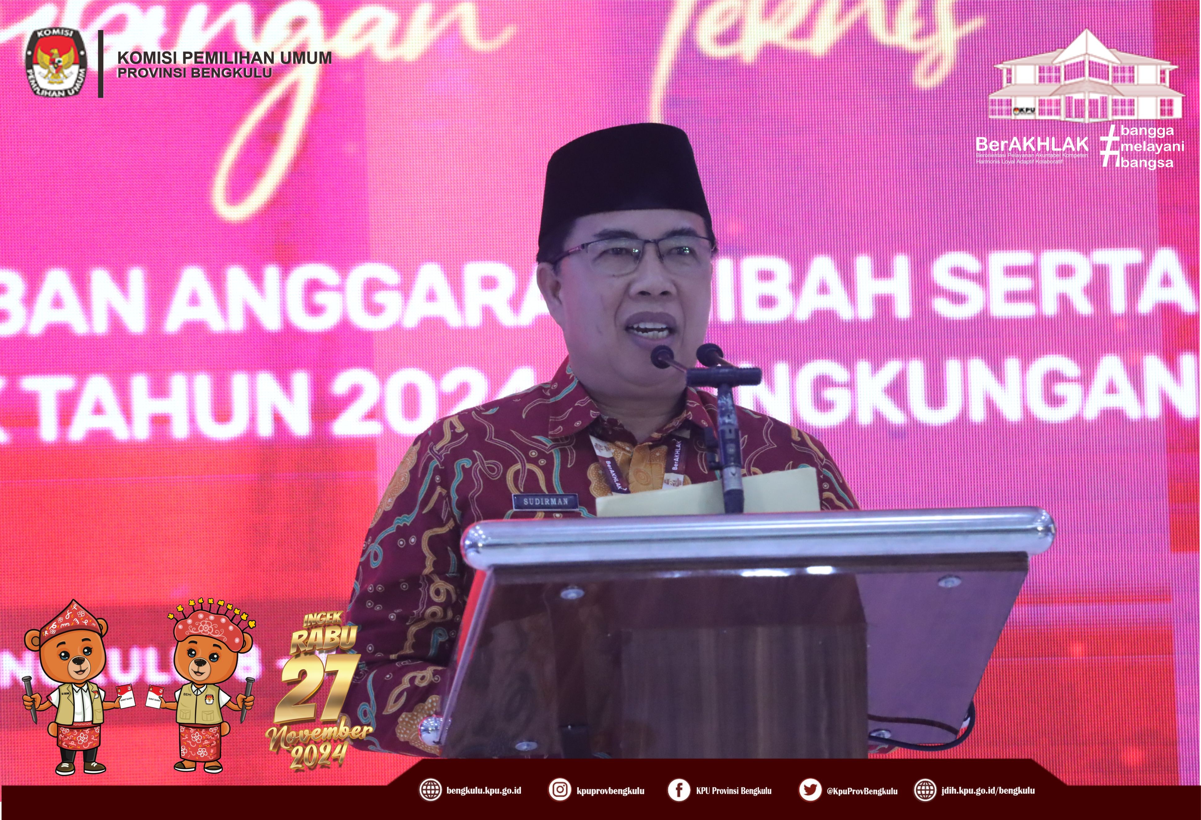 Bengkulu, bengkulu.kpu.go.id - Ketua KPU Provinsi Bengkulu Bapak Rusman Sudarsono dan Anggota KPU Provinsi Bengkulu Bapak Emex Verzoni, serta Sekretaris KPU Provinsi Bengkulu Bapak Kemas Mohammad Ajir membuka Bimbingan Teknis Pengelolaan dan Pertanggungjawaban Anggaran Hibah serta Penggunaan Aplikasi Sitab Pada Pelaksanaan Pemilihan Serentak Tahun 2024 di Lingkungan Sekretariat KPU Se-Provinsi Bengkulu, Jum'at (8/11/2024) di Grage Hotel Bengkulu. Hadir Kabag dan Kasubbag di Lingkungan Sekretariat KPU Provinsi Bengkulu, Ketua, Sekretaris, Kasubbag Keuangan Umum dan Logistik, Pejabat Pembuat Komitmen, Bendahara Pengeluaran, Bendahara Pengeluaran Pembantu KPU Kabupaten/Kota se-Provinsi Bengkulu serta Ketua dan Staf Sekretariat Keuangan Panitia Pemilihan Kecamatan (PPK) Se-Provinsi Bengkulu. Dalam arahannya Bapak Rusman menyampaikan bahwa bimtek pengelolaan dan pertanggungjawaban serta penggunaan aplikasi sitab ini penting karena setiap penggunaan anggaran negara wajib dipertanggungjawabkan dengan baik. Bagaimana pola mekanisme dan aturan-aturan harus kita pelajari dengan seksama. Setiap pengeluaran dan pemasukan harus dicatat dengan tertib agar nantinya pada saat akhir tahapan sudah siap dan tersusun dengan rapi dan lengkap. Bapak Rusman berharap kepada seluruh peserta yg hadir untuk mengikuti dengan sungguh-sungguh agar mendapatkan pengetahuan dalam pengelolaan dan pertanggungjawaban keuangan yang tertib dan baik.
