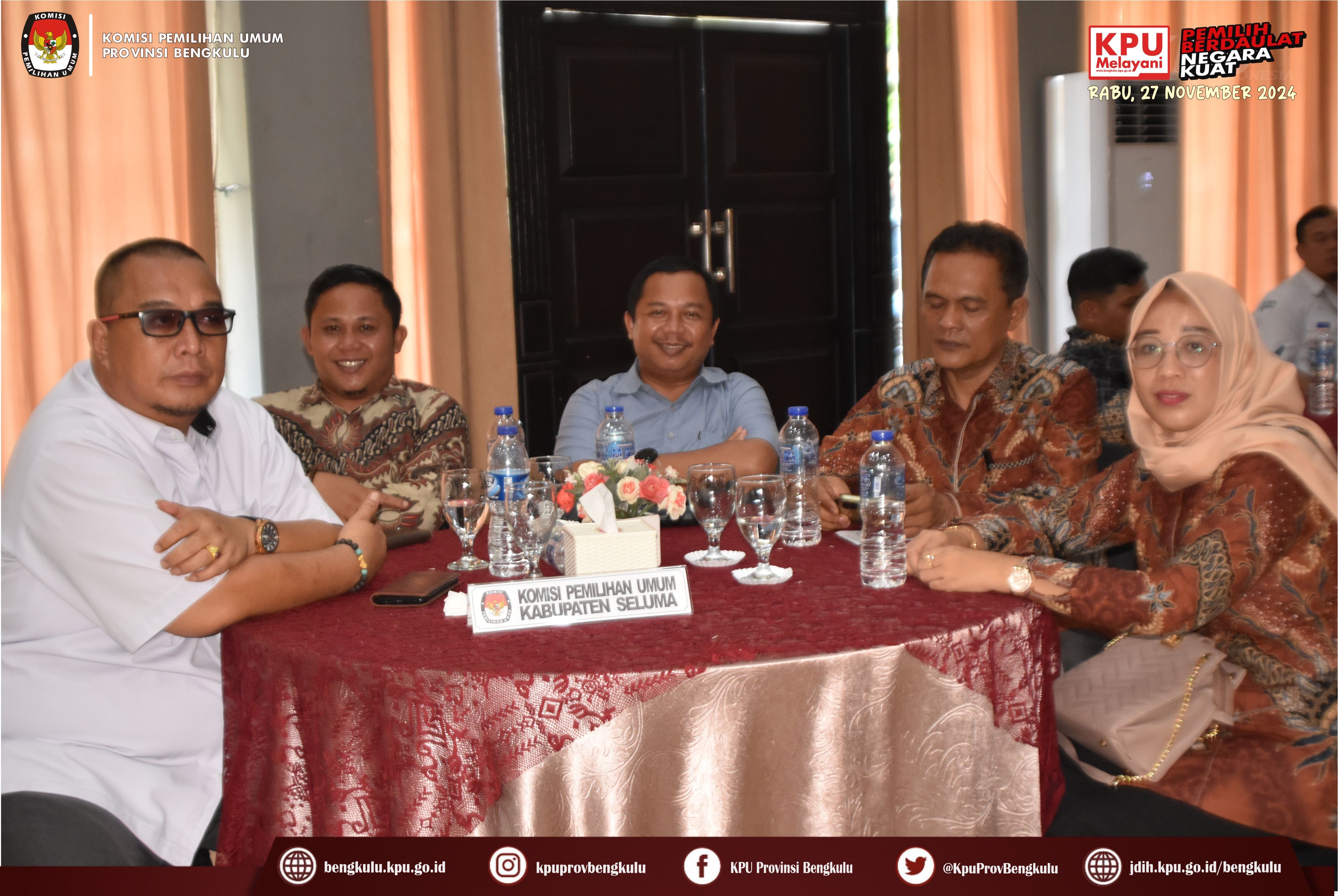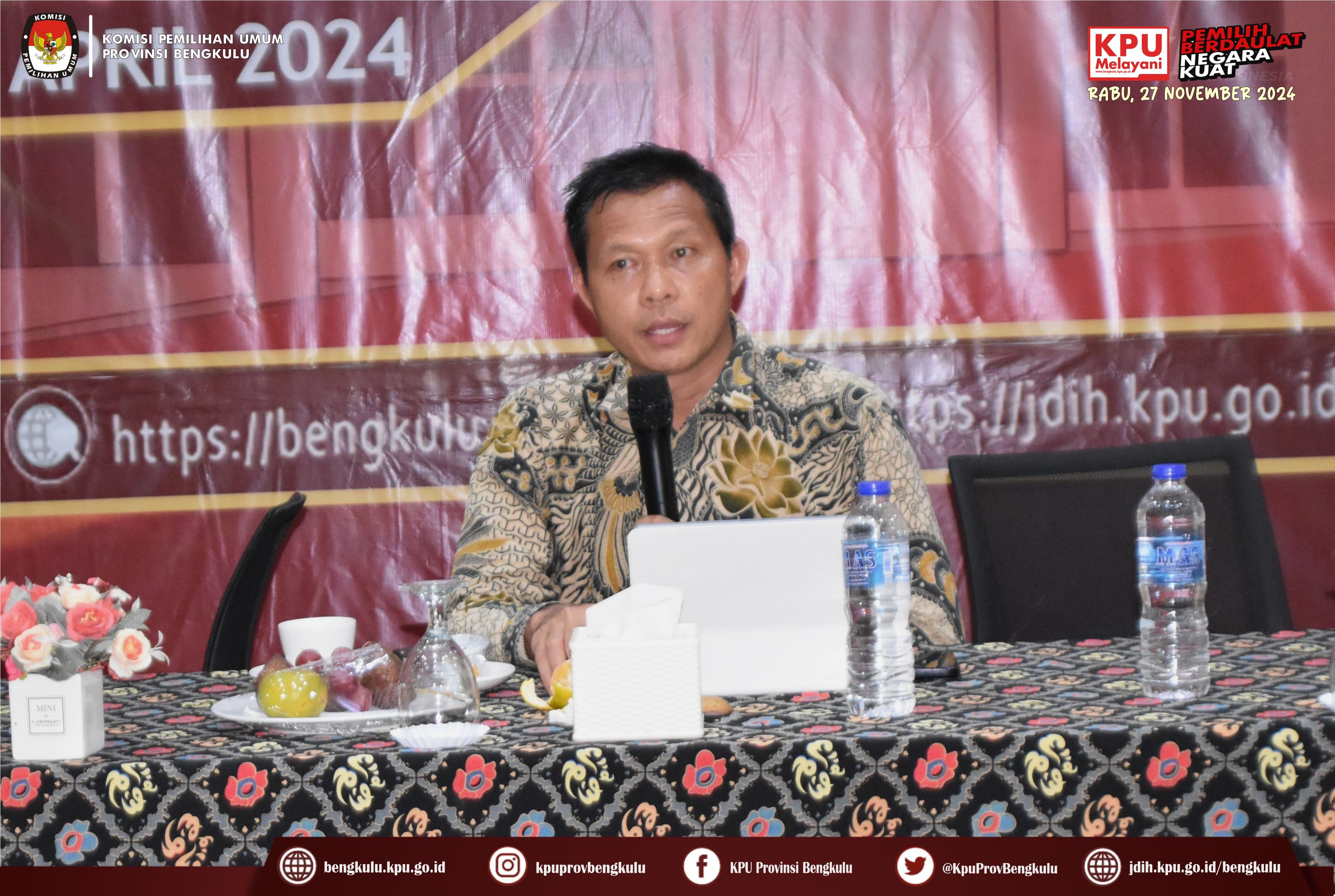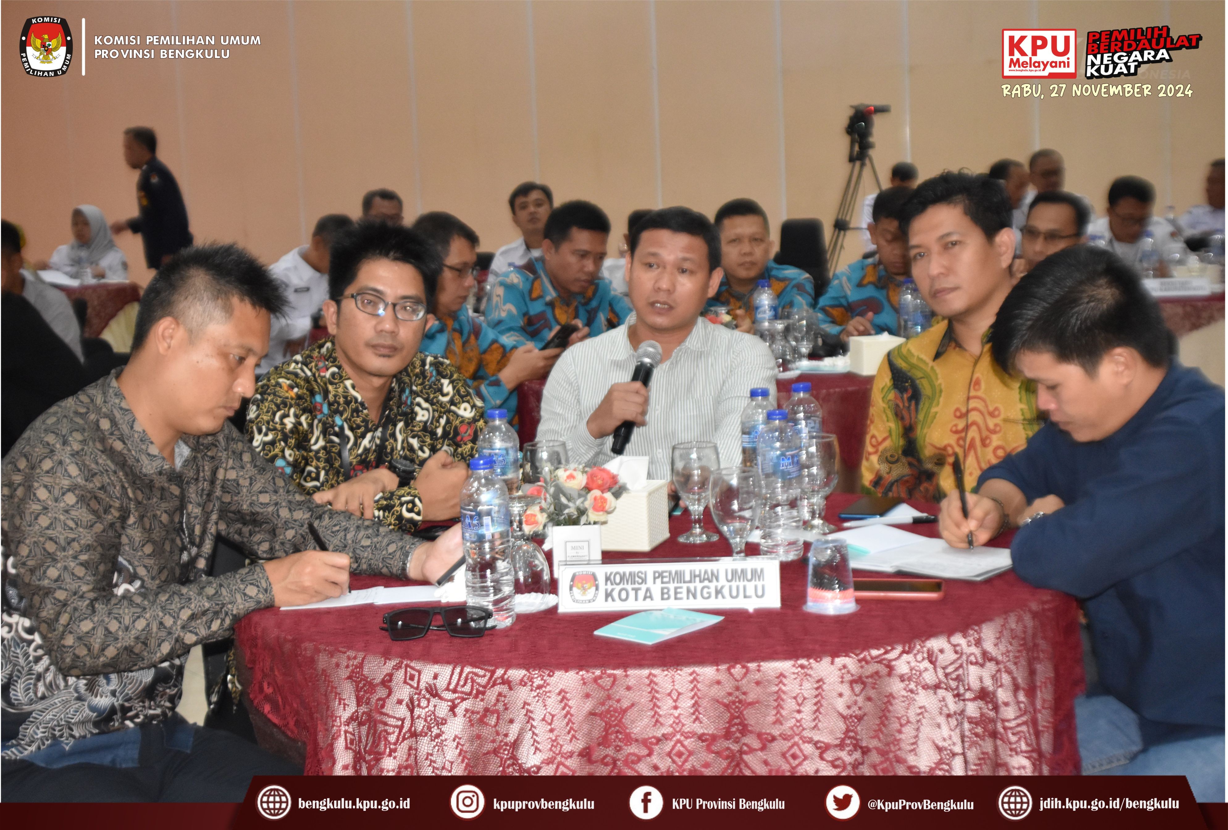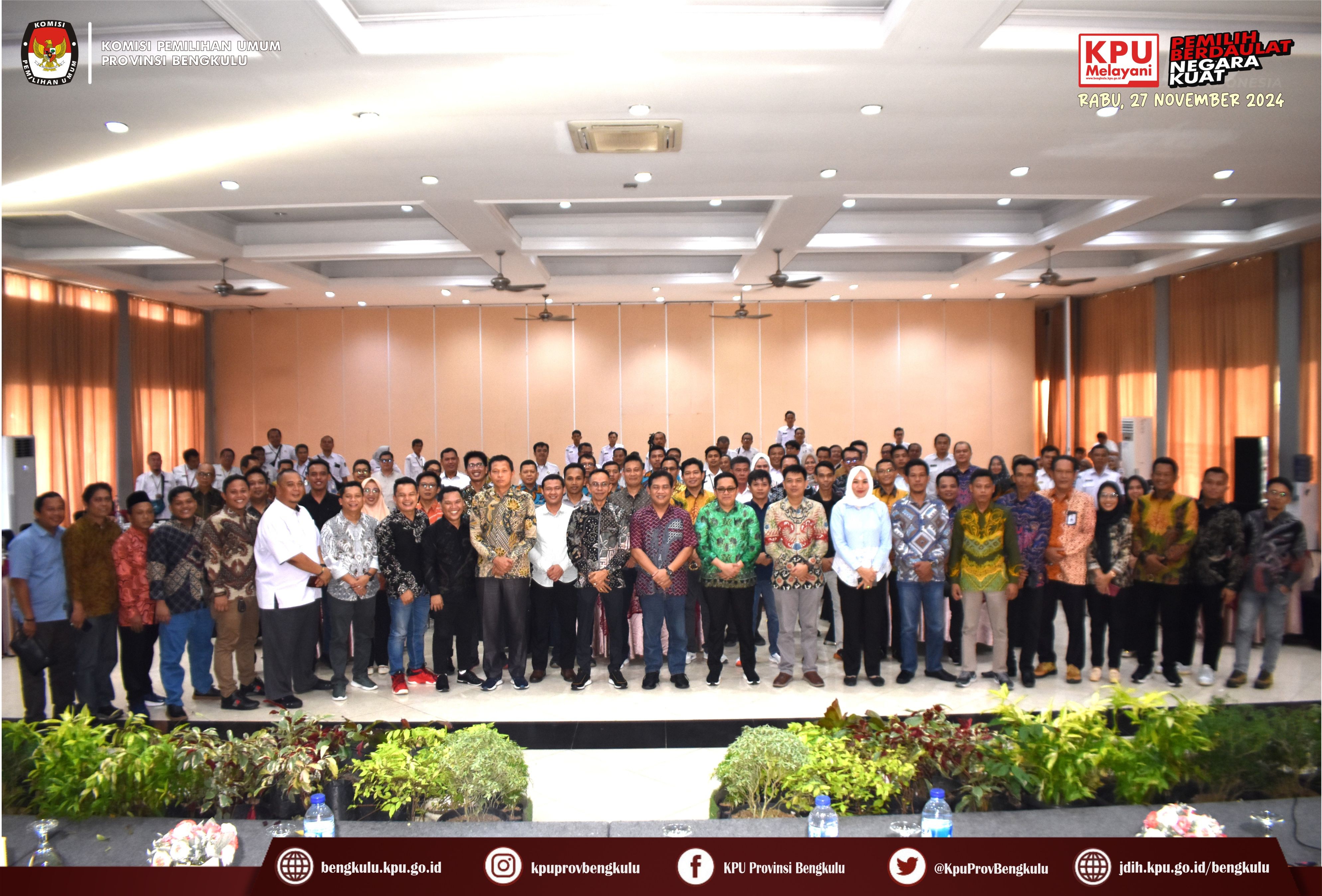 Bengkulu, bengkulu.kpu.go.id - KPU Provinsi Bengkulu menggelar Bimbingan Teknis Persiapan Penyerahan Dukungan Pencalonan Perseorangan Bakal Pasangan Calon Bupati dan Wakil Bupati serta Walikota dan Wakil Walikota Dalam Pemilihan Serentak 2024, Senin (29/4/2024) di Grage Hotel Bengkulu. Acara dibuka oleh Ketua KPU Provinsi Bengkulu Rusman Sudarsono bersama Anggota KPU Provinsi Bengkulu Alpin Samsen, Dodi Hendra Supiarso, Emex Verzoni dan Sarjan Efendi. Kegiatan Bimbingan Teknis diikuti Ketua, Anggota, Sekretaris, Kasubbag Teknis Penyelenggaraan Pemilihan Umum Partisipasi dan Hubungan Masyarakat serta Admin/Operator Silon KPU Kabupaten/Kota se-Provinsi Bengkulu. Dalam sambutannya Rusman mengatakan bahwa kegiatan ini dalam rangka memberikan pemahaman dan penyamaan persepsi mengenai Persiapan Penyerahan Dukungan Pencalonan Perseorangan Bakal Pasangan Calon Bupati dan Wakil Bupati serta Walikota dan Wakil Walikota Dalam Pemilihan Serentak 2024 yang akan pada 5 Mei 2024. Setelah dibuka acara dilanjutkan dengan arahan dari Anggota KPU Provinsi Bengkulu Alpin Samsen yang membahas tentang persiapan penerimaan DP4 oleh KPU Kabupaten/Kota, Emex Verzoni membahas tentang perkembangan proses sengketa pilpres dan pileg 2024 di Mahkamah Konstitusi, sedangkan Dodi Hendra Supiarso membahas tentang perkembangan penerimaan pendaftaran PPK yang dimulai pada 23-29 April 2024. Sementara itu, Sarjan Efendi yang membahas tentang tahapan dan jadwal pemilihan serentak Tahun 2024 sebagaimana yang diatur dalam PKPU Nomor 2 Tahun 2024. Selain itu, Sarjan menjelaskan hal teknis berkaitan dengan pencalonan perseorangan mulai dari Syarat Minimal Dukungan dan Sebaran, dokumen pendukung B.1 KWK Perseorangan, verifikasi administrasi dan verifikasi faktual sampai dengan penetapan pasangan calon, gambaran umum penggunaan SILON dan sebagainya. Selain materi acara diisi juga dengan diskusi tanya jawab.