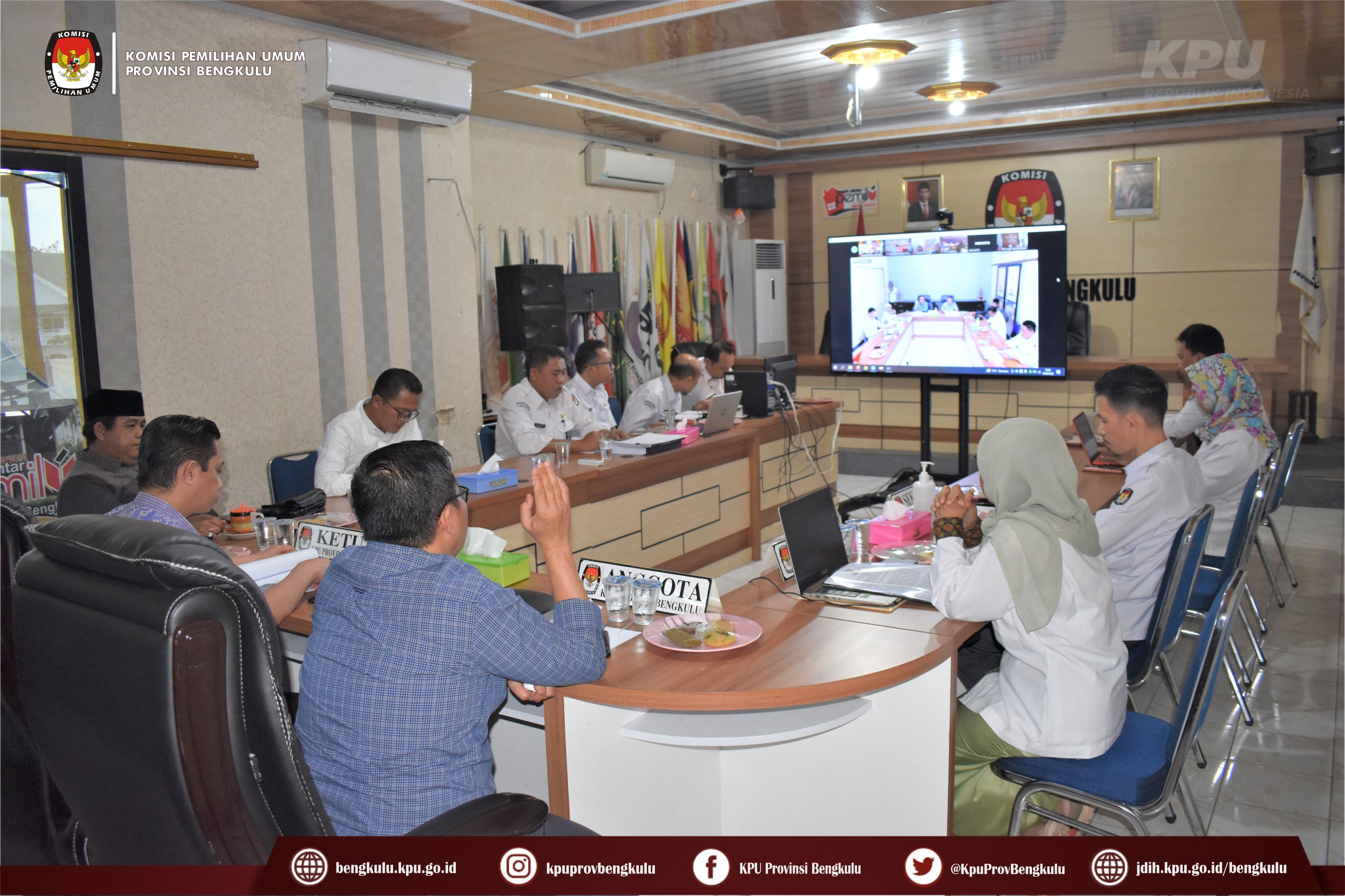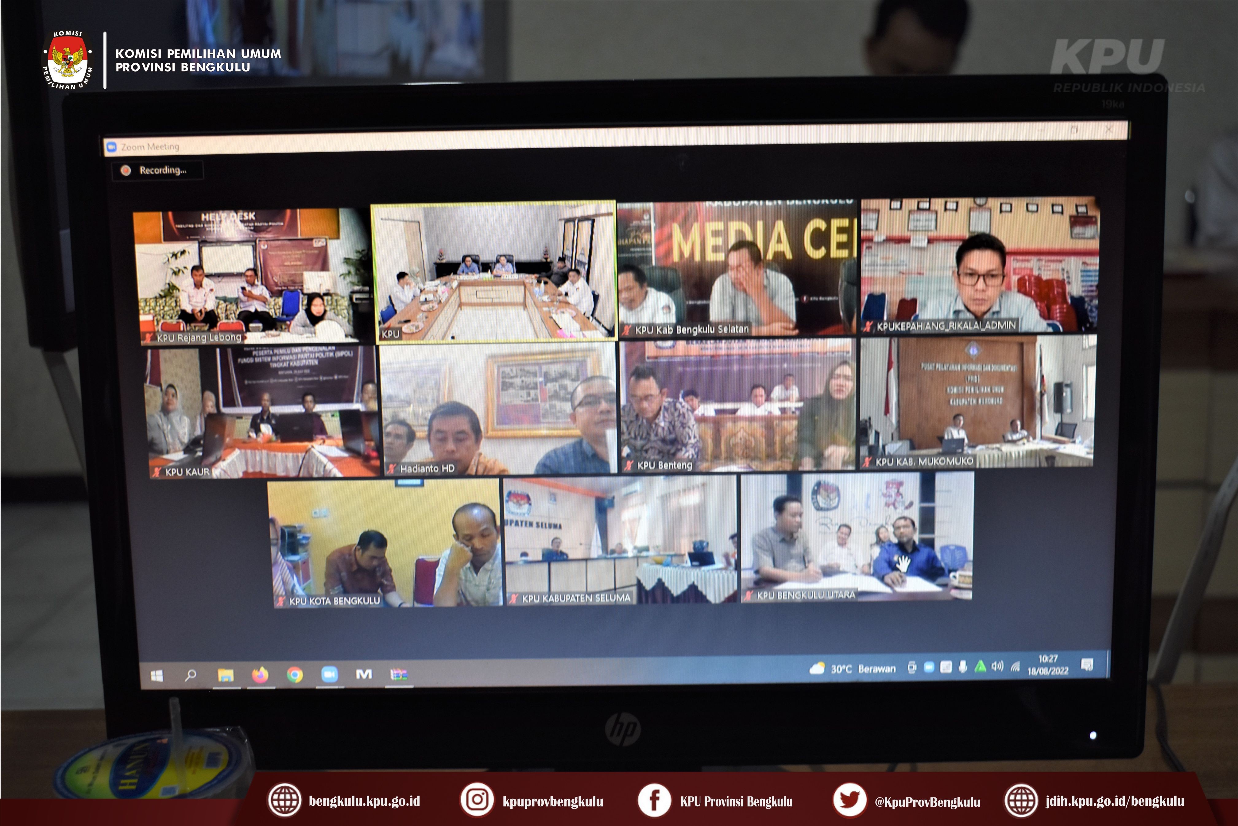 Bengkulu-bengkulu.kpu.go.id, Ketua KPU Provinsi Bengkulu Irwan Saputra didampingi Anggota KPU Provinsi Bengkulu Eko Sugianto, Siti Baroroh, Darlinsyah dan Emex Verzoni serta Sekretaris Kemas Mohammad Ajir, Kabag TPPPHHS Oktan Huzaeiry, Kasubbag TPHHH M. Benny Eka Putra, Operator Sipol Riko Sukmanna dan staf TPPHHS membuka kegiatan Bimbingan Teknis Sipol kepada KPU Kabupaten/Kota dalam Verifikasi Administrasi Partai Politik Calon Peserta Pemilu Tahun 2024 secara daring (zoom meeting) Kamis (18/8). Kegiatan Bimtek tersebut diikuti Ketua Divisi Teknis Penyelenggaraan, Ketua Divisi Perencanaan Data dan Informasi, Kasubbag TPPPH dan Operator Sipol KPU Kabupaten/Kota Se-Provinsi Bengkulu. Dalam arahannya Irwan menyampaikan bimtek ini penting dilakukan agar ada persamaan persepsi sesuai dengan regulasi yang mengatur mekanisme pelaksanaan vermin nantinya. Setelah dibuka acara dilanjutkan dengan penyampaian arahan dari Anggota dan Sekretaris KPU Provinsi Bengkulu. Darlinsyah menyampaikan agar KPU Kabupaten/Kota yakni Komisioner dan Sekretariat menjaga soliditas, profesional dan bekerja secara baik. Siti Baroroh menekankan agar KPU Kabupaten/Kota perkuat dan pahami regulasi serta teknis kerja dalam pelaksanaan vermin parpol. Eko Sugianto menyampaikan agar pelaksanaan vermin tidak menjadi objek gugatan sehingga perlu menyamakan persepsi sesuai dengan regulasi. Kemas Mohammad Ajir menekankan agar sekretariat membantu secara maksimal pelaksanaan vermin parpol diantaranya dukungan sarana prasarana seperti Laptop/PC, Jaringan Internet, Jaringan Listrik serta Sumber Daya Manusia (SDM) setiap Satker. Emex Verzoni menekankan pada persiapan yang wajib dilakukan oleh KPU Kabupaten/Kota pasca disampaikannya jumlah keanggotaan parpol sekaligus melakukan pemetaan dan mensiasati teknis kerja vermin. selain itu, kegiatan bimtek juga diisi dengan penyampaian laporan dari KPU Kabupaten/Kota se-Provinsi Bengkulu secara bergantian mengenai gambaran persiapan vermin yang akan dilaksanakan.