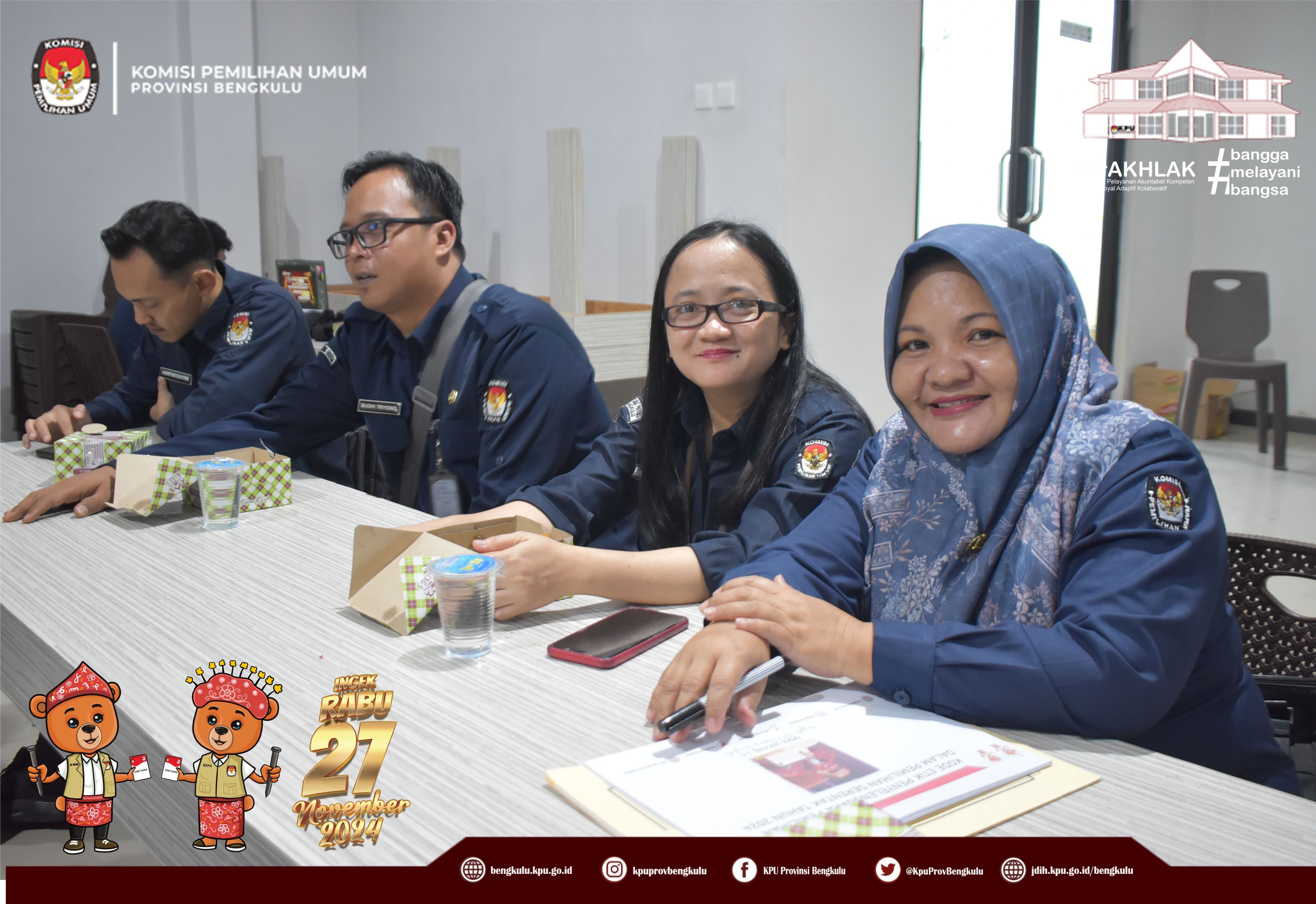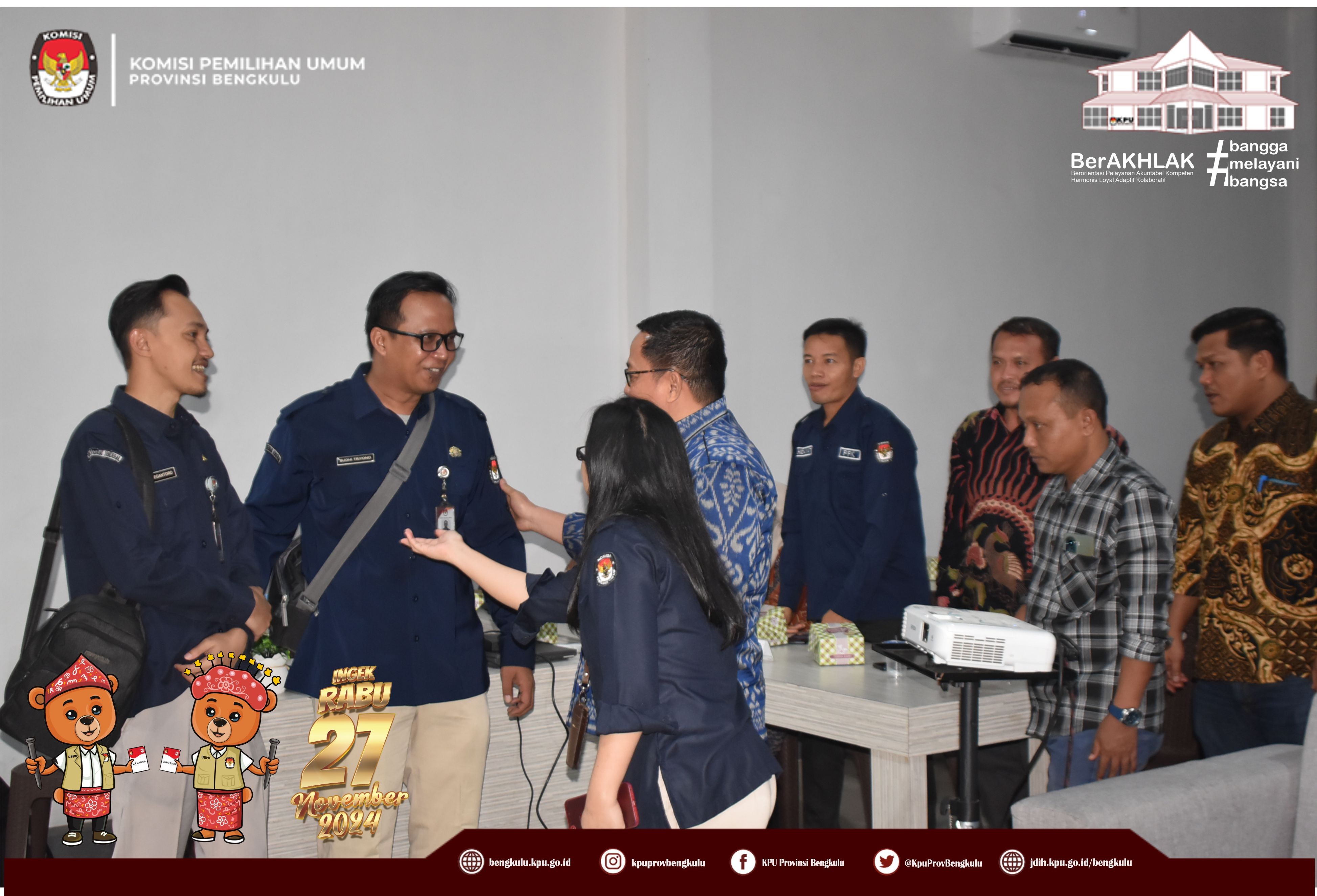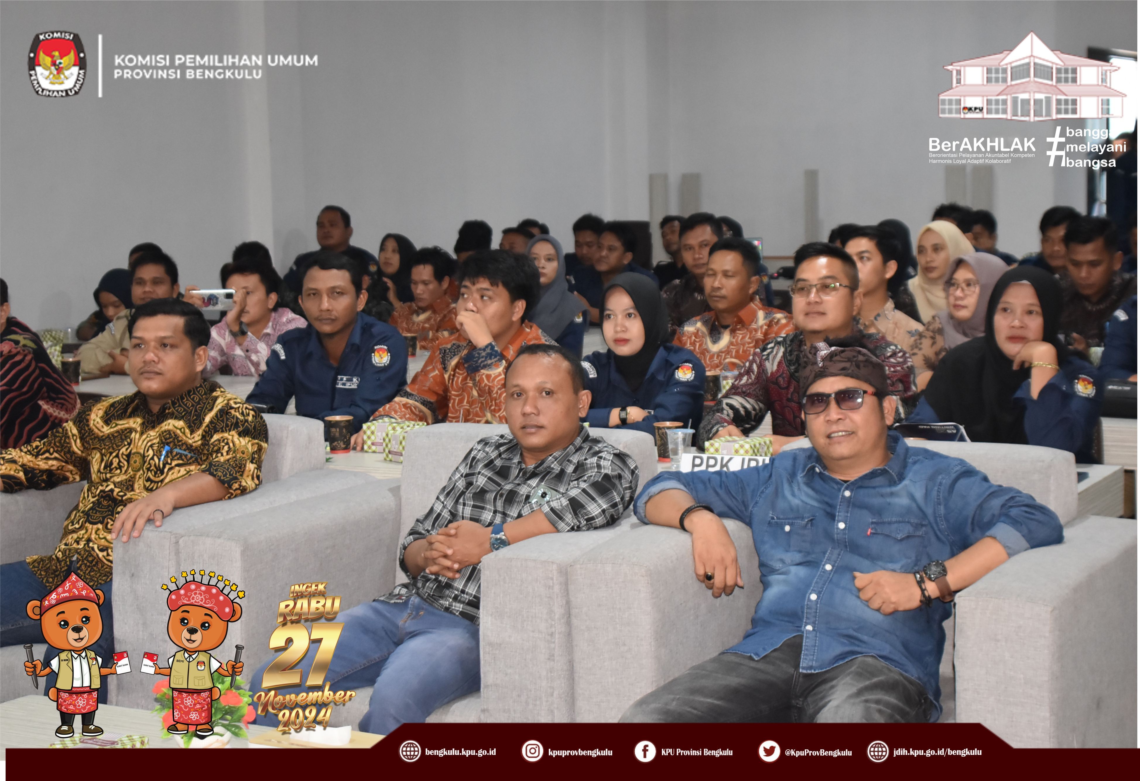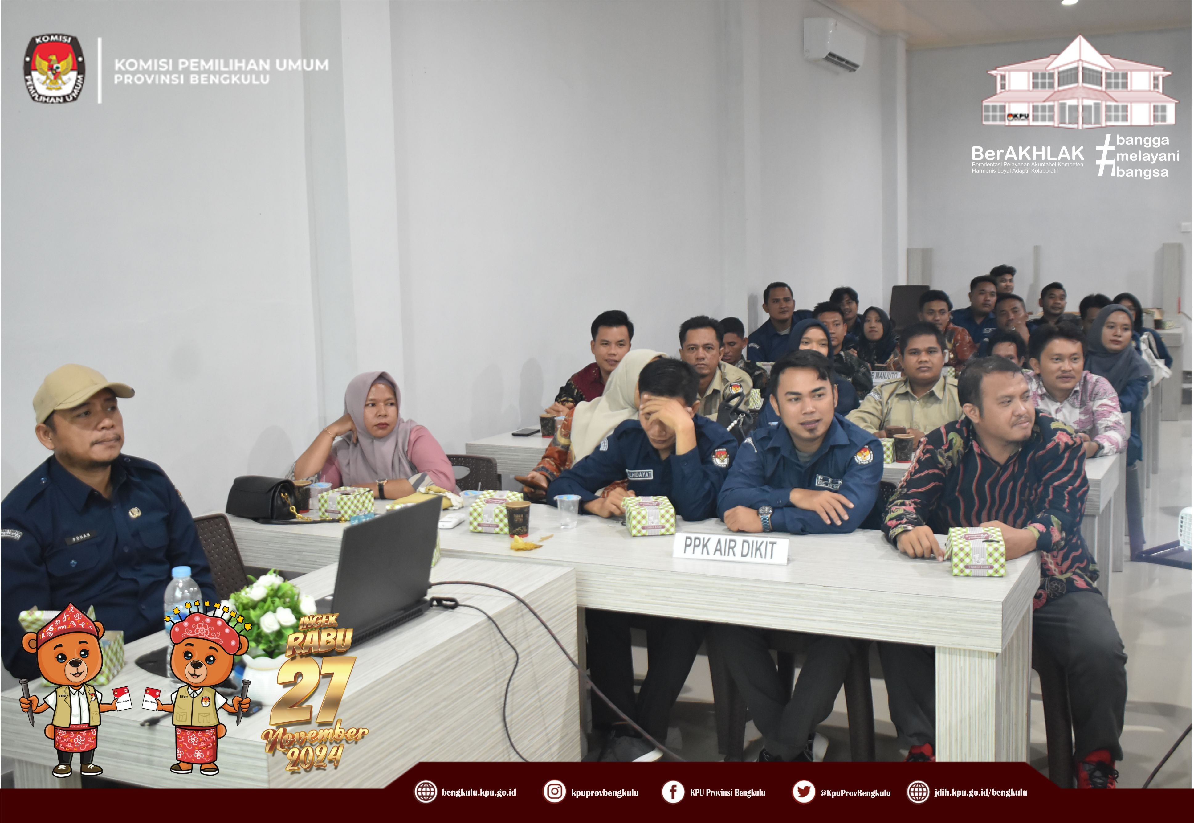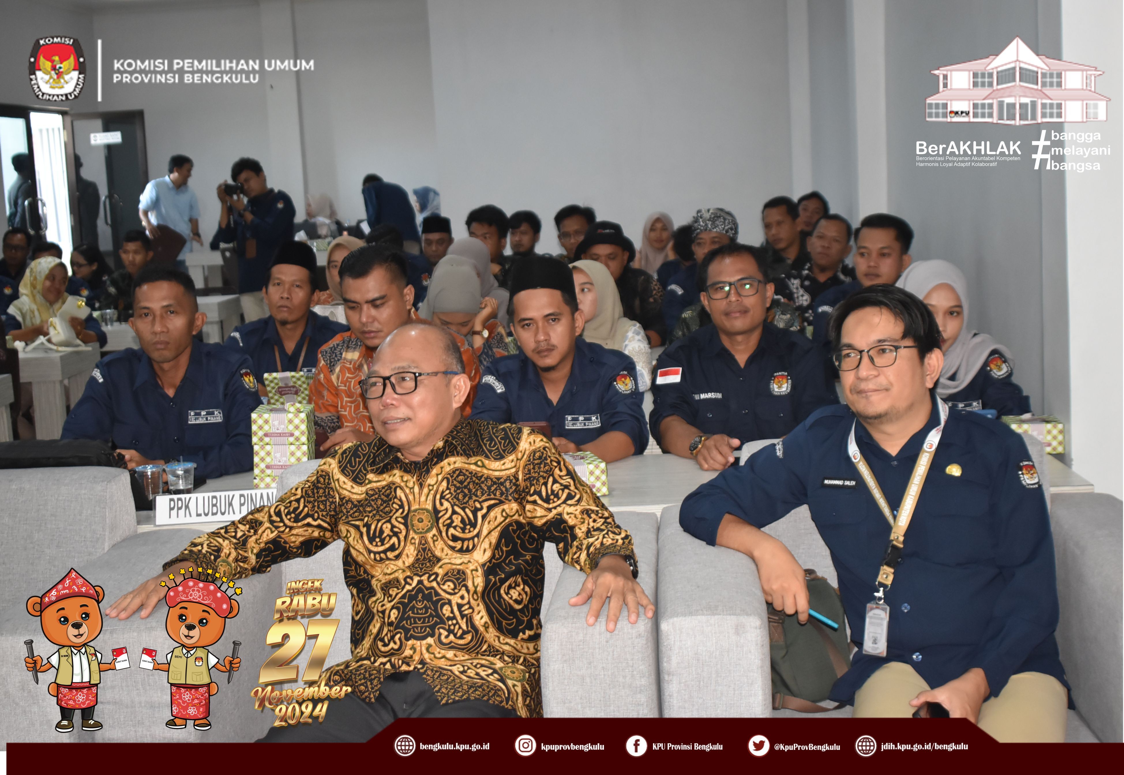 Bengkulu, bengkulu.kpu.go.id - Anggota KPU Provinsi Bengkulu Bapak Emex Verzoni memberikan arahan sekaligus narasumber dalam Rapat Kerja Penanganan Pelanggaran Kode Etik dan Pidana Pemilu/Pemilihan Bagi Badan Adhoc Penyelenggara Pemilihan Tahun 2024, Selasa (8/10/2024) di Hotel Abyan Mukomuko. Hadir Ketua KPU Kabupaten Mukomuko Marjono, Anggota KPU Kabupaten Mukomuko Efra Budiman, Endang Surya Bakti, Deni Setiabudi dan Misbahul Amri, serta PPK se-Kabupaten Mukomuko. Bapak Emex menjelaskan materi terkait Kode Etik Penyelenggara Pemilihan Dalam Pemilihan Serentak Tahun 2024 diantaranya kode etik sebagaimana diatur dalam regulasi, prinsip - prinsip penyelenggara pemilu/pemilihan, jenis-jenis pelanggaran serta sanksi bagi penyelenggara pemilihan. Kunci dalam bekerja ditegaskan Bapak Emex, penyelenggara pemilihan pada Pilkada Tahun 2024 harus bekerja secara profesional, menjaga integritas, soliditas, kolektif kolegial, melayani serta bebas dari perilaku Korupsi, Kolusi dan Nepotisme. Bapak Emex berharap pelaksanaan tahapan pilkada baik Gubernur dan Wakil Gubernur serta Bupati dan Wakil Bupati Tahun 2024 di Kabupaten Mukomuko berjalan aman lancar sukses dan tidak ada permasalahan yang berimbas pada kita selaku penyelenggara di kemudian hari.
