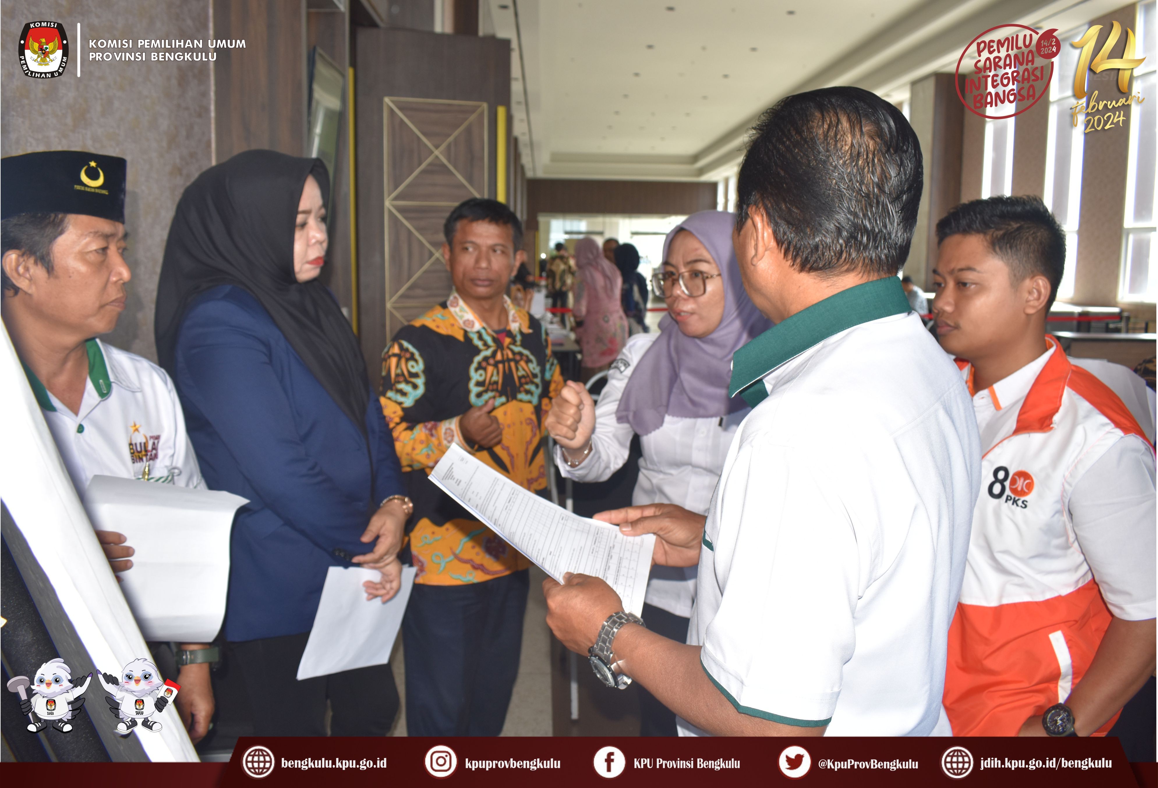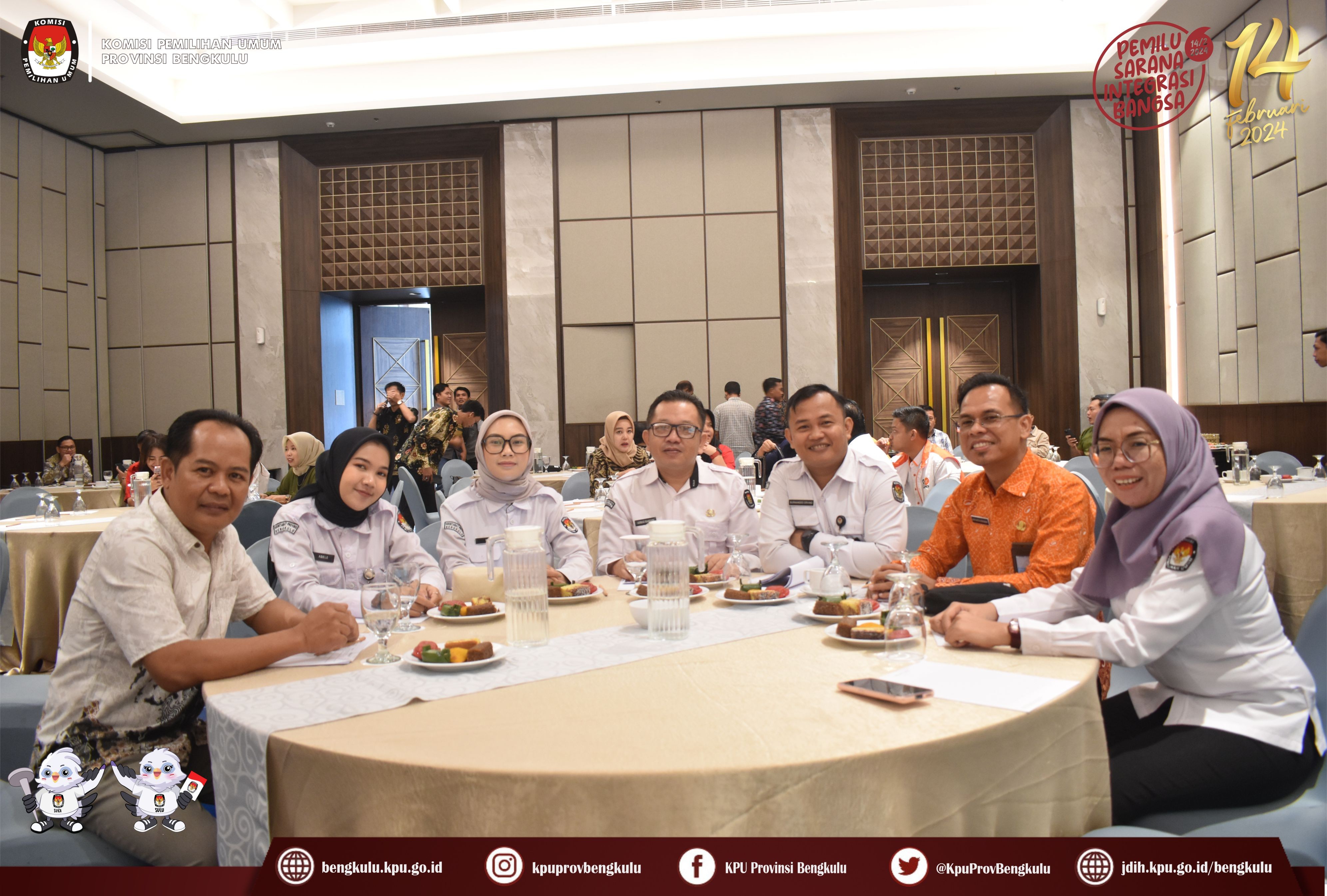 Bengkulu, bengkulu.kpu.go.id - Ketua KPU Provinsi Bengkulu Rusman Sudarsono hadir sebagai Narasumber dalam Kegiatan Workshop Penguatan Kapasitas (TOT) dan Manajemen Pengetahuan Saksi Peserta Pemilu yang diselenggarakan Bawaslu Provinsi Bengkulu, Kamis (21/12/2023) bertempat di Hotel Mercure Bengkulu. Peserta yang hadir, yaitu Ketua dan Staf Bawaslu Kabupaten/Kota se-Provinsi Bengkulu, Partai Politik Peserta Pemilu 2024 tingkat Provinsi Bengkulu, Petugas Penghubung Calon Anggota Perseroangan DPD, OKP, Pemantau Pemilu dan sebagainya. Rusman menjelaskan gambaran persiapan dan pelaksanaan pemungutan suara di TPS diantaranya, jadwal dan tahapan pemungutan, penghitungan suara di TPS Pemilu tahun 2024, Pengumuman hari dan tanggal pemungutan suara, penyampaian surat pemberitahuan pemungutan suara kepada pemilih, penyiapan dan tata letak TPS, dan sebagainya. Untuk mendapatkan gambaran pemungutan suara di TPS, Sekretariat KPU Provinsi Bengkulu melakukan simulasi pemungutan dan penghituangan suara di TPS yang dikoordinir oleh Operator Sirekap Dwi Safitriana disaksikan Peserta Kegiatan. Simulasi yang dilakukan dimulai dari proses persiapan, tugas masing-masing KPPS 1 sd 7, Peran Saksi serta Pengawas TPS, proses pencoblosan sampai dengan pengjhitungan suara.