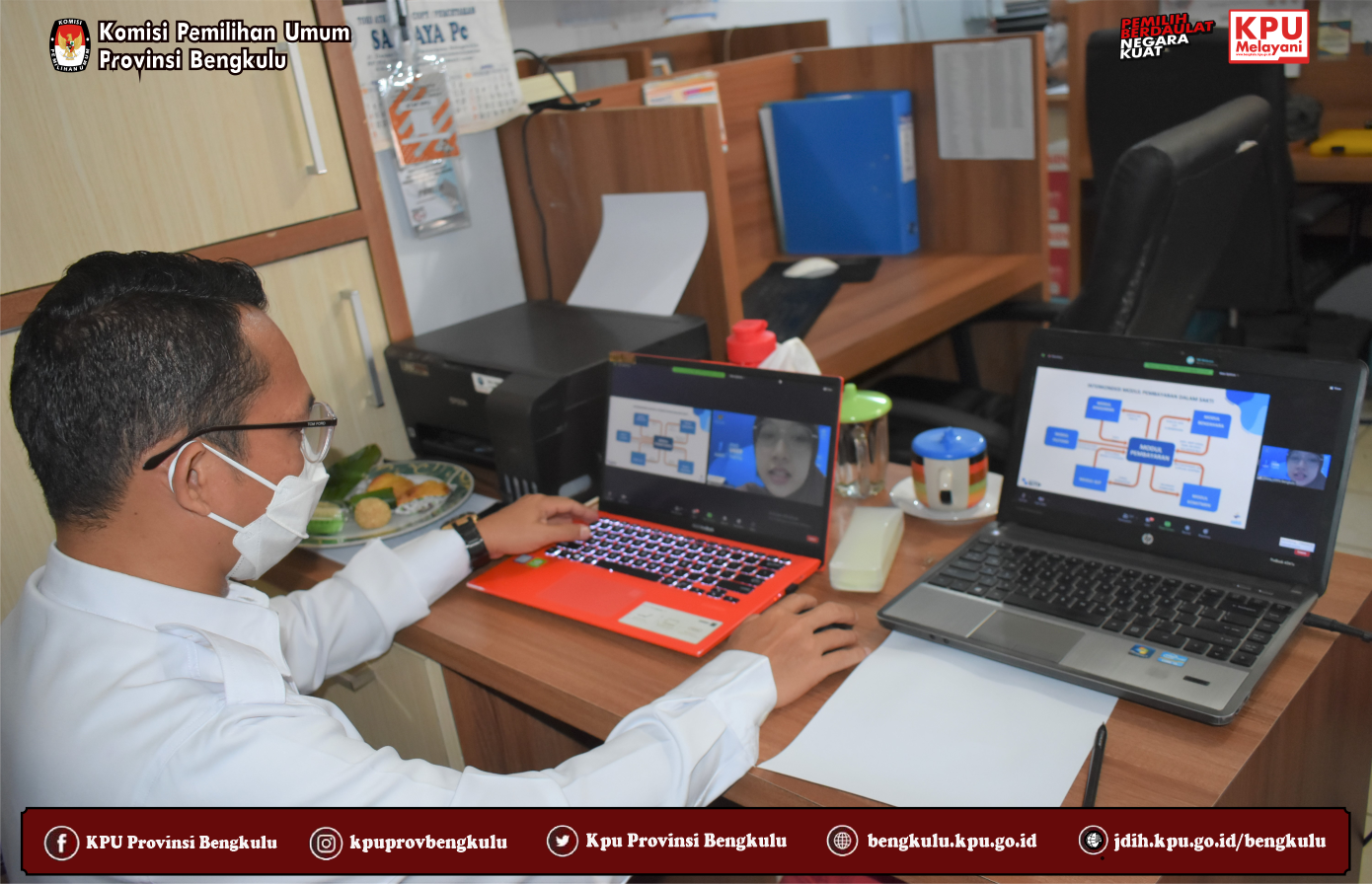 KPU Provinsi Bengkulu yang diwakili Kabag Keuangan Umum dan Logistik Sudirman, Kasubbag Keuangan M. Beni Eka Putra, Staf Keuangan Firmansyah dan Eko Dafella mengikuti End User Training (EUT) Sistem Aplikasi Keuangan Tingkat Instansi SAKTI secara daring (zoom meeting) yang diselenggarakan oleh Kantor Pelayanan Perbendaharaan Negara (KPPN) Bengkulu dimulai dari 6 s.d 20 September 2021 untuk Modul Pelaporan. Penyampaian materi dan modul Pelaporan disampaikan langsung Narasumber dari KPPN Bengkulu.