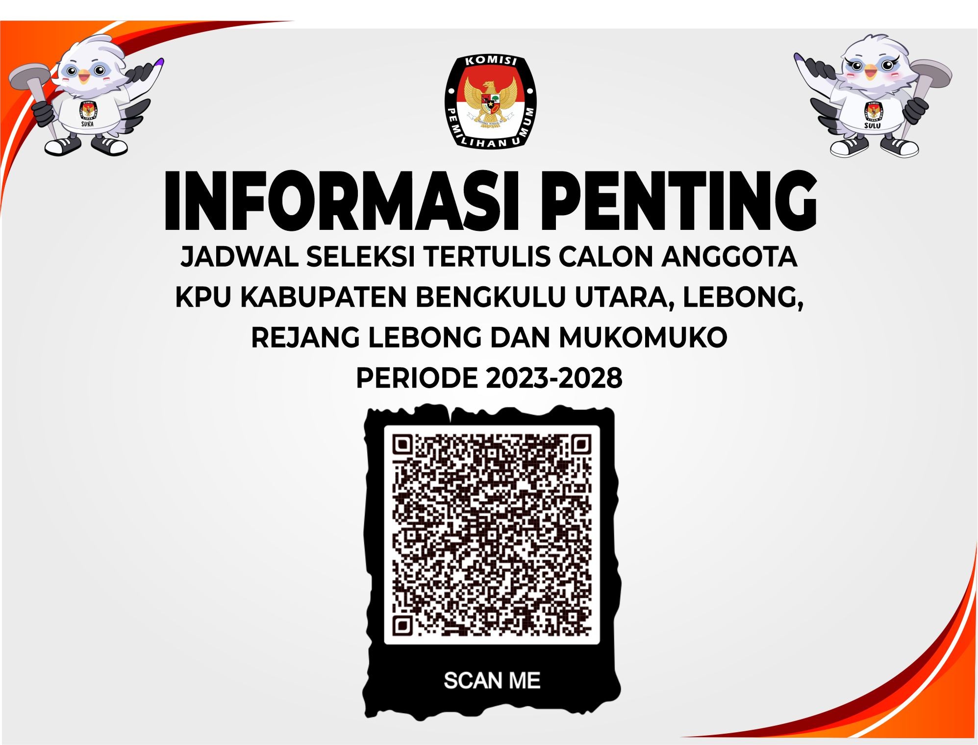 Informasi Penting Jadwal Seleksi Tertulis Calon Anggota KPU Kabupaten Bengkulu Utara, Lebong, Rejang Lebong dan Mukomuko Periode 2023-2028