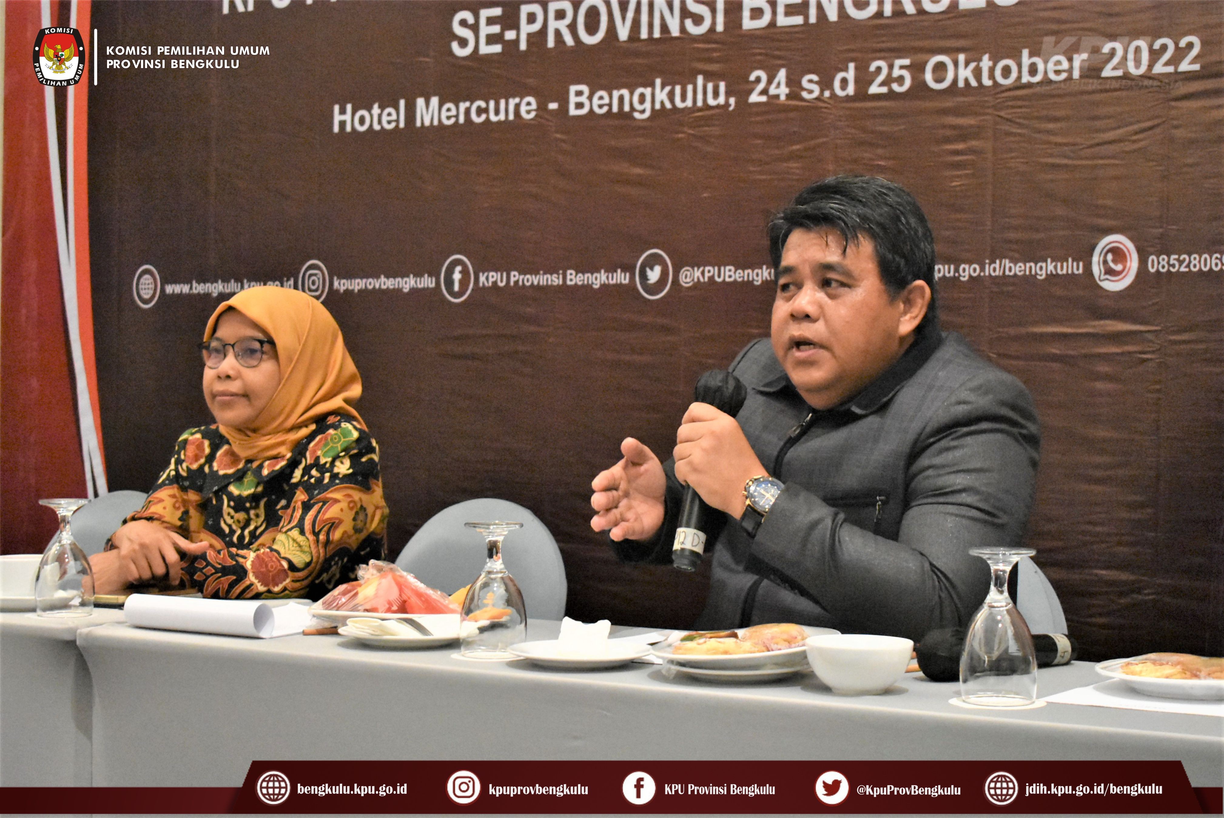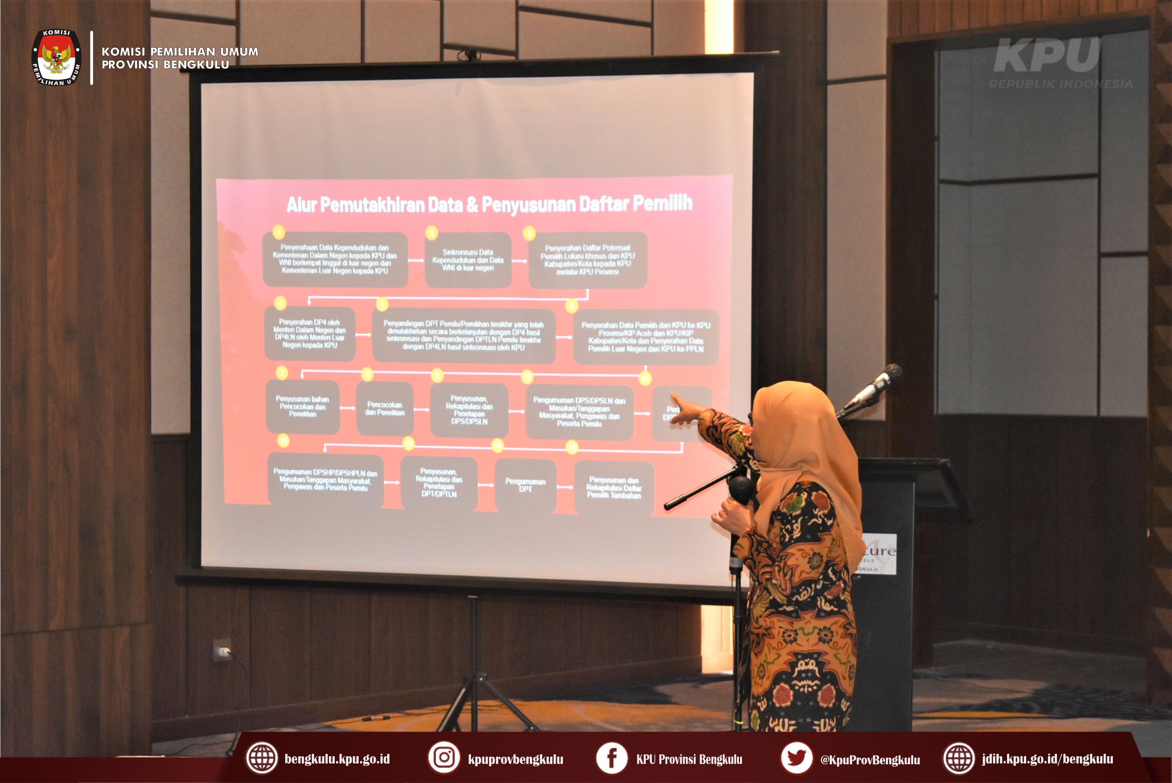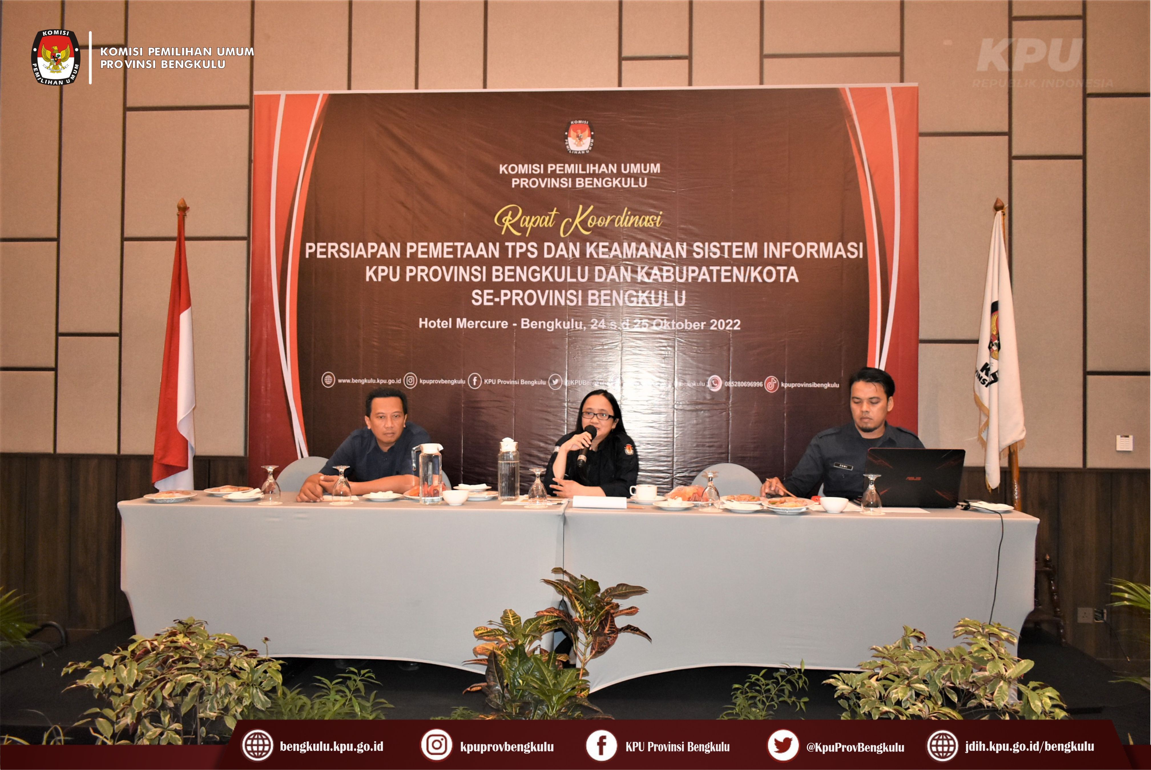 Bengkulu-bengkulu.kpu.go.id, Hari kedua Selasa (25/10) kegiatan Rapat Koordinasi Persiapan Pemetaan TPS dan Keamanan Sistem Informasi KPU Provinsi Bengkulu dan KPU Kabupaten/Kota se-Provinsi Bengkulu dilanjutkan dengan penyampaian materi oleh Anggota KPU Provinsi Bengkulu Siti Baroroh. Siti membahas materi terkait Persiapan Pemetaan TPS dan TPS Lokasi Khusus Pemilu 2024 diantaranya isu strategis Pemutakhiran Data dan Penyusunan Daftar Pemilih di lokasi khusus, kategori pendataan pemilih di lokasi khusus, Pendataan pemilih di lokasi khusus, serta alur tahapan dan jadwal penyelenggaraan Pemilu Tahun 2024. Selain itu, dilakukan juga diskusi / tanya jawab mengenai pengalaman proses pemetaan TPS yang dilakukan oleh KPU Kabupaten/Kota pada Pemilu 2019 dan Pemilihan 2020.