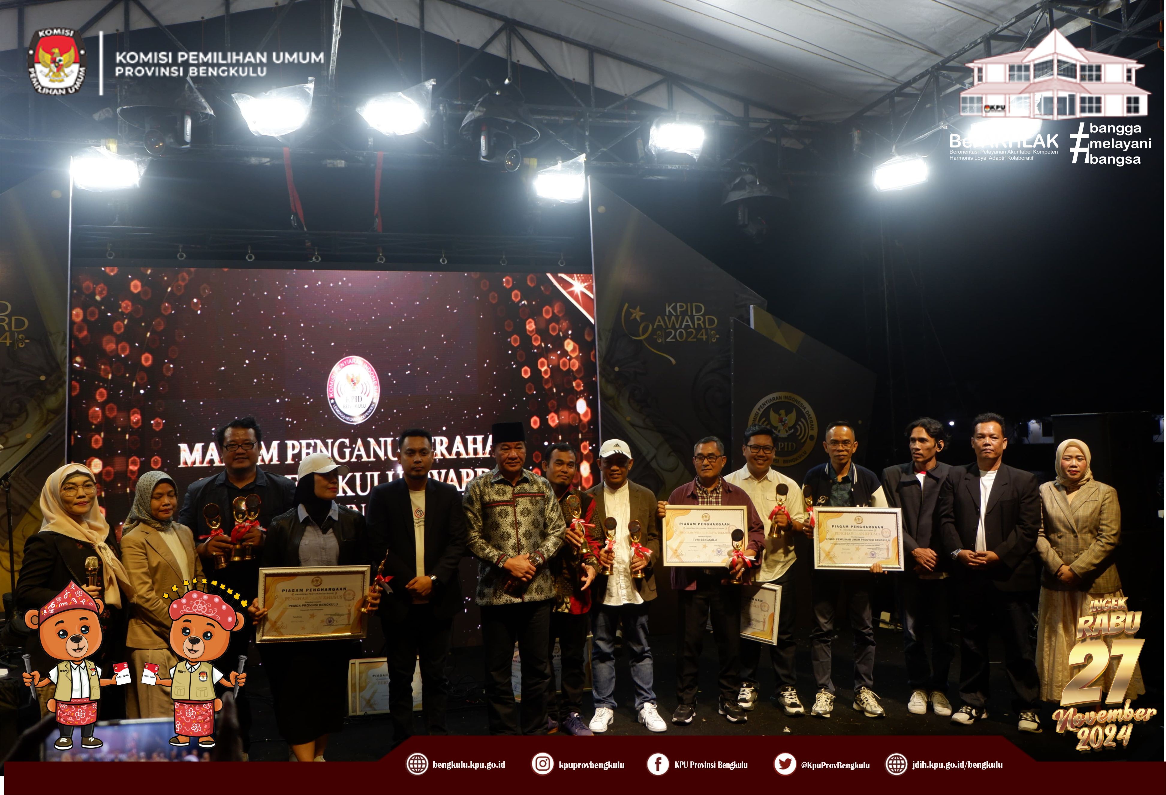 Bengkulu.bengkulu.kpu.go.id - Ketua KPU Provinsi Bengkulu hadir dalam Malam Penganugerahan KPID Award Tahun 2024 pada Minggu (8/12/2024) di Rafflesia Beach Club (RBC) Bengkulu. Hadir Plt. Gubernur Bengkulu Rosjonsyah, Lembaga Penyiaran dan OPD Provinsi Bengkulu. Dalam acara tersebut KPU Provinsi Bengkulu berhasil memperoleh Piagam Penghargaan Anugerah Penyiaran dengan kategori Penghargaan Khusus atas kolaborasi bersama dalam menyukseskan Pemilu dan Pemilihan Kepala Daerah dengan Penyiaran yang memiliki nilai informasi, Pendidikan, dan Hiburan. Ini merupakan suatu kebanggaan atas usaha KPU Provinsi Bengkulu dalam mensosialisasikan pendidikan pemilih kepada seluruh masyarakat Provinsi Bengkulu.