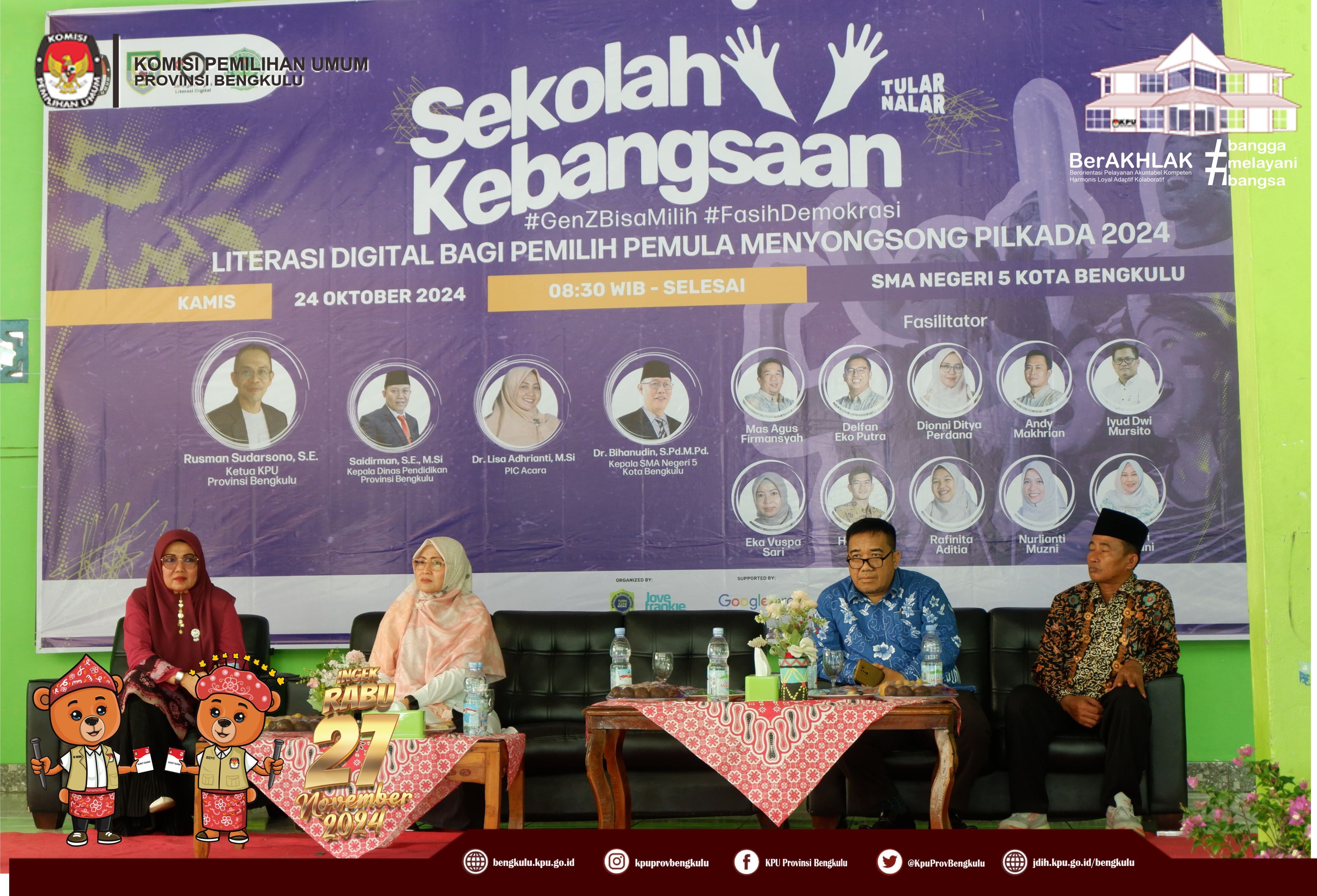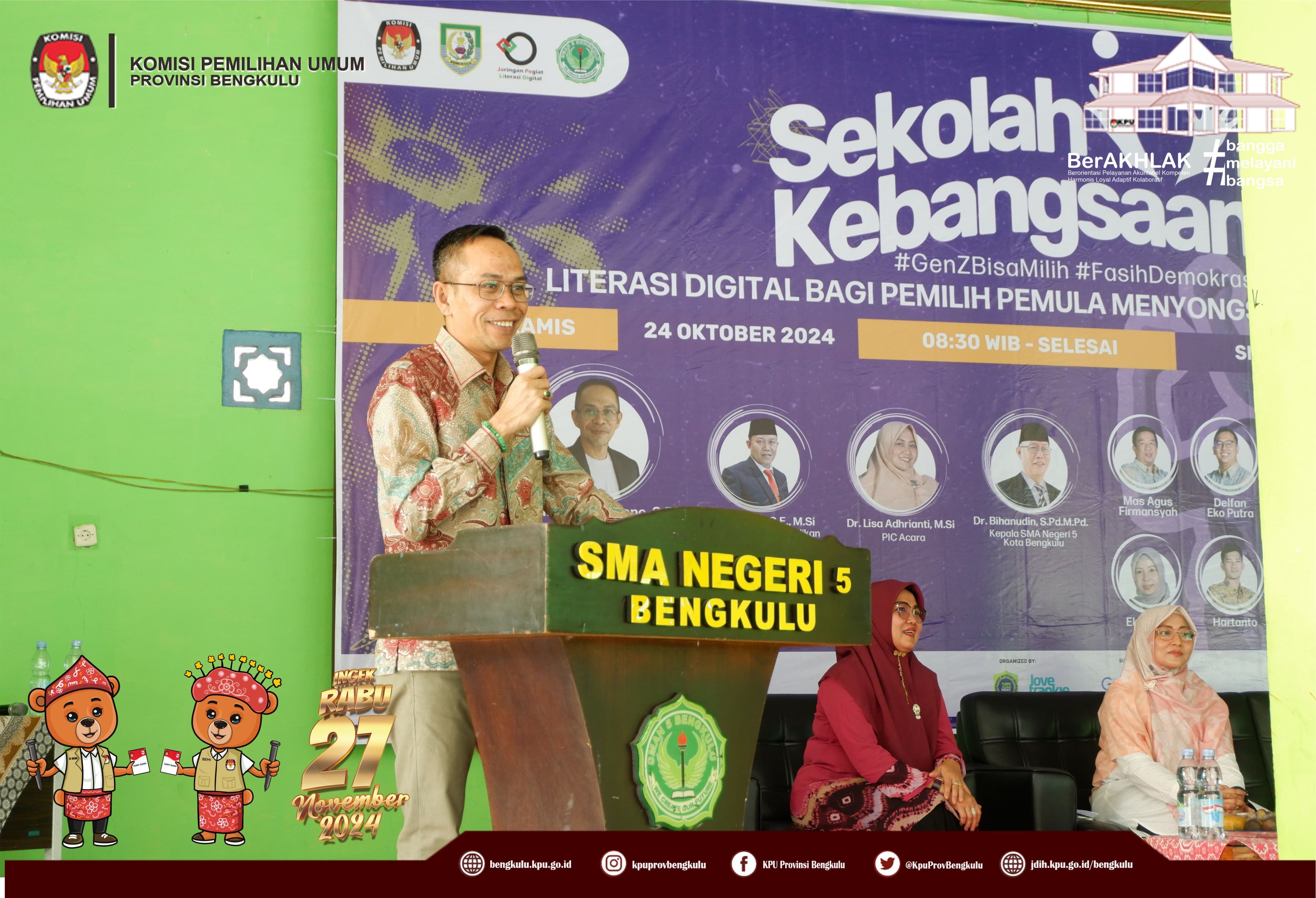Ketua KPU Provinsi Bengkulu hadir dalam Sekolah Kebangsaan dengan Tema Literasi Digital Bagi Pemilih Pemula Menyongsong Pilkada Tahun 2024