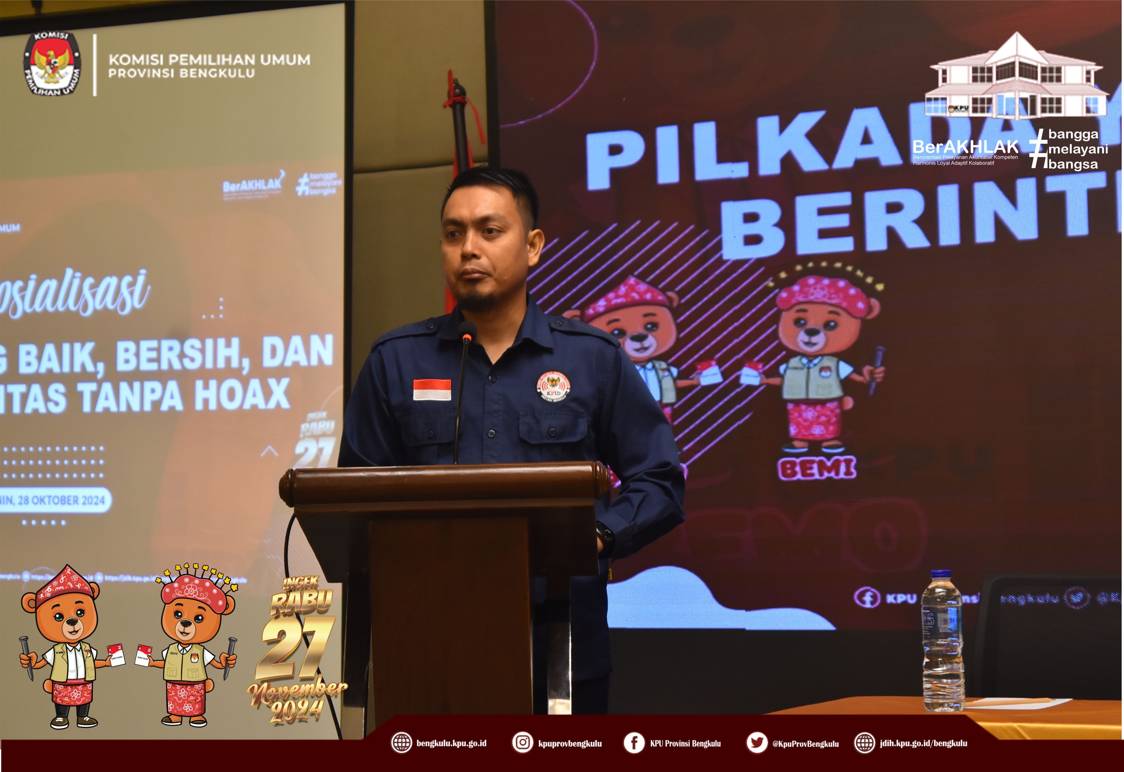 Ketua KPU Provinsi Bengkulu Membuka Sosialisasi Pilkada yang Baik, Bersih, dan Berintegritas Tanpa Hoax yang diselenggarakan KPID Provinsi Bengkulu