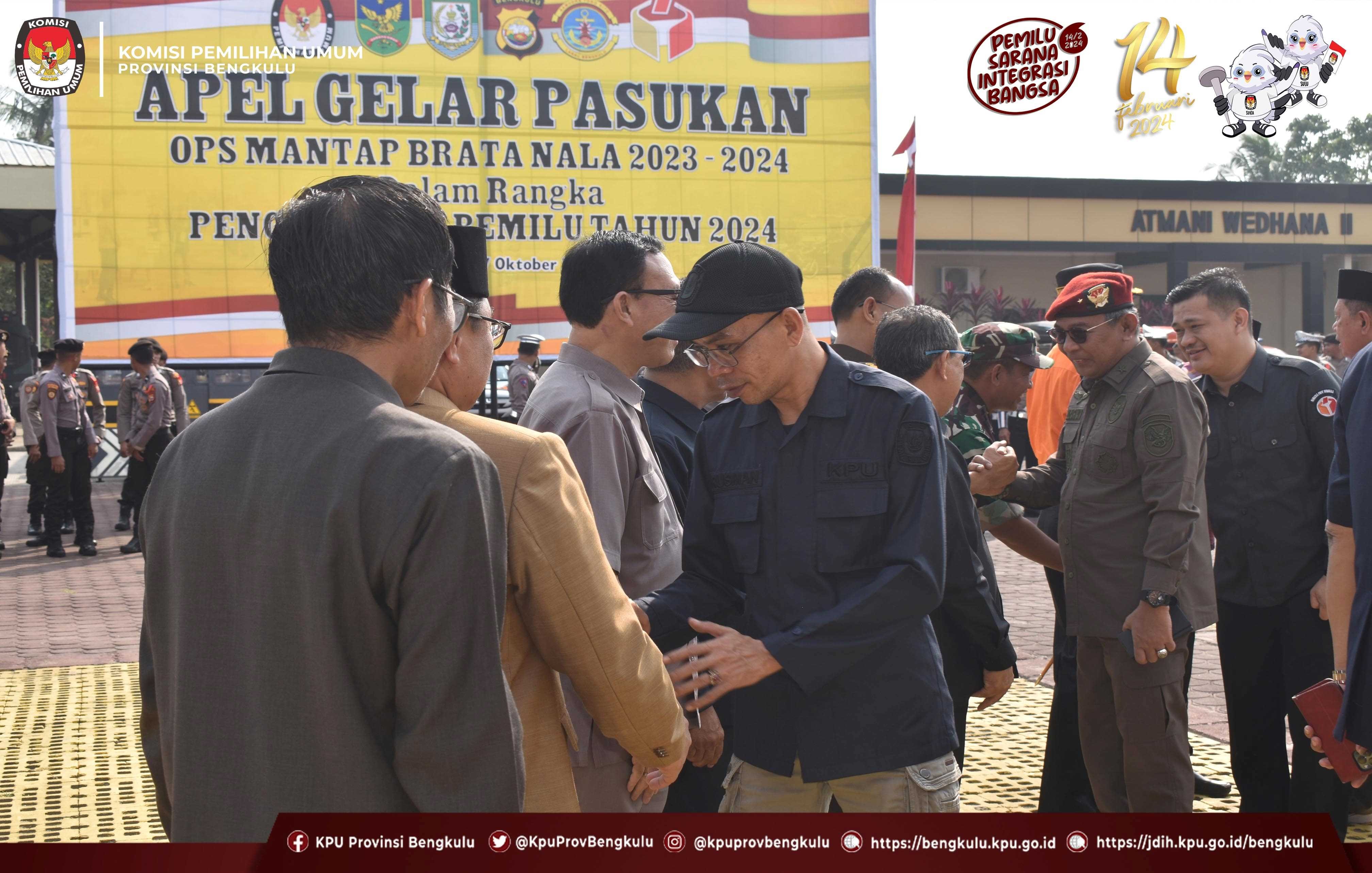KETUA KPU PROVINSI BENGKULU RUSMAN SUDARSONO MENGHADIRI APEL GELAR PASUKAN OPS MANTAP BRATA NALA 2023-2024 DALAM RANGKA PENGAMANAN PEMILU TAHUN 2024