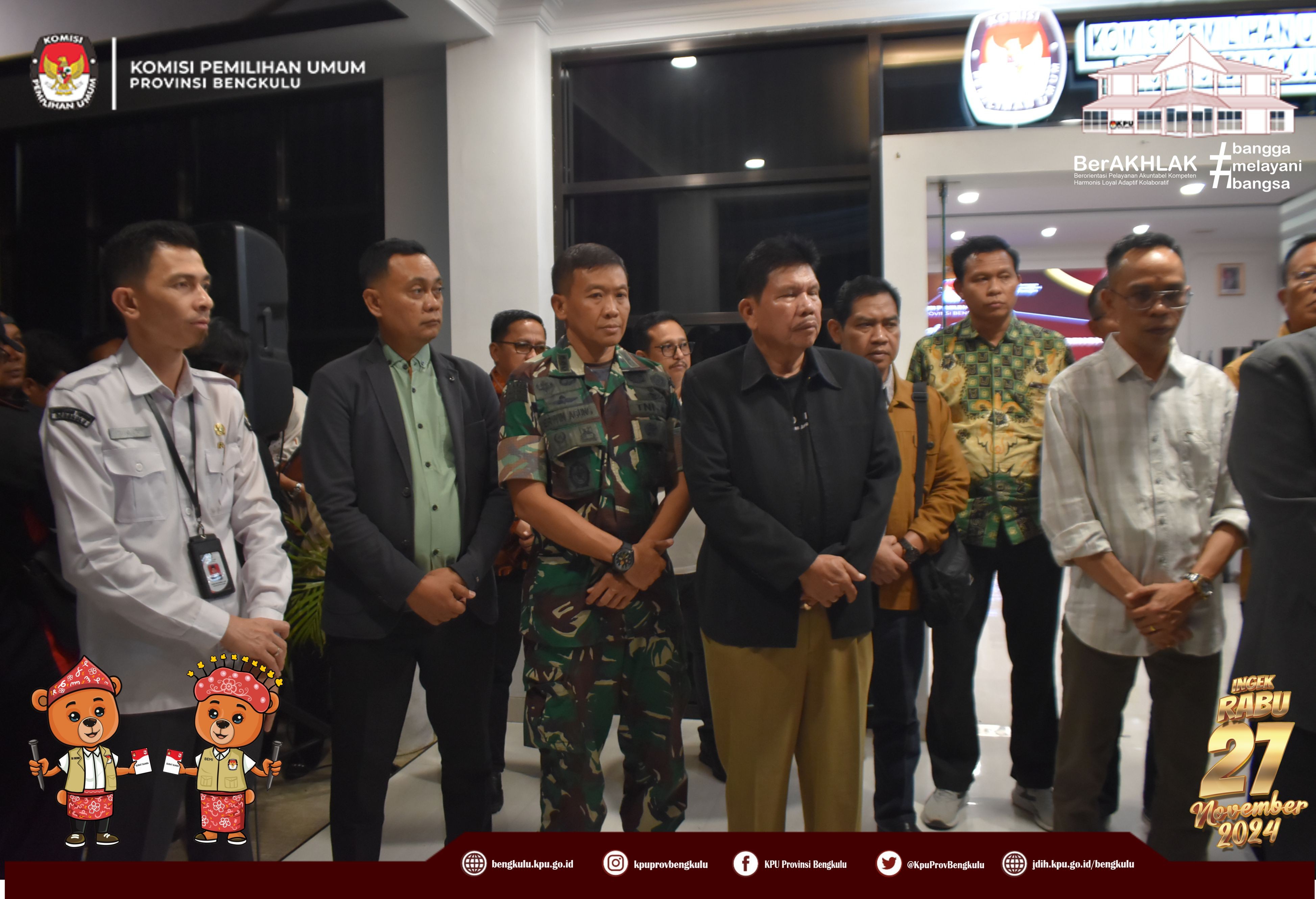 Bengkulu, bengkulu.kpu.go.id - KPU Provinsi Bengkulu melaksanakan Konferensi Pers "Persiapan Akhir Pemilihan Gubernur dan Wakil Gubernur Provinsi Bengkulu Tahun 2024, Senin (25/11/2024) di Aula Demokrasi KPU Provinsi Bengkulu. Hadir dalam Konferensi Pers Unsur Forkopimda, yaitu Ketua DPRD Provinsi, Kapolda, Kajati, Danrem 041 Gamas, Danlanal, Ketua Pengadilan, Kepala Binda, Ketua Bawaslu Provinsi, Kaban Kesbangpol, Ketua KPU Kabupaten/Kota se-Provinsi Bengkulu dan Tim Penghubung (LO) Pasangan Calon serta awak media cetak, elektronik dan daring (online). Ketua KPU Provinsi Bengkulu Bapak Rusman menyampaikan pertama KPU Provinsi Bengkulu mengucapkan terima kasih yang sebesar-besarnya kepada forkopimda, tim pemenangan, stakholder terkait dan seluruh media massa cetak elektronik maupun online yang mana sejak awal tahapan sampai dengan saat ini telah banyak membantu mensupport KPU sehingga tahapan berjalan lancar. Kedua KPU Provinsi Bengkulu menegaskan tahapan pemilihan tetap berjalan sebagaimana mestinya, pada tanggal 27 November 2024 kita akan tetap melakukan pencoblosan jadi tidak ada persoalan terhadap tahapan dan jadwal sebagaimana diatur dalam PKPU Nomor 2 Tahun 2024, untuk itu kita semua bersepakat bahwasanya untuk disampaikan kepada publik di Bengkulu dan insya allah pilkada kita tetap dan tanpa ada halangan serta terakhir kami KPU Provinsi Bengkulu mengharapkan kepada seluruh masyarakat Provinsi Bengkulu menggunakan hak pilihnya di TPS pada Rabu 27 November 2024. Ketua Bawaslu Provinsi Bengkulu Bapak Fahamsyah menyampaikan bahwa semua tahapan yang terjadi dan termasuk yang sudah terjadi diawasi Bawaslu Provinsi Bengkulu dan kami memastikan bahwa semua tahapan tidak ada yang berbeda serta tahapan pelaksanaan pilkada di Provinsi Bengkulu berjalan sesuai dengan aturan yang berlaku, Bawaslu tetap mengawasi sampai dengan tahapan pilkada ini selesai.. Sementara itu, Tim Pemenangan Paslon 1 dan Paslon 2 sama-sama berkomitmen menyukseskan pilkada serentak 2024 dengan mengajak seluruh masyarakat Provinsi Bengkulu datang ke TPS menggunakan hak pilihnya pada Rabu 27 November 2024.