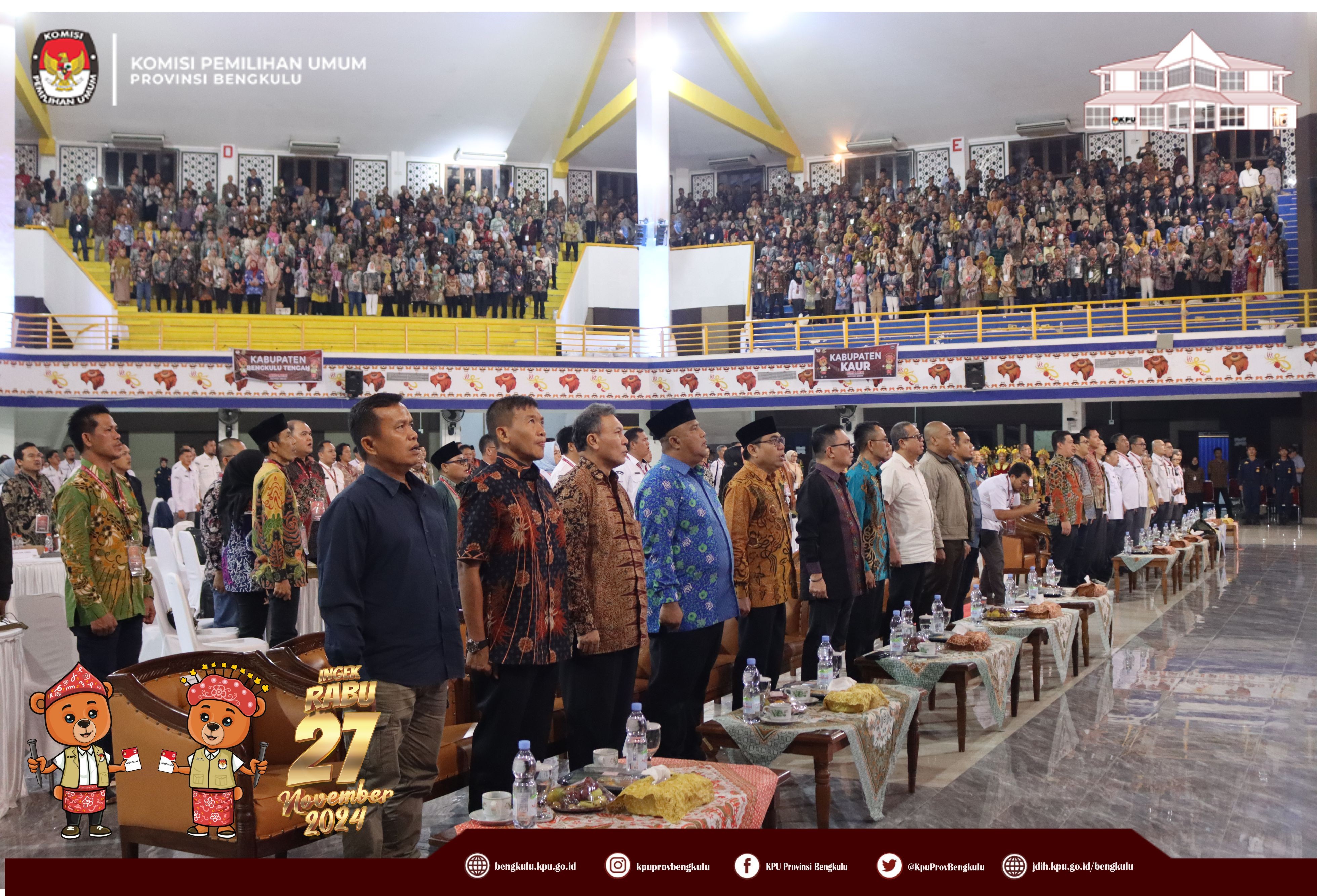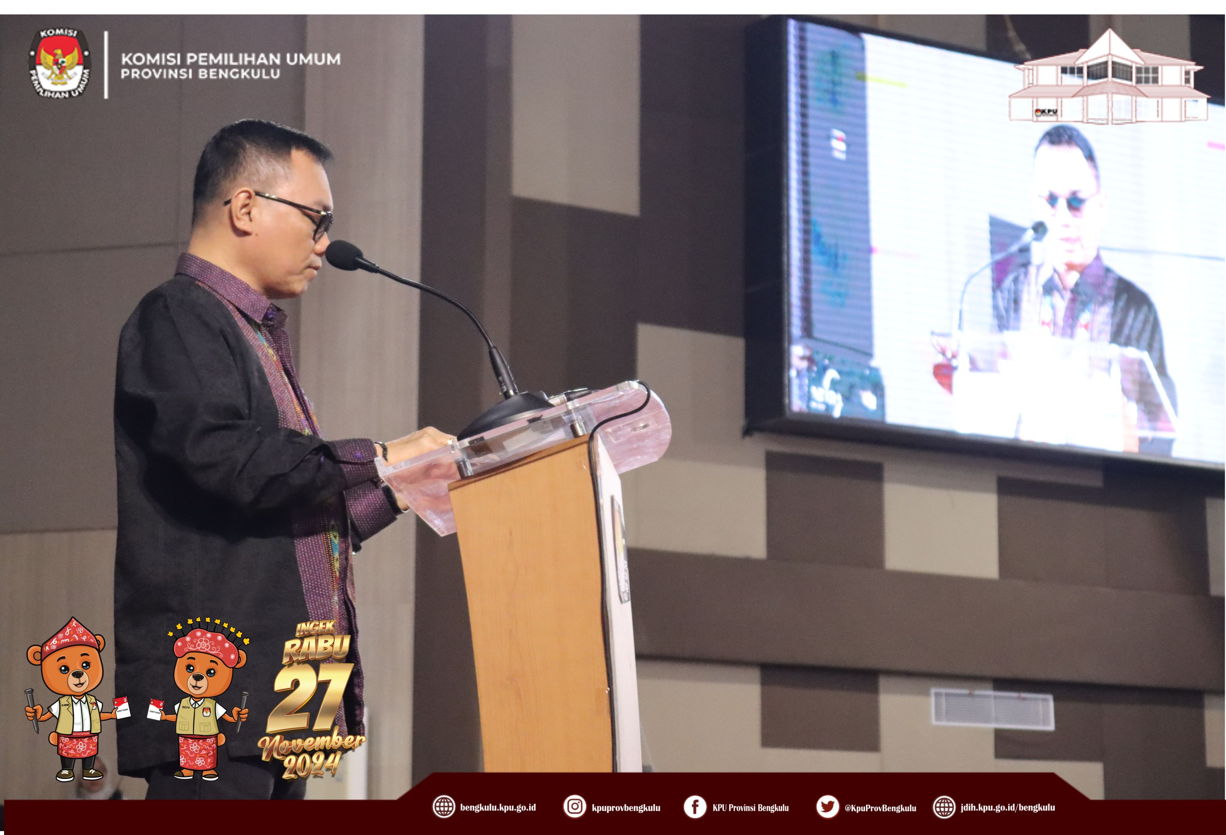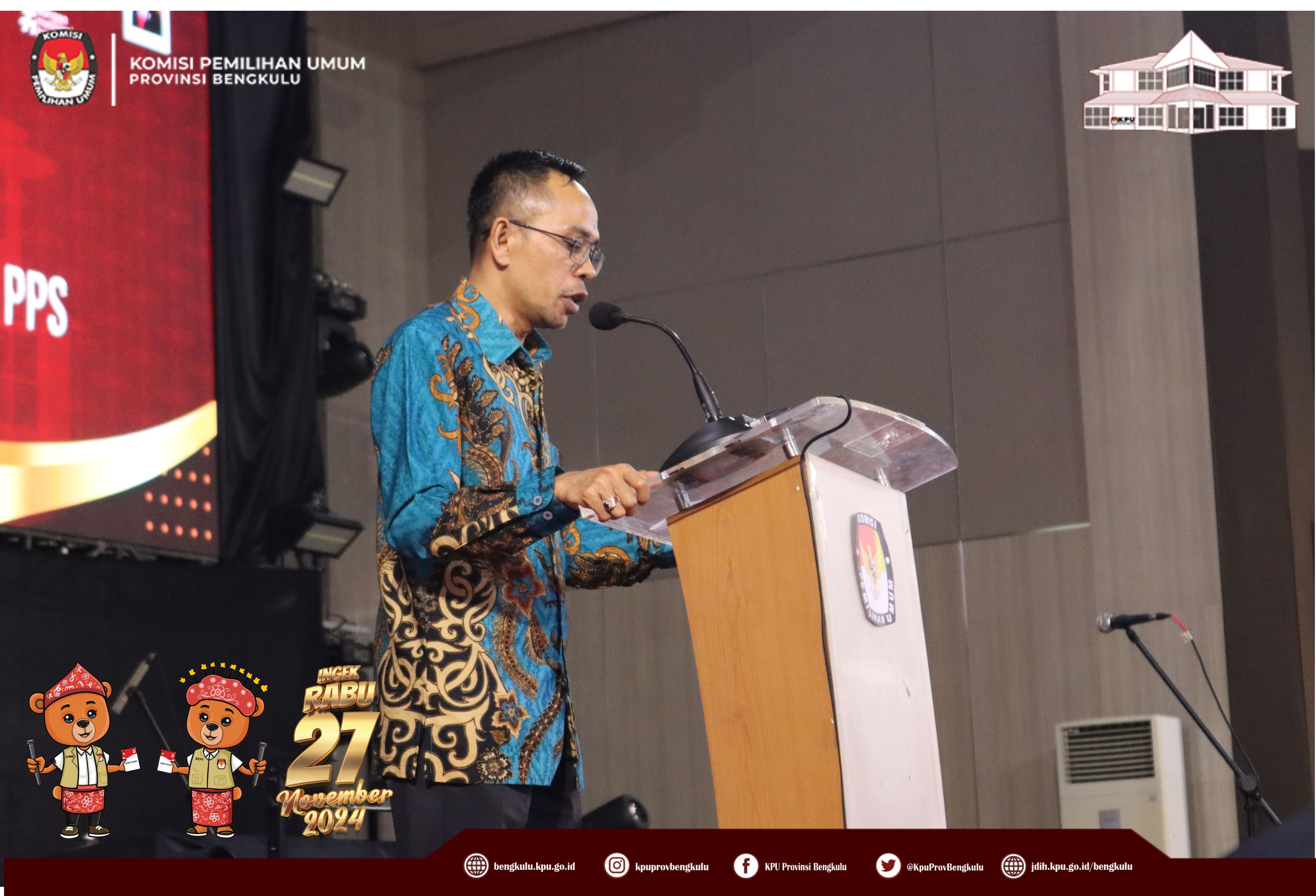 Bengkulu, bengkulu.kpu.go.id - Anggota KPU Bapak Parsadaan Harahap bersama Ketua KPU Provinsi Bengkulu Rusman Sudarsono dan Anggota KPU Provinsi Bengkulu Alpin Samsen, Dodi Hendra Supiarso, dan Sarjan Efendi serta Sekretaris Kemas Mohammad Ajir membuka Konsolidasi Daerah KPU Provinsi dengan KPU Kabupaten/Kota, PPK dan PPS se-Provinsi Bengkulu, Senin (12/8/2024) di Gedung Serba Guna Universitas Bengkulu. Turut hadir Pemerintah Daerah, DPRD Provinsi, Polda, Kejati, Kesbangpol, Lanal, Korem 041 Gamas, Bawaslu, KPID, KIP, BPKP, Pengadilan Tinggi, peserta Ketua, Anggota, Sekretaris, Kasubbag, Ketua, Anggota Sekretaris PPK dan Ketua PPS Kabupaten Bengkulu Selatan, Kaur, Rejang Lebong, Bengkulu Tengah dan Lebong. Parsadaan dalam arahannya menekankan dan berharap kepada seluruh jajaran penyelenggara pemilihan KPU Provinsi, KPU Kabupaten/Kota, Sekretariat, PPK dan PPS untuk bekerja secara dengan menjaga integritas, profesional, soliditas dan mentalitas dalam melaksanakan penyelenggaraan pilkada Tahun 2024 di Provinsi Bengkulu. Selain itu, Parsadaan bahwa dalam bekerja KPU secara berjenjang harus satu komando, satu tujuan dan tidak ada Pemungutan Suara Ulang (PSU) di Provinsi Bengkulu.
