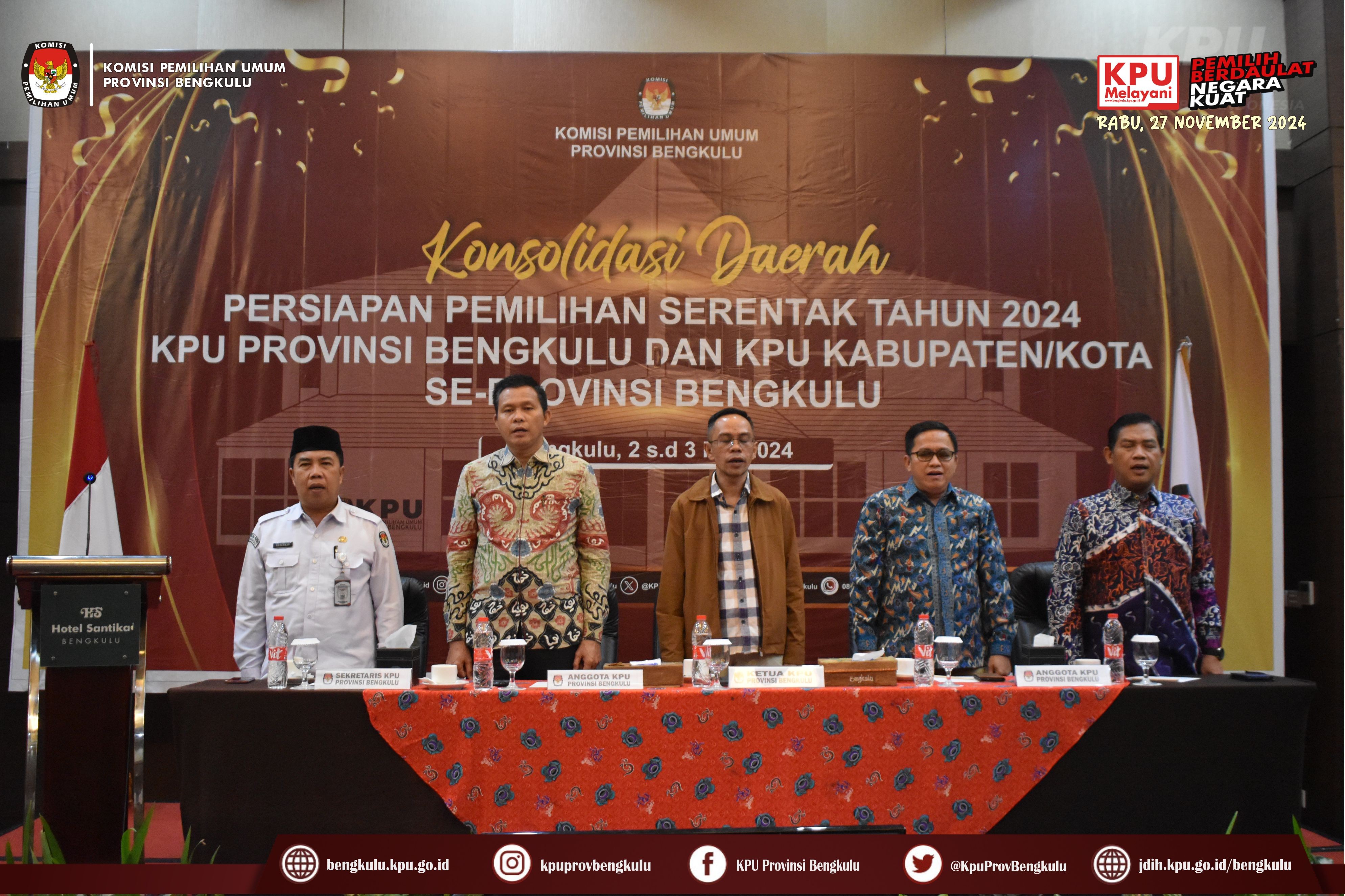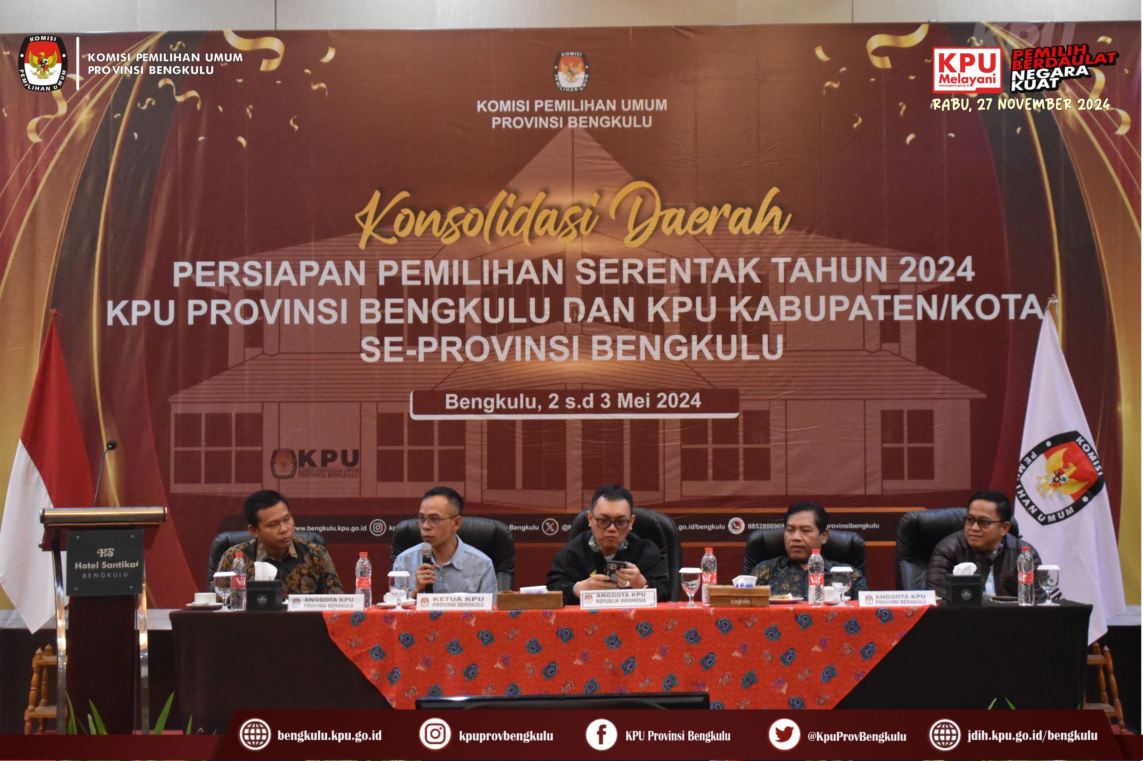 Konsolidasi Daerah Persiapan Pemilihan Serentak Tahun 2024 KPU Se-Provinsi Bengkulu