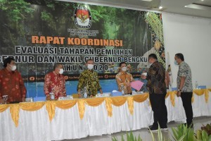 Komisioner KPU Republik Indonesia Bapak Pramono Ubaid Tanthowi hadir dalam Rapat Koordinasi Evaluasi Tahapan Pemilihan Gubernur dan Wakil Gubernur Bengkulu Tahun 2020 pada Selasa (16/3) yang diselenggarakan oleh KPU Provinsi Bengkulu di Hotel Golden Rich 88 Curup.