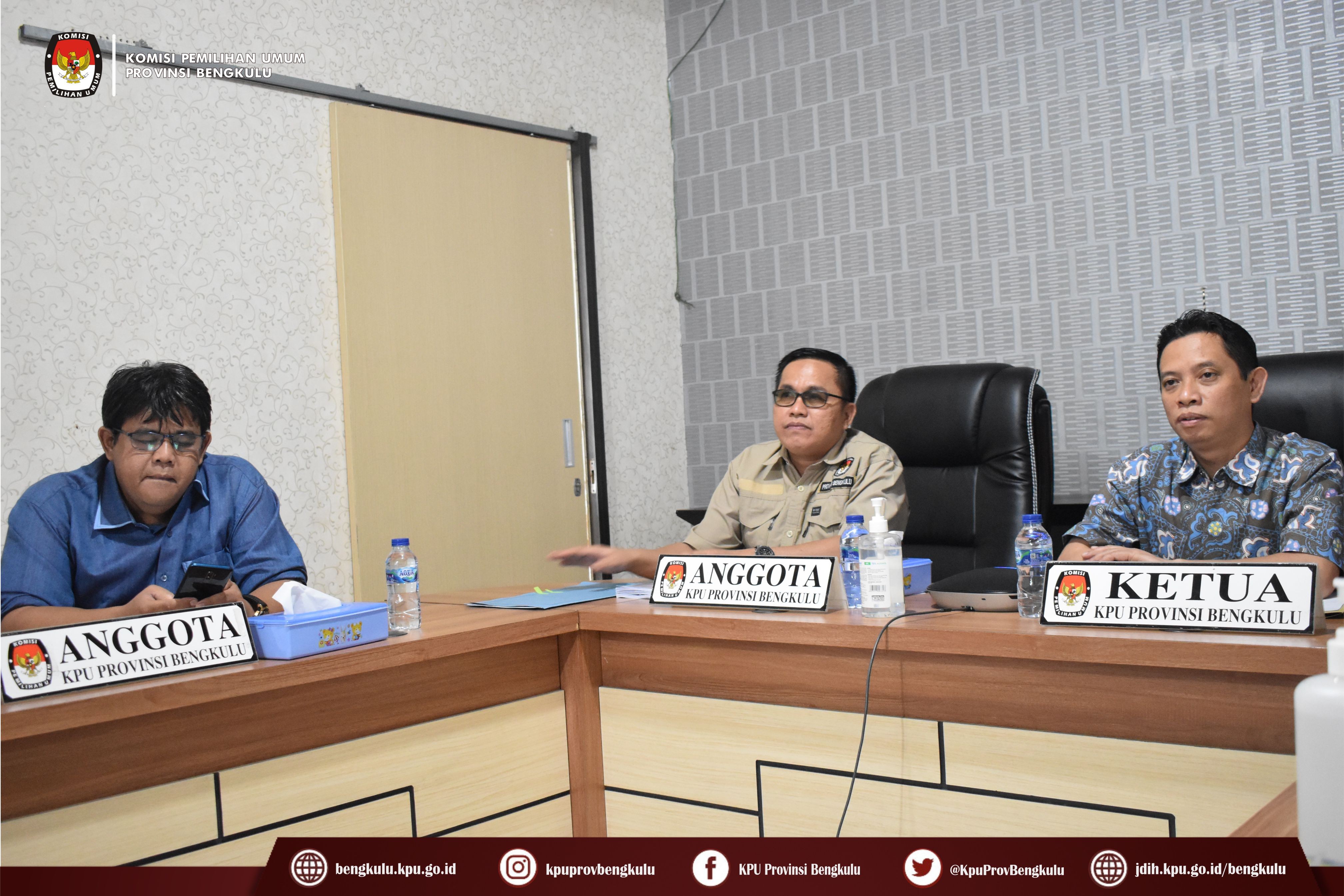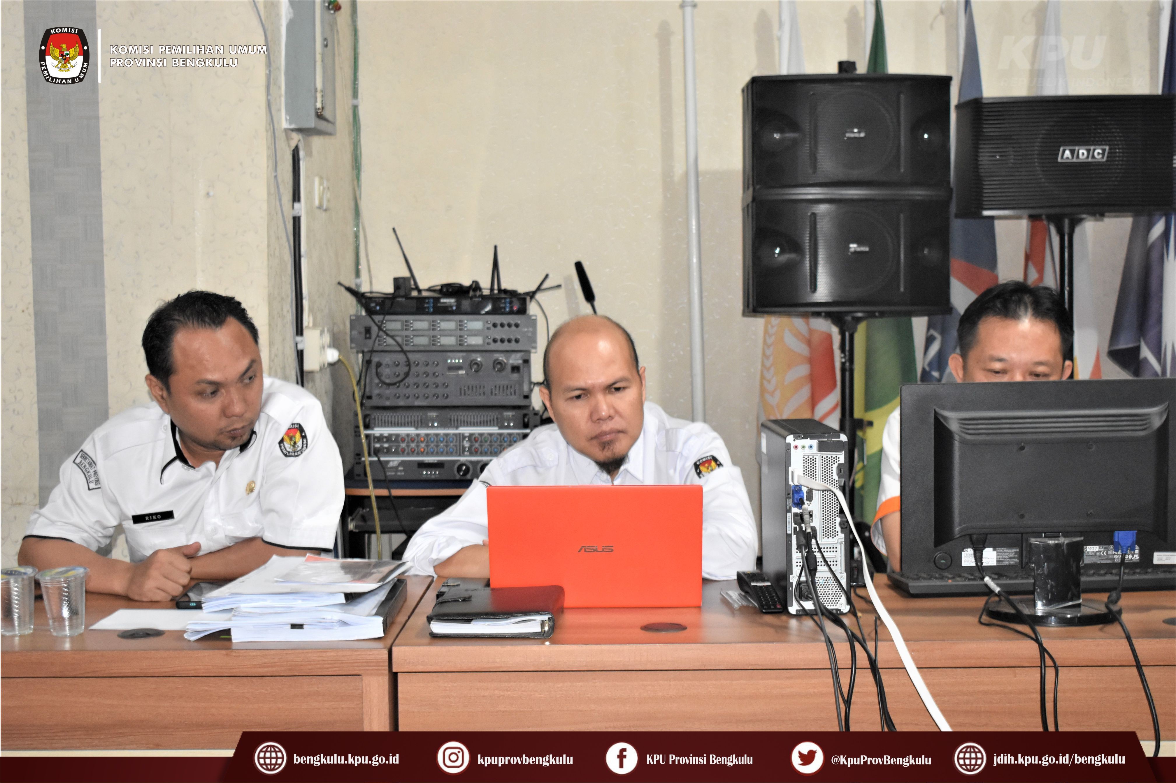 Rapat yang dipimpin Anggota KPU Provinsi Bengkulu Divisi Teknis Penyelenggaraan Emex Verzoni ini menekankan pada mekanisme kerja Verifikasi Administrasi dan Verifikasi Faktual yang dilakukan oleh KPU Provinsi dan KPU Kabupaten/Kota pada pelaksanaan Pelaksanaan Pendaftaran, Verifikasi, dan Penetapan Partai Politik Peserta pemilihan Umum Anggota DPR dan DPRD. Selain itu, KPU Provinsi Bengkulu dalam rangka memastikan pelaksanaan dimaksud berjalan baik KPU Kabupaten/Kota se-Provinsi Bengkulu secara bergantian diminta untuk menyampaikan laporan terkait pembentukan Tim Helpdesk dan Kelengkapan Sarana, Kesiapan SDM Pendukung, dan Kesiapan Jaraingan Internet dan Perangkat Listrik. Acara ditutup dengan diskusi dan tanya jawab.