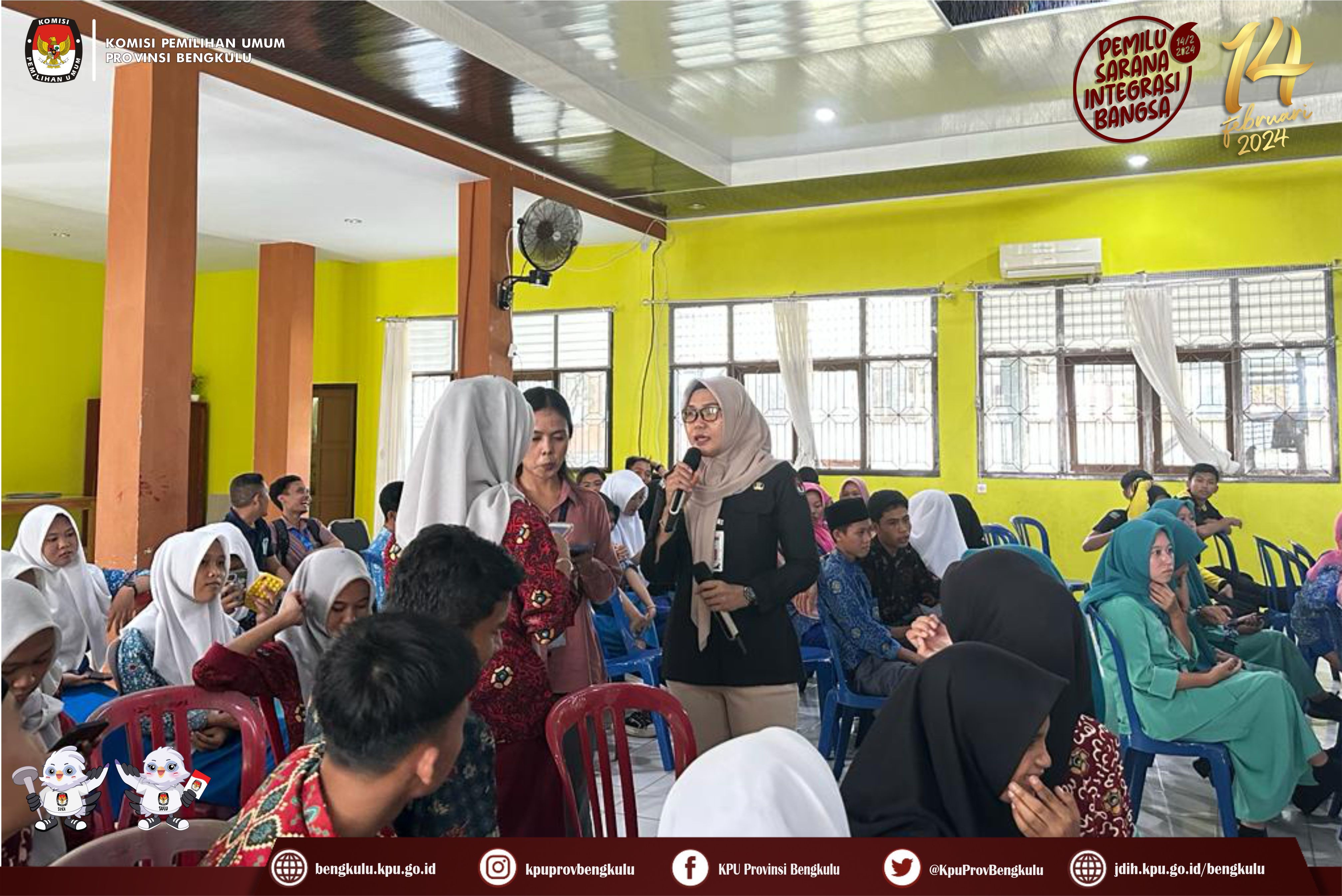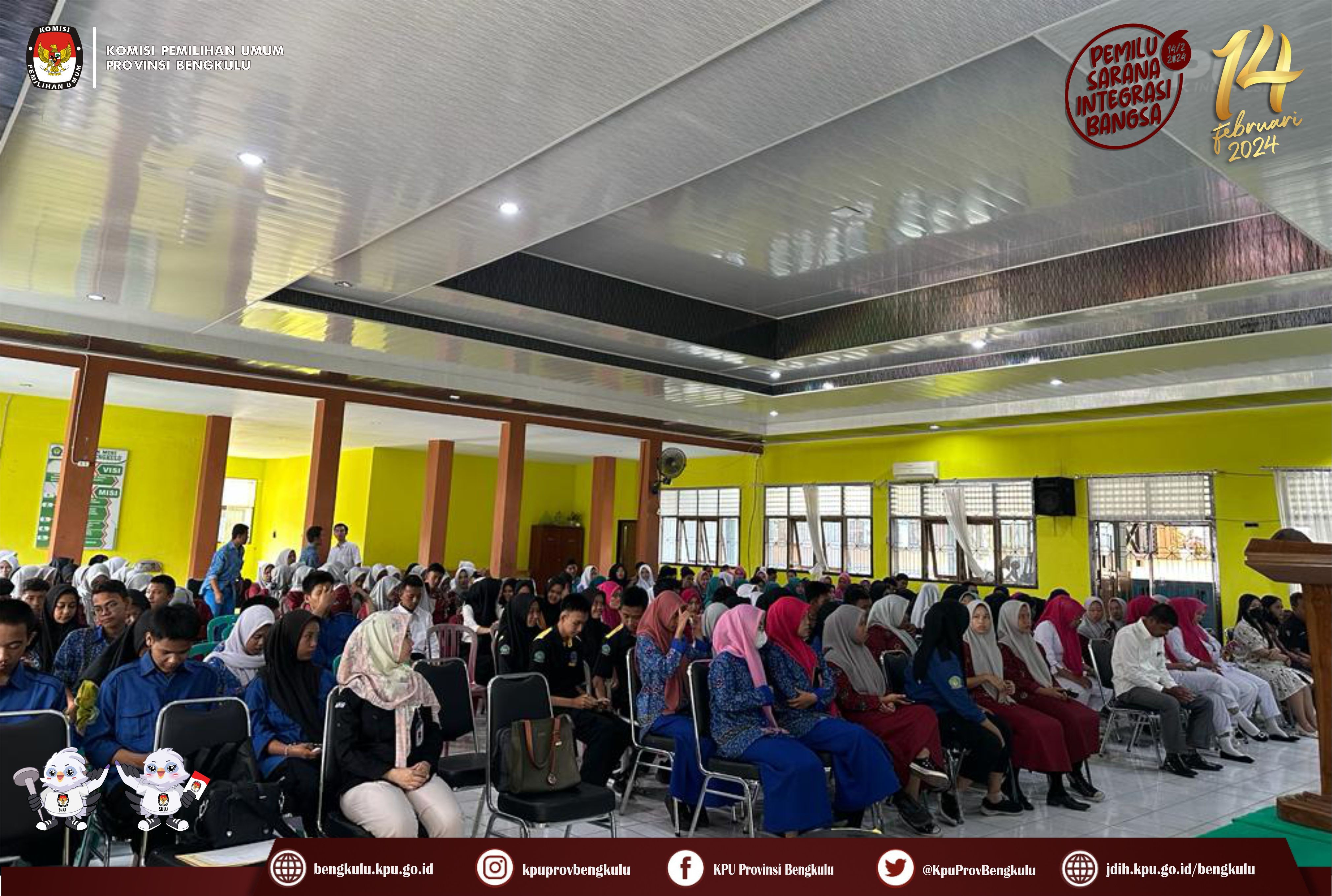 KPU Provinsi Bengkulu hadir sebagai Narasumber Roadshow Sosialisasi Pemilu Serentak Tahun 2024 di SMKN 3 Kota Bengkulu