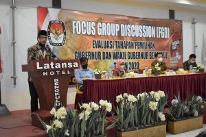 Acara yang dibuka langsung oleh Ketua KPU Provinsi Bengkulu Irwan Saputra didampingi Anggota Siti Baroroh dan Emex Verzoni serta Sekretaris Kemas M Ajir bersam Tim Evaluasi yang berasal dari akademisi Perguruan Tinggi di Provinsi Bengkulu. Dalam sambutan dan arahannya Irwan menyampaikan ucapan terima kasih dan apresiasi setinggi-tingginya kepada seluruh penyelenggara badan adhoc yang merupakan garda terdepan dalam menyukseskan pemilihan serentak tahun 2020 di Provinsi Bengkulu. Ditambahkan Irwan bahwa kegiatan FGD ini dalam rangka untuk mendapatkan masukan dan saran dalam tahapan akhir, yaitu evaluasi dan pelaporan pada setiap pemilu/pemilihan. Untuk itu dengan adanya FGD ini diharapkan mendapatkan penyelenggara adhoc dapat memberikan catatan. Jika catatan tersebut positif maka perlu kita jaga dan tingkat, namun jika catatan tersebut negatif maka akan menjadi masukan untuk perbaikan pemilu/pemilihan di masa yang akan datang. Tentunya banyak hal yang teknis dan dinamika yang terjadi dalam penyelenggaraan pemilihan serentak tahun 2020 apakah itu regulasi atau hal teknis berkenaan dengan pelaksanaan pemilihan ditengah pandemi covid-19, untuk itu KPU memberikan ruang seluas-luasnya kepada penyelenggara adhoc apa yang dirasakan selama tahapan pemilihan Tahun 2020 sedang berlangsung.