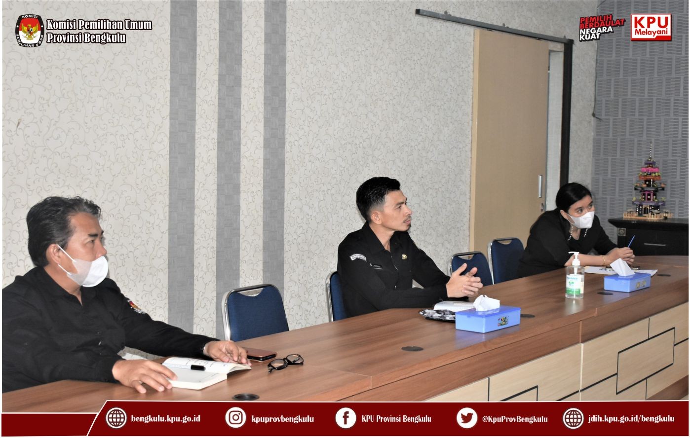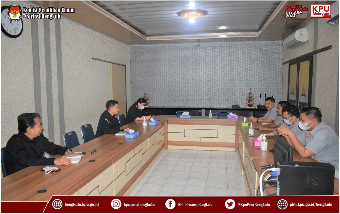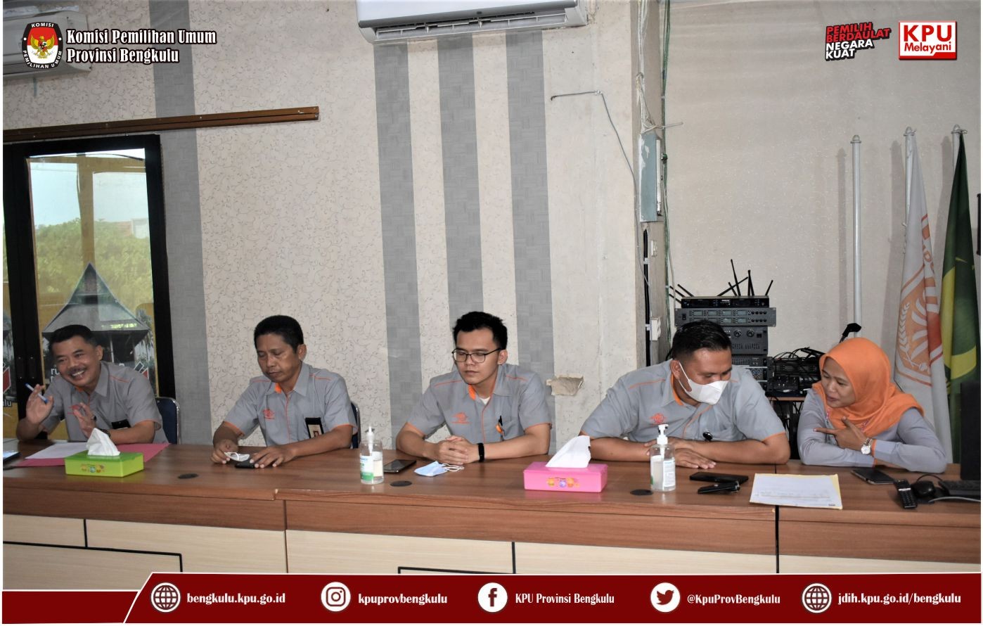 Bengkulu-bengkulu.kpu.go.id, Sekretaris KPU Provinsi Bengkulu Kemas M Ajir didampingi Kabag Keuangan Umum dan Logistik Sudirman serta Kasubbag Umum dan Logistik Angky Galaty menerima Kunjungan Kerja EGM PT. Pos Bengkulu Rodi Herawan dan jajarannya bertempat di Ruang Audio Visual Rumah Pintar Pemilu pada Rabu (6/4).