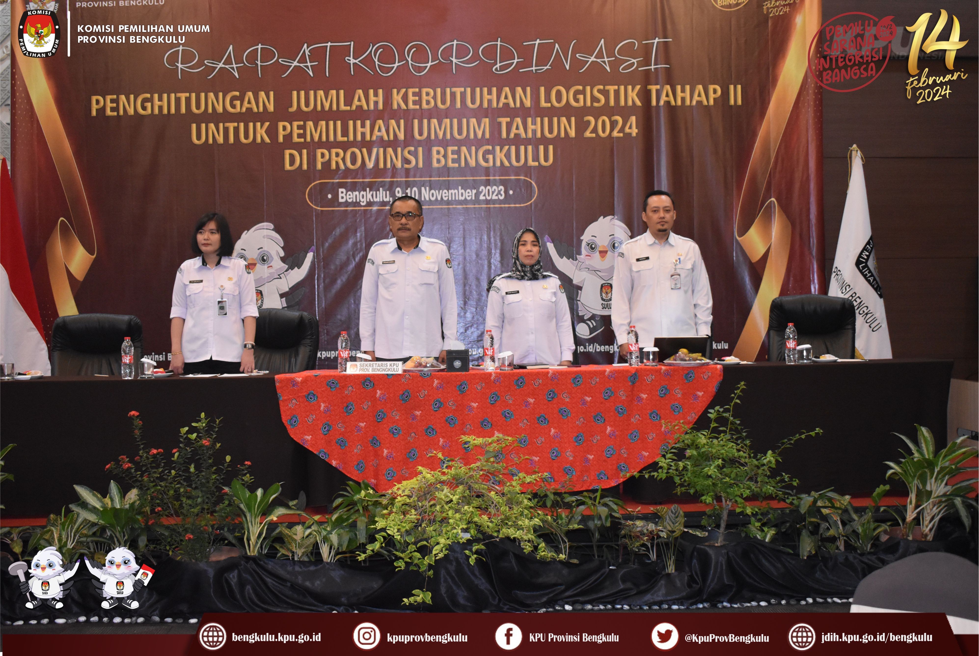 KPU Provinsi Bengkulu menggelar Rapat Koordinasi Penghitungan Jumlah Kebutuhan Logistik Tahap II Untuk Pemilihan Umum Tahun 2024 di Provinsi Bengkulu