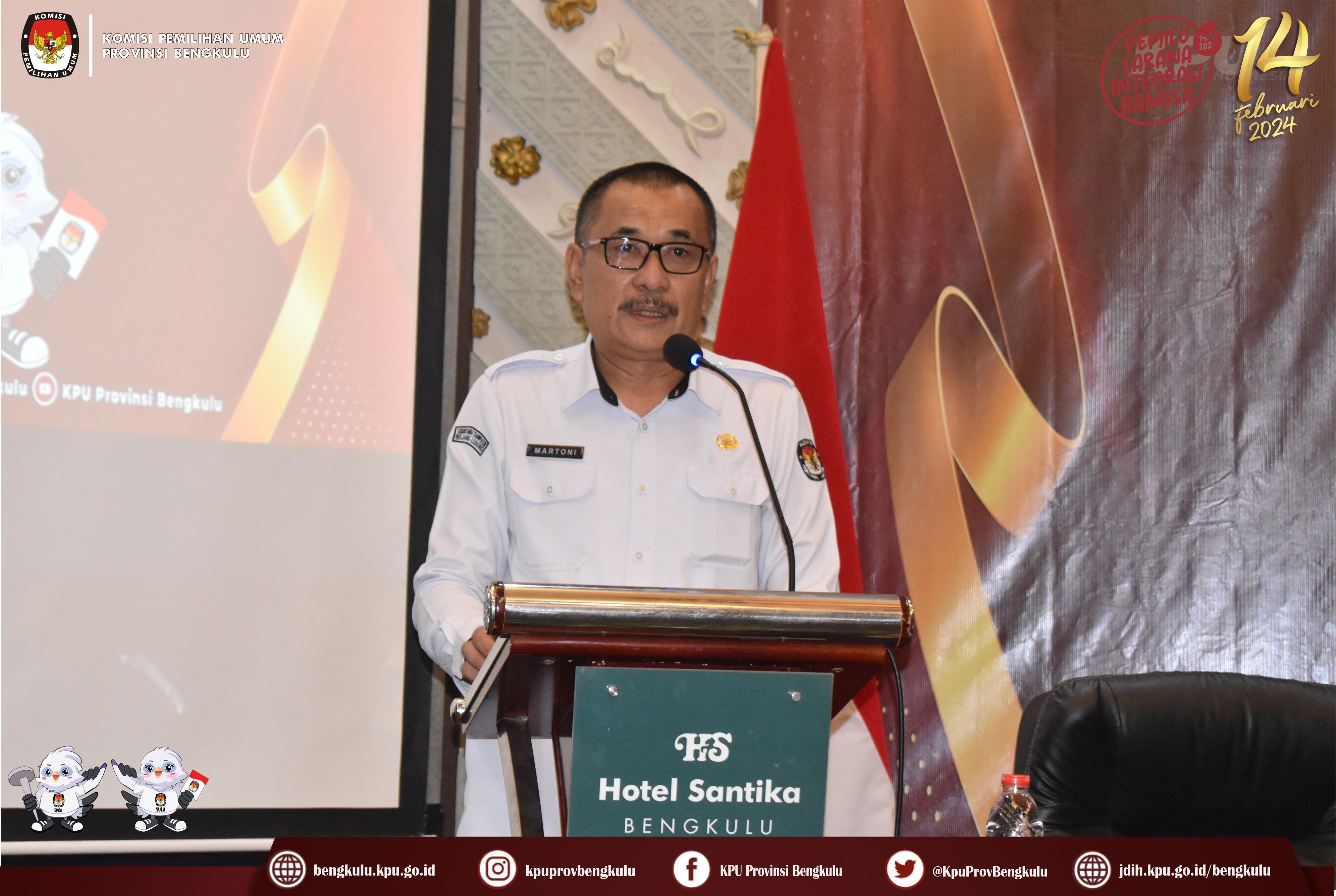 Bengkulu, bengkulu.kpu.go.id - KPU Provinsi Bengkulu menggelar Rapat Koordinasi Penghitungan Jumlah Kebutuhan Logistik Tahap II Untuk Pemilihan Umum Tahun 2024 di Provinsi Bengkulu pada Kamis (9/11/2023) di Hotel Santika Bengkulu. Peserta Rapat koordinasi terdiri dari Sekretaris, Kasubbag Keuangan Umum dan Logistik, Pejabat Pembuat Komitmen, Pejabat Pengadaan, Operator Silog dan Bendahara Pengeluaran KPU Kabupaten/Kota se-Provinsi Bengkulu. Acara dibuka yang dibuka oleh Plh. Sekretaris KPU Provinsi Bengkulu Martoni, hadir juga Kabag Keuangan Umum dan Logistik Sudirman, Penata Kelola Pemilu Ahli Madya Yeni Rahayu, Kasubbag Umum dan Logistik Angky Galaty, serta Kasubbag Keuangan Ronny Novanda. Rangkaian acara dibuka dengan menyanyikan Lagu Kebangsaan Indonesia Raya dan Jingle Pemilu, dan Doa. Setelah dibuka dilanjutkan dengan Penghitungan Jumlah Kebutuhan Logistik Tahap II Untuk Pemilihan Umum Tahun 2024 yang dikoordinir oleh Kasubbag Umum dan Logistik Angky Galaty dan Operator Silog Jasmen Fantoni.