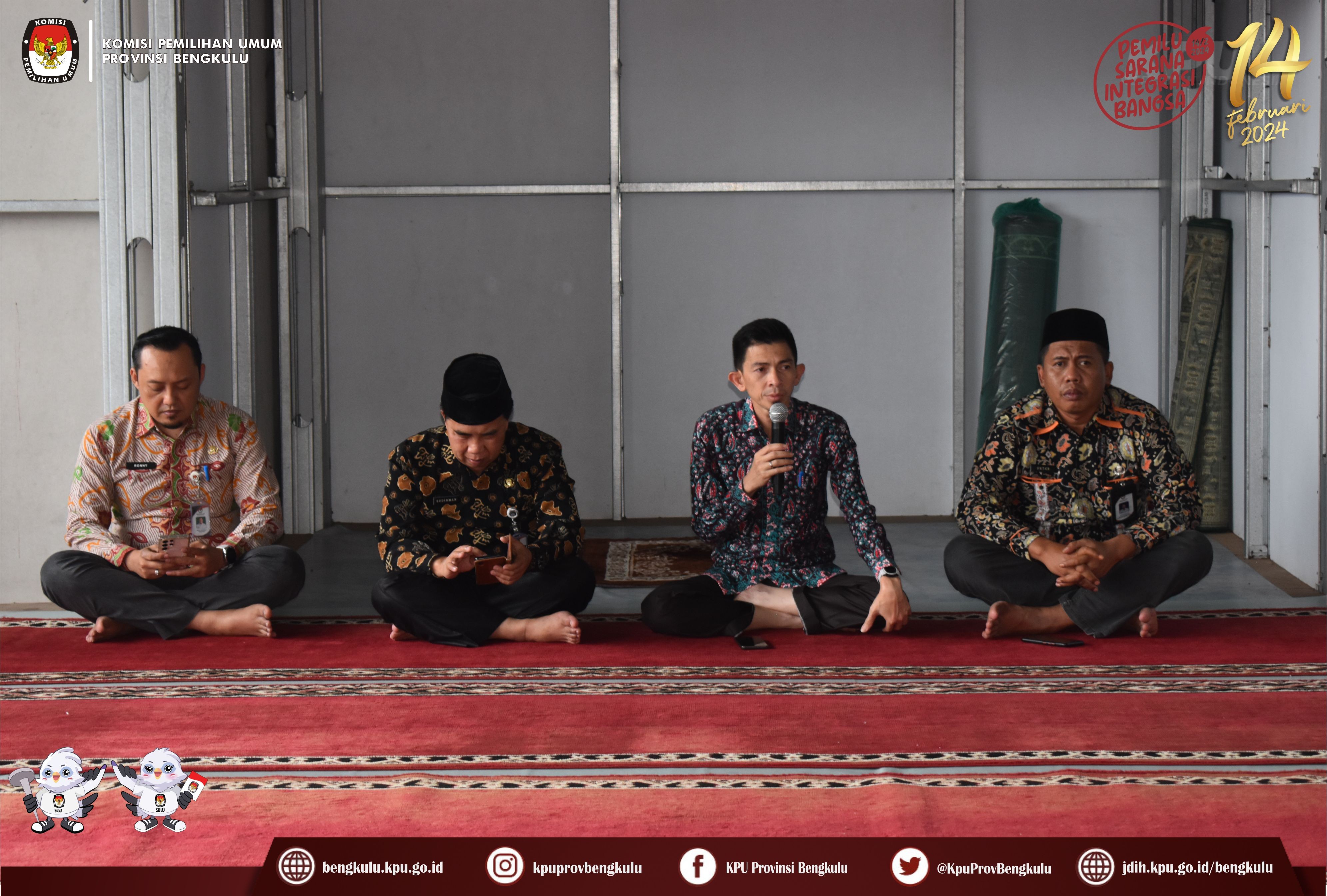 Bengkulu, bengkulu.kpu.go.id - Menindaklanjuti Surat Sekretaris Jenderal KPU Republik Indonesia Nomor 11/SDM.07.4-SD/03/2024, pada Jum'at (5/1/2024) KPU Provinsi Bengkulu menggelar Santunan dan Doa Bersama Anak Yatim Piatu bertempat di Musholla KPU Provinsi Bengkulu. Hadir dalam santunan dan doa bersama ini adalah anak-anak Panti Asuhan Bintang Terampil. Acara dibuka dengan sambutan Sekretaris KPU Provinsi Bengkulu Kemas Mohammad Ajir didampingi Kabag KUL Sudirman, Kabag TPHS Oktan Huzaeiry dan Kasubbag di Lingkungan Sekretariat KPU Provinsi Bengkulu. Dalam sambutannya Kemas menyampaikan bahwa kegiatan santunan dan doa bersama merupakan bentuk kepedulian KPU terhadap generasi bangsa dan mempererat tali silaturahmi serta meningkatkan solidaritas antar sesama. Selain itu, Kemas menambahkan ditengah tahapan pemilu yang semakin dekat dan intensitas kerja KPU semakin meningkat menuju hari Pemungutan Suara pada 14 Februari 2024 tentu saja kita harus bersyukur dan saling berbagi terhadap sesama serta memohon doa agar pelaksanaan Pemilu Tahun 2024 khususnya di Provinsi Bengkulu berjalan aman dan lancar. Sementara itu, Pengurus Panti Asuhan Bintang Terampil Darlena Wati menyampaikan apresiasi dan ucapan terima kasih kepada KPU Provinsi Bengkulu atas santunan yang diberikan kepada anak-anak dan mendoakan semoga KPU sukses dalam menyelenggarakan pemilu.