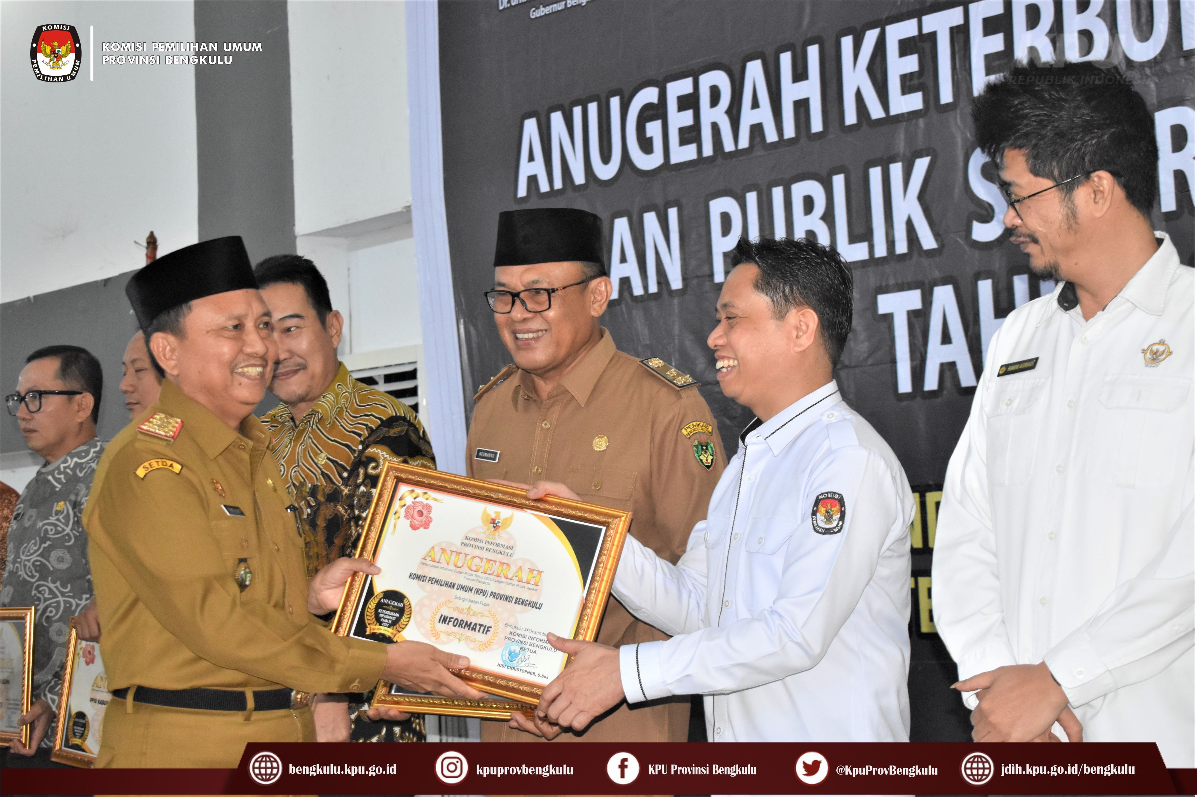 Bengkulu-bengkulu.kpu.go.id, Ketua KPU Provinsi Bengkulu Irwan Saputra bersama Anggota KPU Provinsi Bengkulu Emex Verzoni menghadiri Anugerah Keterbukaan Informasi Badan Publik Tahun 2022 sekaligus menerima penghargaan sebagai Kategori Badan Publik Vertikal Provinsi Bengkulu yang Informatif di Gedung Daerah Provinsi Bengkulu, Senin (26/12). Penghargaan yang diserahkan oleh Sekretaris Daerah Provinsi Bengkulu Hamka Sabri itu diterima langsung Ketua KPU Provinsi Bengkulu Irwan Saputra. Hadir dalam kegiatan anugerah tersebut unsur Forkopimda Provinsi Bengkulu dan media massa. Irwan menyampaikan ini merupakan prestasi yang diperoleh KPU Provinsi Bengkulu untuk kedua kalinya setelah Tahun 2021 mendapatkan penghargaan yang sama. Penghargaan ini didapat berkat kerja keras dan upaya KPU Provinsi Bengkulu dalam memberikan informasi publik secara terbuka kepada publik. Ketua KPU Provinsi Bengkulu Irwan Saputra bersama Anggota KPU Provinsi Bengkulu Emex Verzoni menghadiri Anugerah Keterbukaan Informasi Badan Publik Tahun 2022 sekaligus menerima penghargaan sebagai Kategori Badan Publik Vertikal Provinsi Bengkulu yang Informatif di Gedung Daerah Provinsi Bengkulu, Senin (26/12). Penghargaan yang diserahkan oleh Sekretaris Daerah Provinsi Bengkulu Hamka Sabri itu diterima langsung Ketua KPU Provinsi Bengkulu Irwan Saputra. Hadir dalam kegiatan anugerah tersebut unsur Forkopimda Provinsi Bengkulu dan media massa. Irwan menyampaikan ini merupakan prestasi yang diperoleh KPU Provinsi Bengkulu untuk kedua kalinya setelah Tahun 2021 mendapatkan penghargaan yang sama. Penghargaan ini didapat berkat kerja keras dan upaya KPU Provinsi Bengkulu dalam memberikan informasi publik secara terbuka kepada publik.