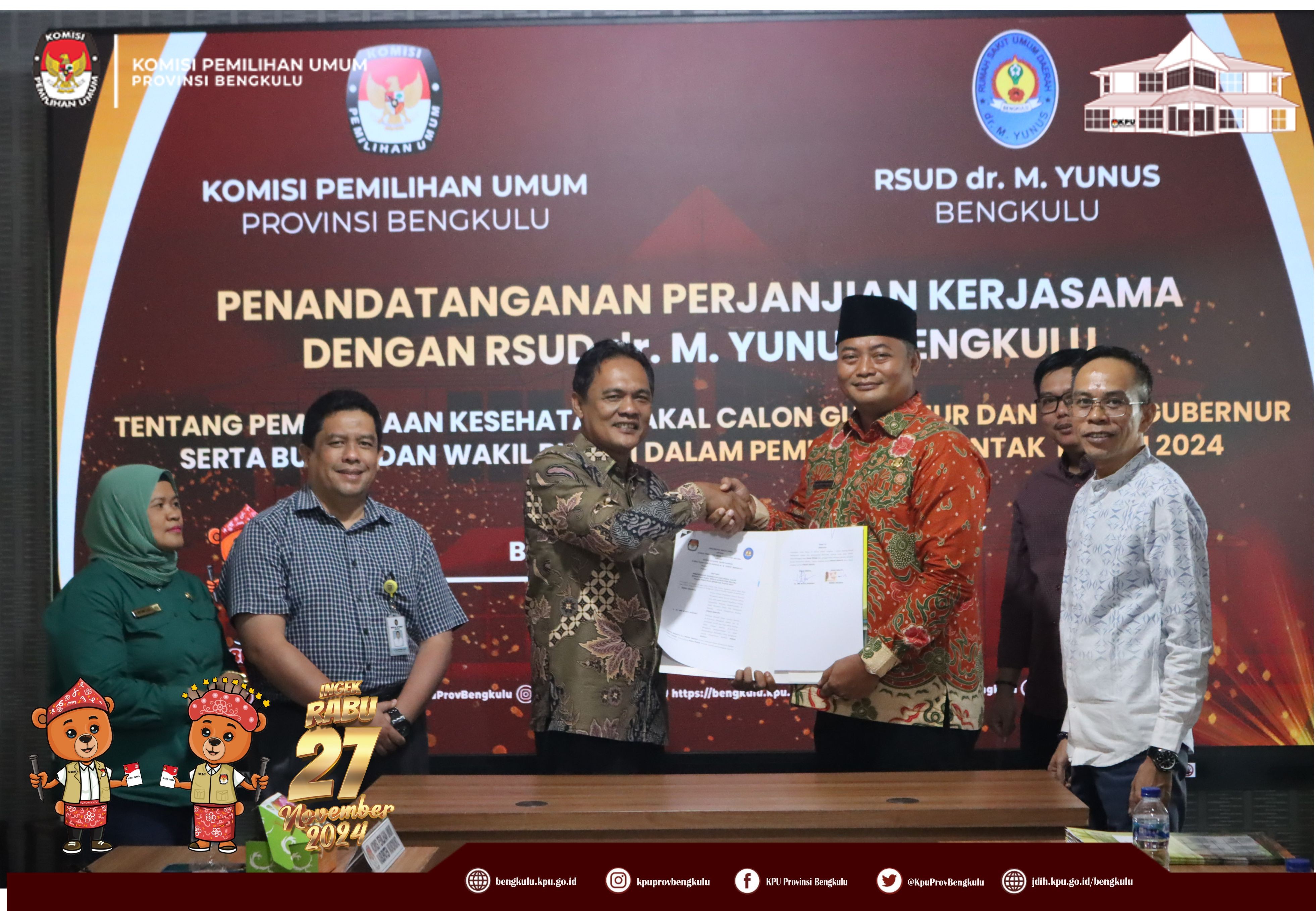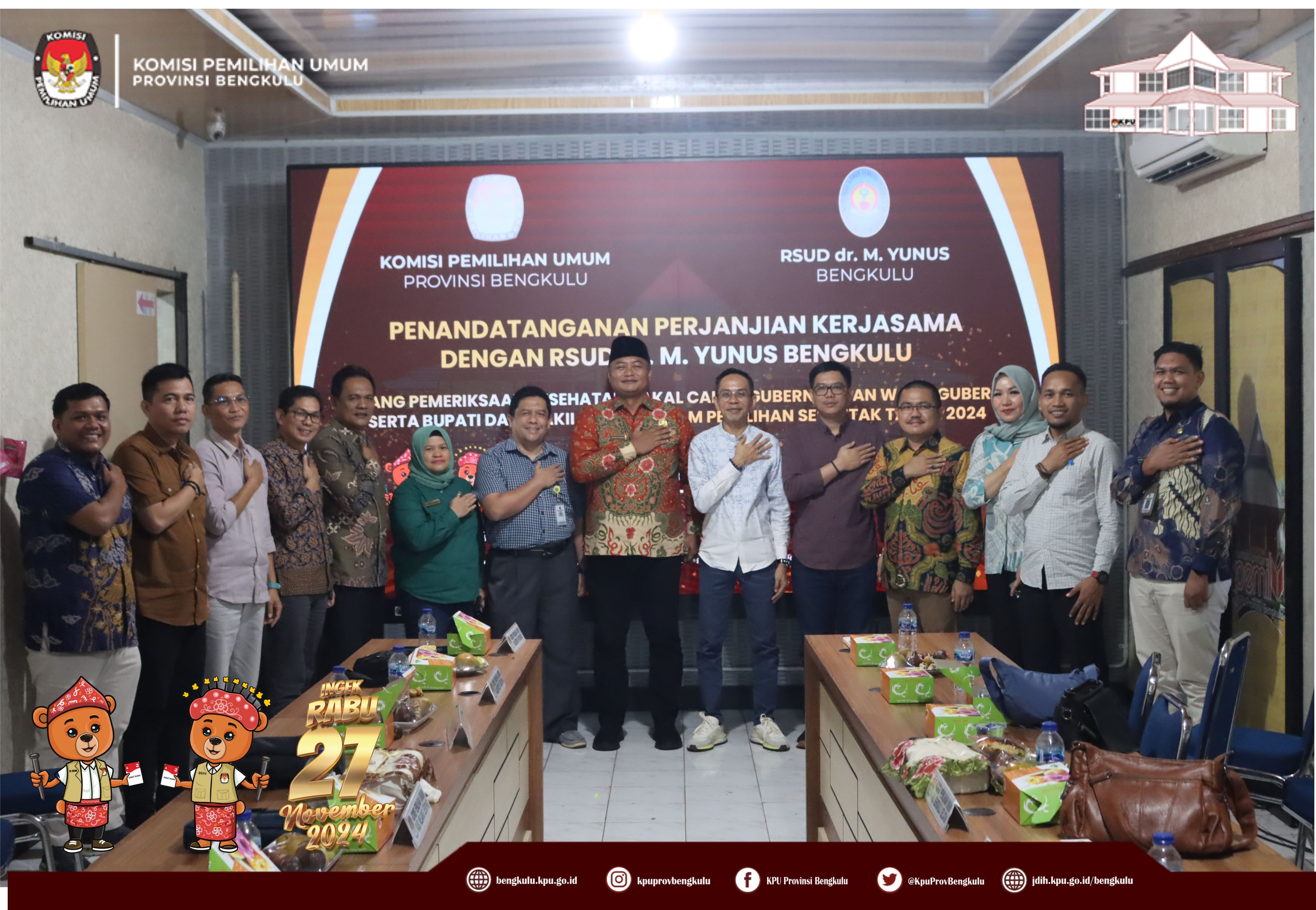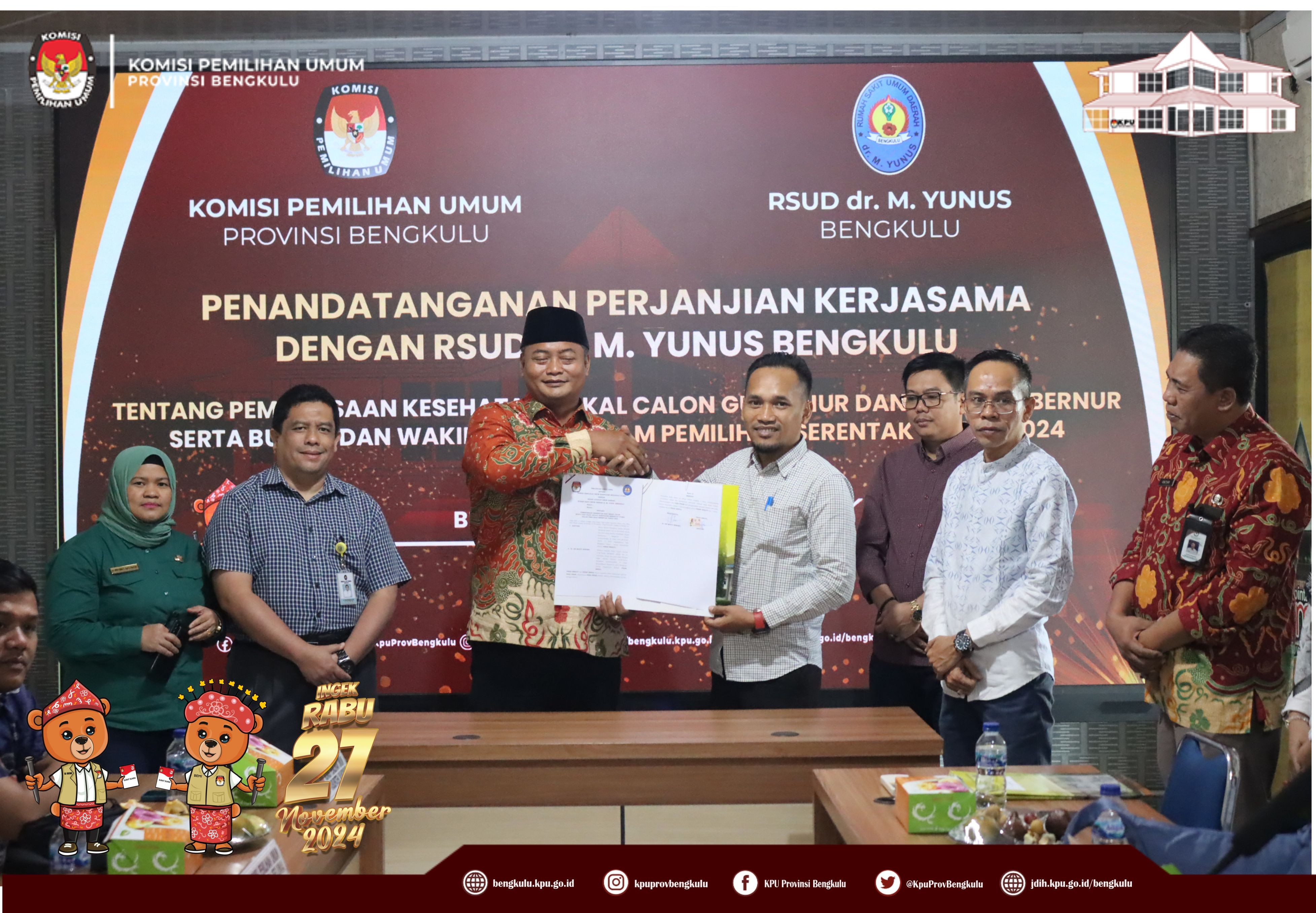 KPU Provinsi dan 9 KPU Kabupaten Melaksanakan Penandatangan Perjanjian Kerjasama dengan RSUD dr. M. Yunus Bengkulu
