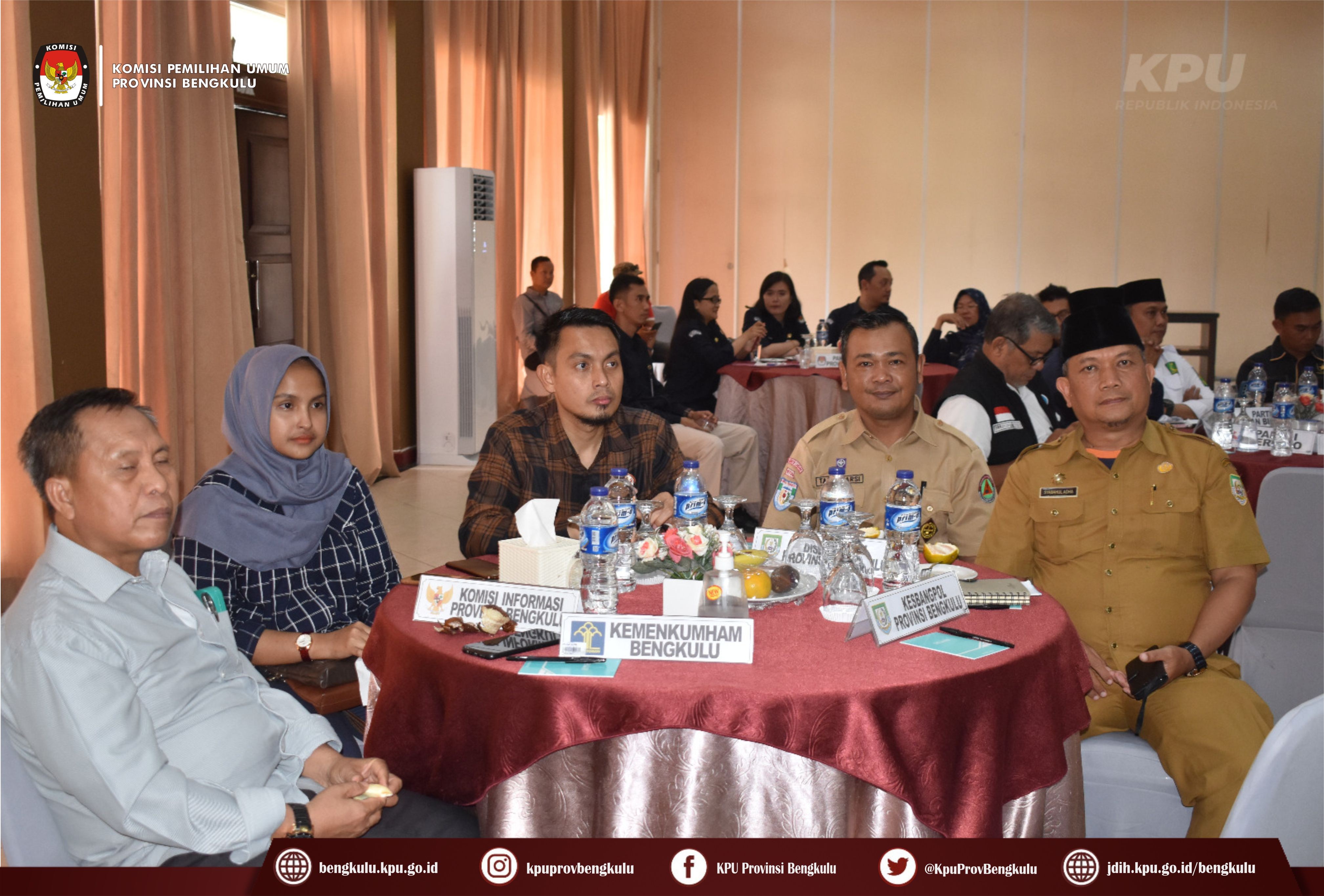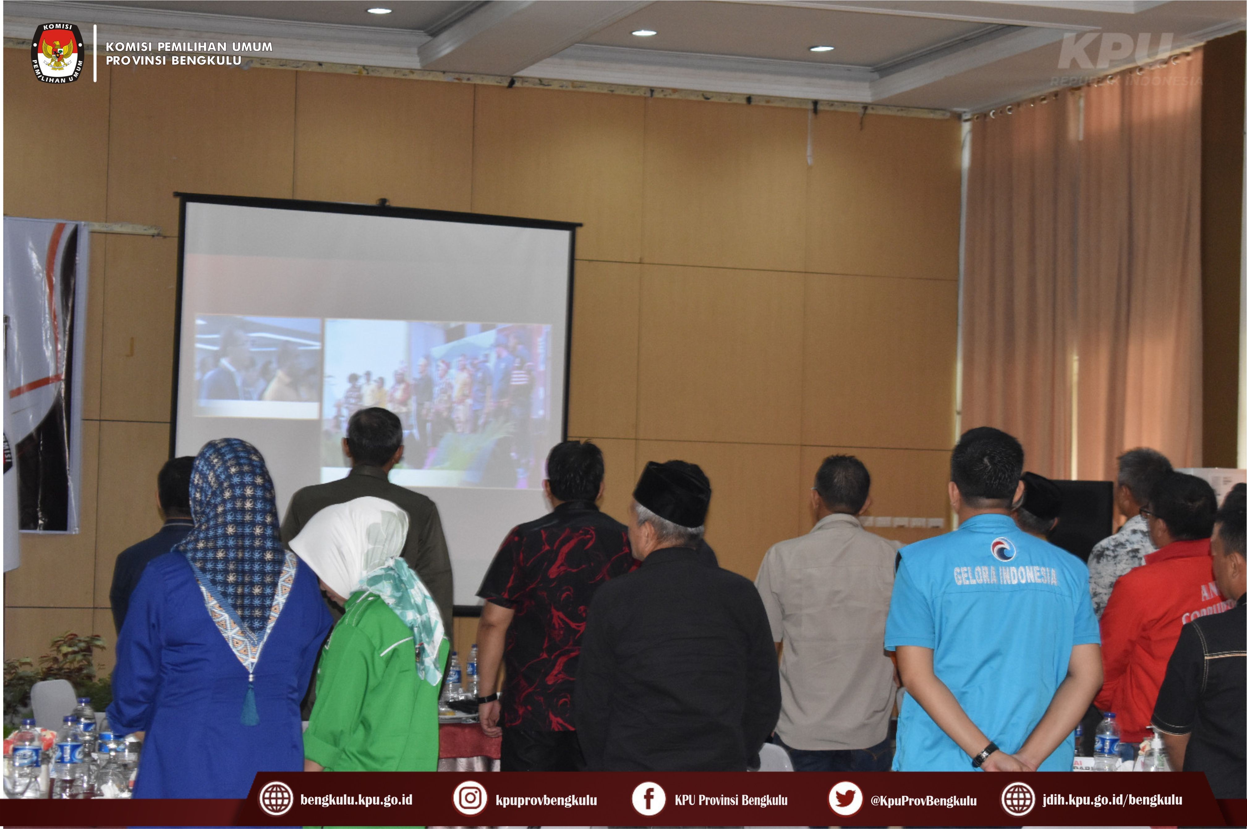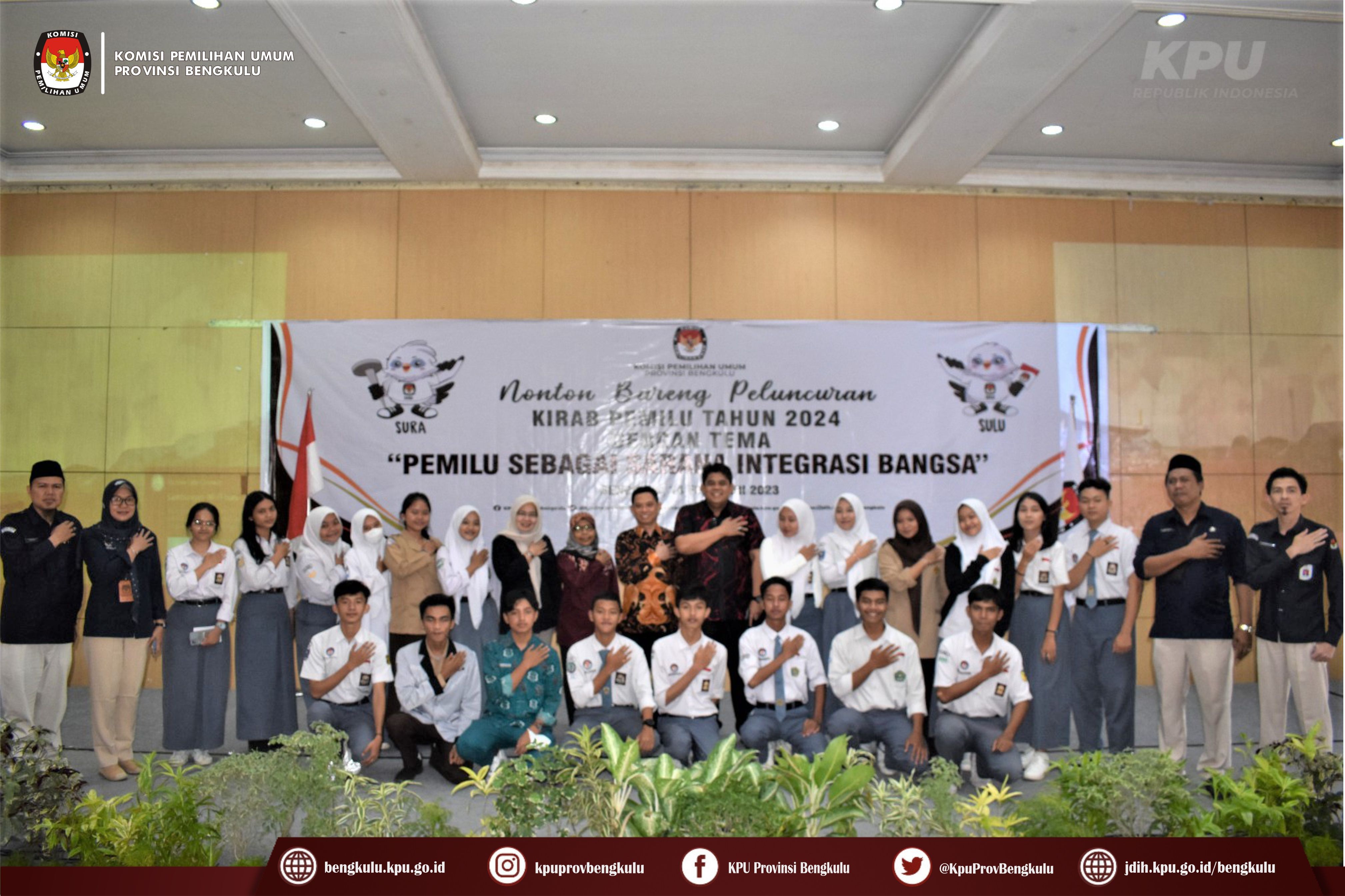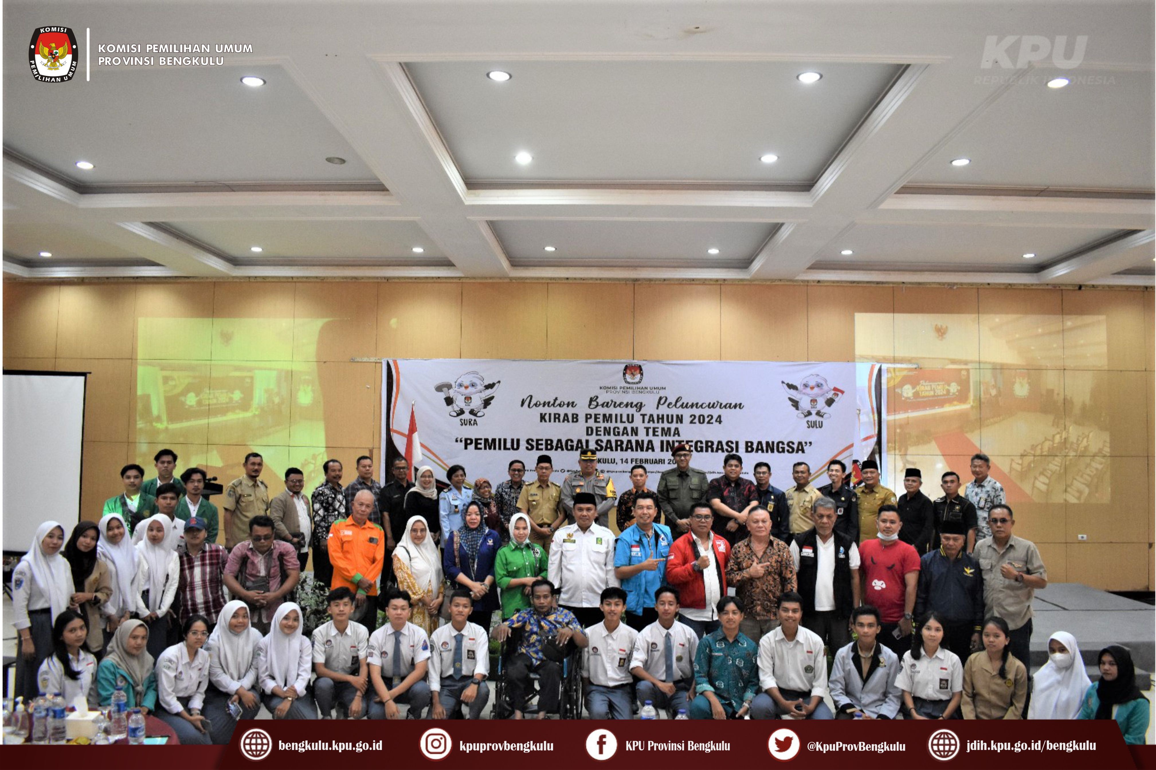 Bengkulu-bengkulu.kpu.go.id, Ketua KPU Provinsi Bengkulu Irwan Saputra bersama Anggota KPU Provinsi Bengkulu Siti Baroroh, Darlinsyah, Emex Verzoni, dan Irna Riza Yuliastuty membuka Acara Nonton Bareng Peluncuran Kirab Pemilu Tahun 2024 dengan tema Pemilu Sebagai Sarana Integrasi Bangsa melalui zoom meeting bertempat di Grage Hotel Bengkulu, Selasa (15/2/2023).