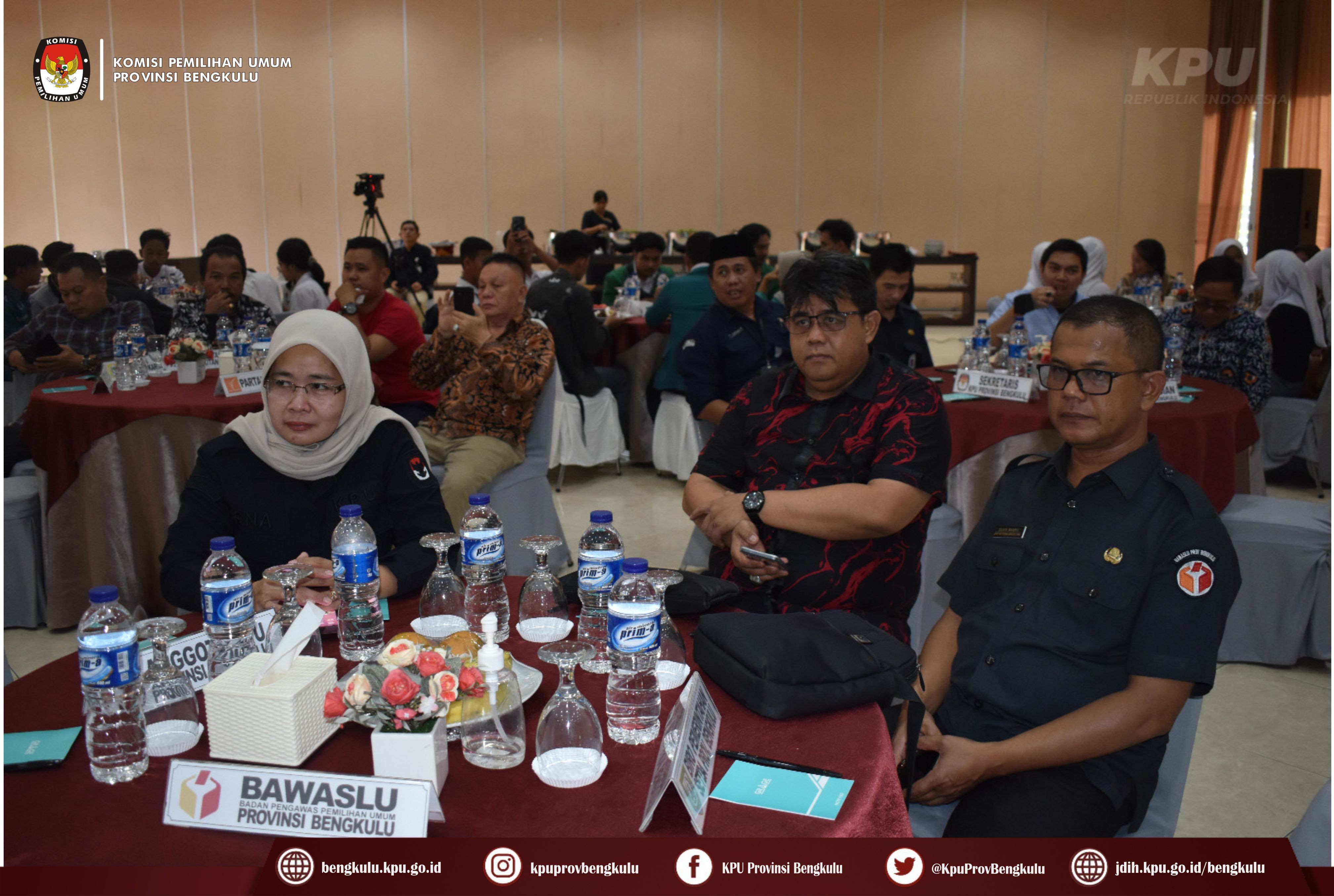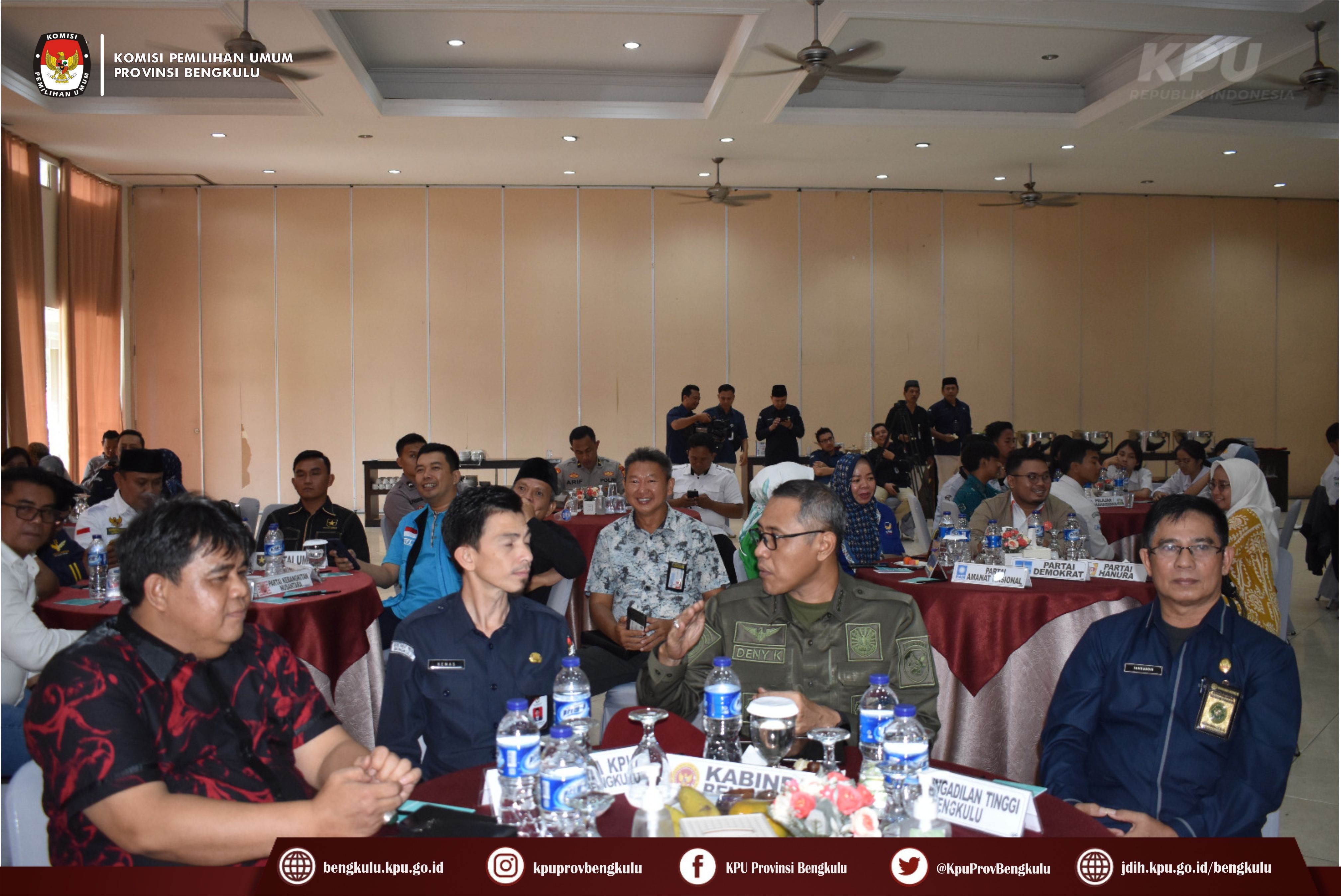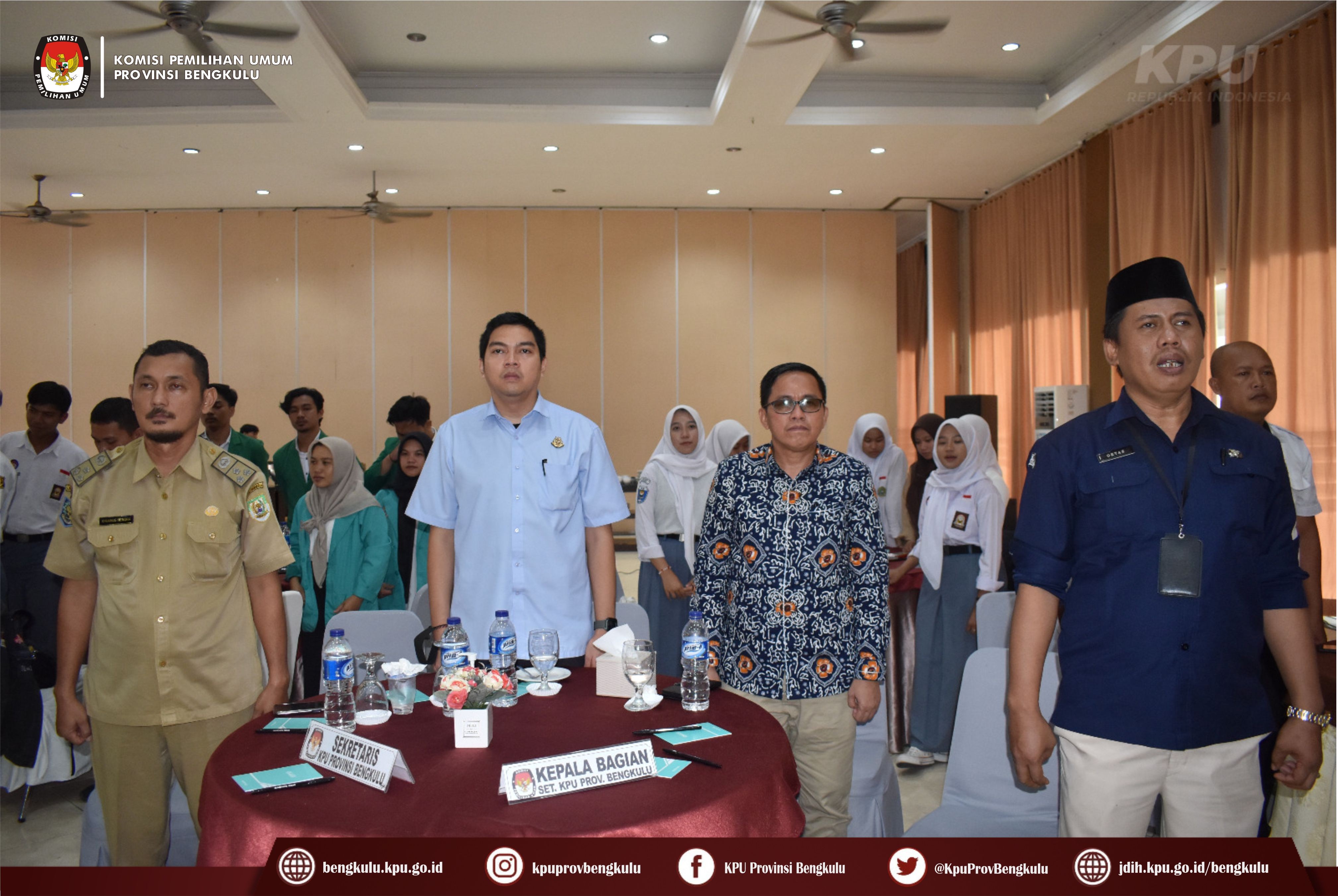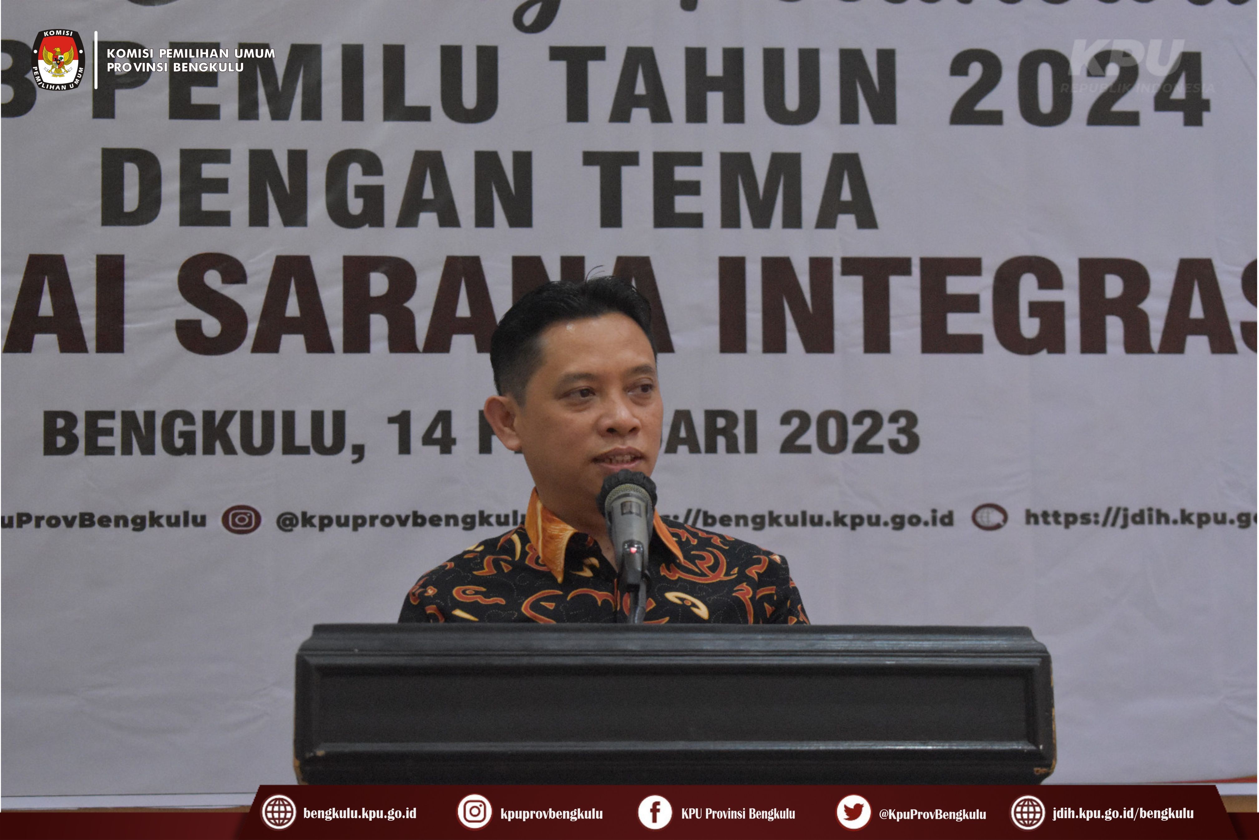Bengkulu-bengkulu.kpu.go.id, Ketua KPU Provinsi Bengkulu Irwan Saputra bersama Anggota KPU Provinsi Bengkulu Siti Baroroh, Darlinsyah, Emex Verzoni, dan Irna Riza Yuliastuty membuka Acara Nonton Bareng Peluncuran Kirab Pemilu Tahun 2024 dengan tema Pemilu Sebagai Sarana Integrasi Bangsa melalui zoom meeting bertempat di Grage Hotel Bengkulu, Selasa (15/2/2023).