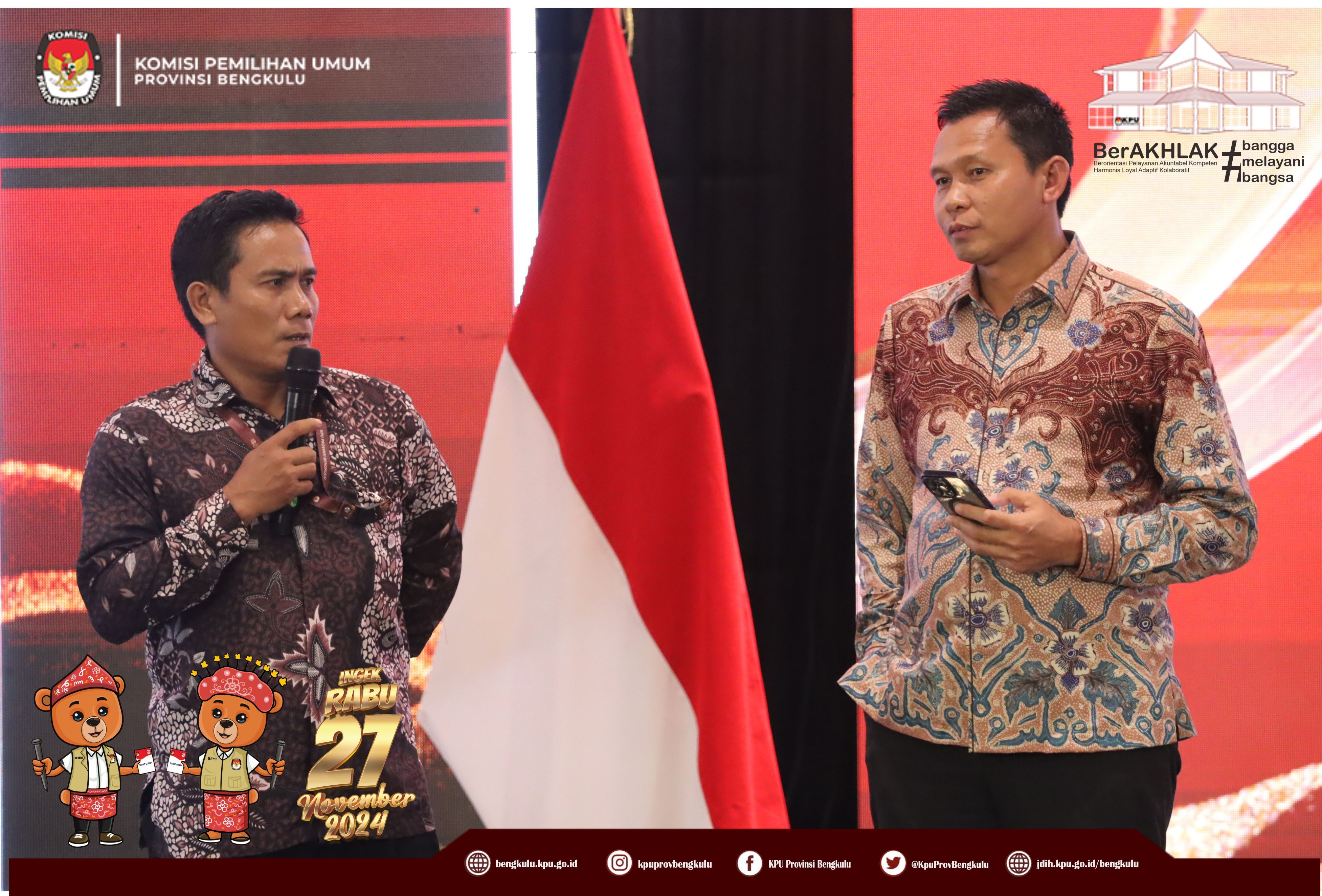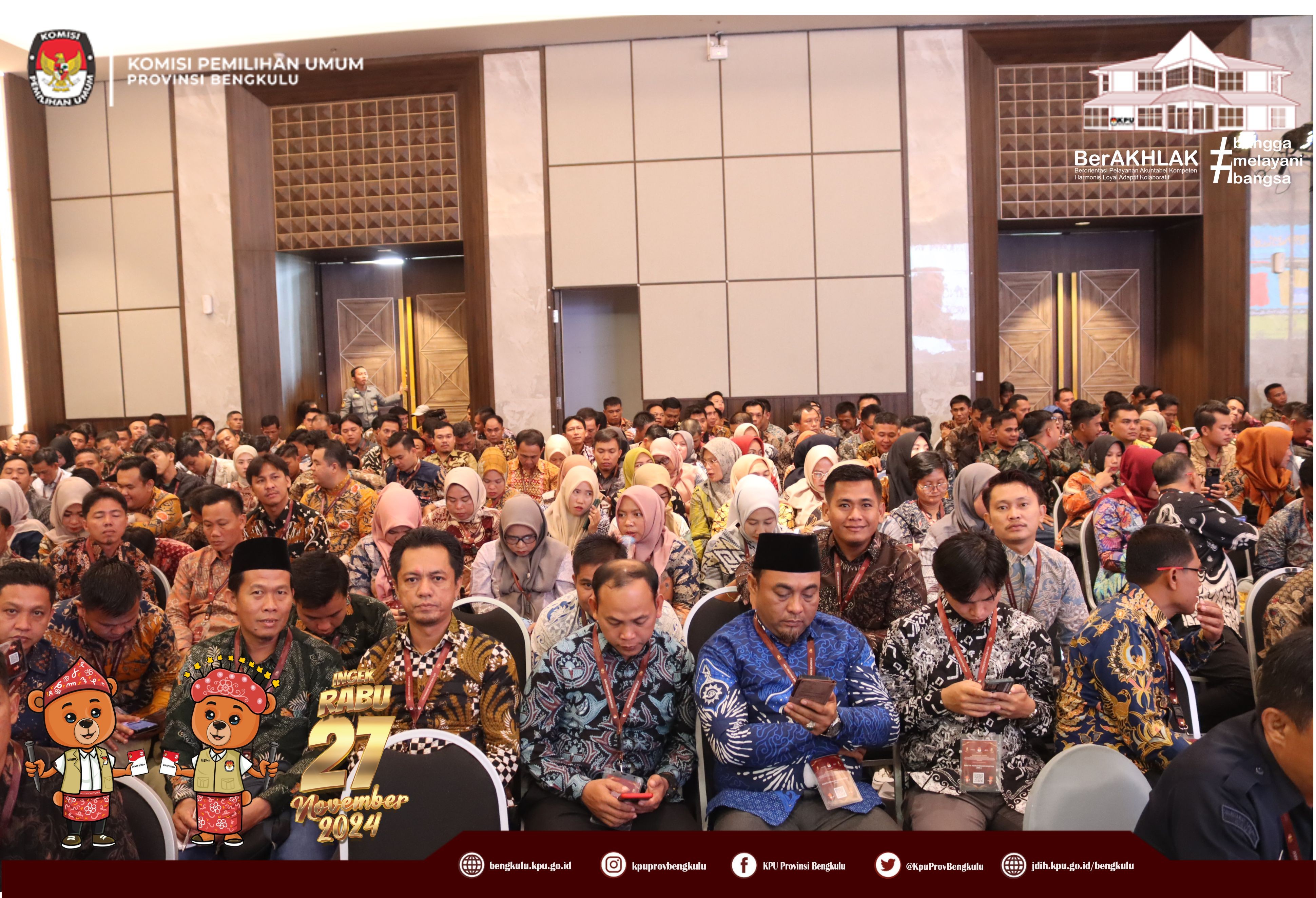Bengkulu, bengkulu.kpu.go.id - Hari Kedua Bimbingan Teknis Pemungutan dan Penghitungan Suara serta Rekapitulasi Hasil Penghitungan Perolehan Suara dan Penetapan Hasil dalam Pemilihan Gubernur dan Wakil Gubernur, Bupati dan Wakil Bupati serta Walikota dan Wakil Walikota Tahun 2024 diisi dengan penyampaian materi oleh Ketua Divisi Teknis Penyelenggaraan KPU Provinsi Bengkulu Bapak Sarjan Efendi yang menyampaikan materi Teknis Persiapan dan Pelaksanaan Pemungutan dan Penghitungan Suara berdasarkan Draft Rancangan PKPU, Tugas Ketua dan Anggota KPPS pada tahapan Pemungutan Suara dan tahapan Penghitugan Suara, Denah TPS, Suara dinyatakan sah dan tidak sah, dan sebagainya sedangkan Ketua Divisi Hukum dan Pengawasan KPU Provinsi Bengkulu Bapak Emex Verzoni yang memaparkan materi mitigasi dan potensi permasalahan sengketa pada tahapan Pemungutan dan Penghitungan Suara dan berharap kepada jajaran KPU Kabupaten/Kota dan PPK mengawal dan memastikan setiap tahapan pungut hitung tidak terjadi permasalahan demi suksesnya Pemilihan Gubernur dan Wakil Gubernur, Bupati dan Wakil Bupati serta Walikota dan Wakil Walikota di Provinsi Bengkulu dan sebagainya. Selain materi juga diisi dengan diskusi tanya jawab.