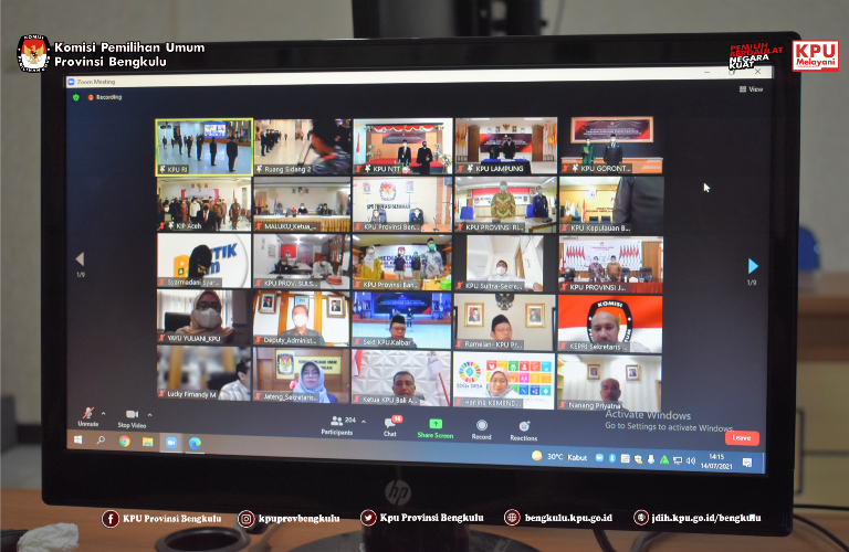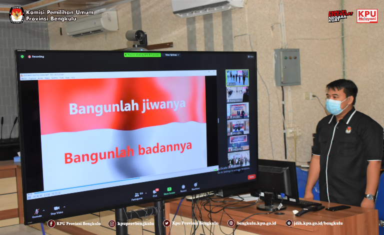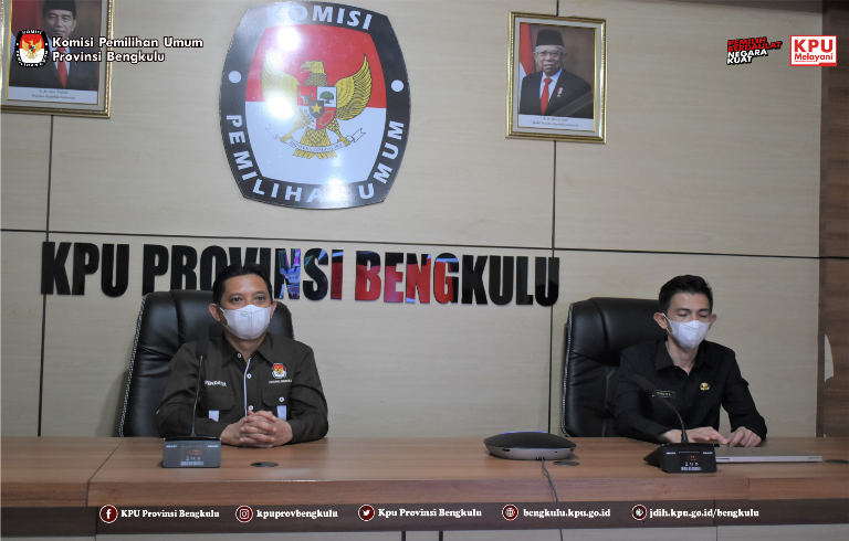 Ketua KPU Provinsi Bengkulu Irwan Saputra dan Sekretaris Kemas M Ajir mengikuti acara Pelantikan dan Pengambilan Sumpah/Janji Pejabat Pimpinan Tinggi Pratama pada Sekretariat Jenderal KPU dan Sekretariat KPU Provinsi secara daring (zoom meeting) pada Rabu (14/7).