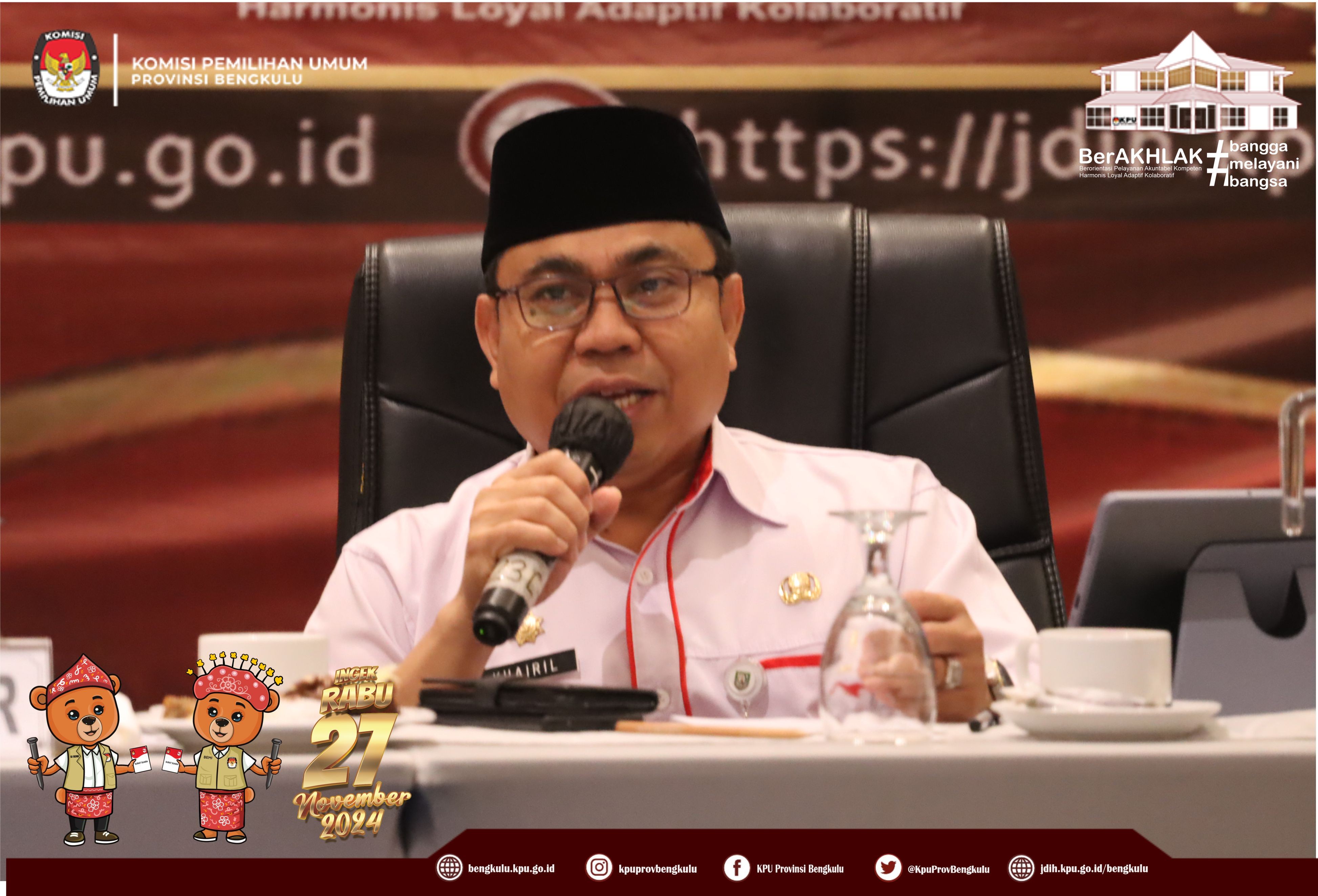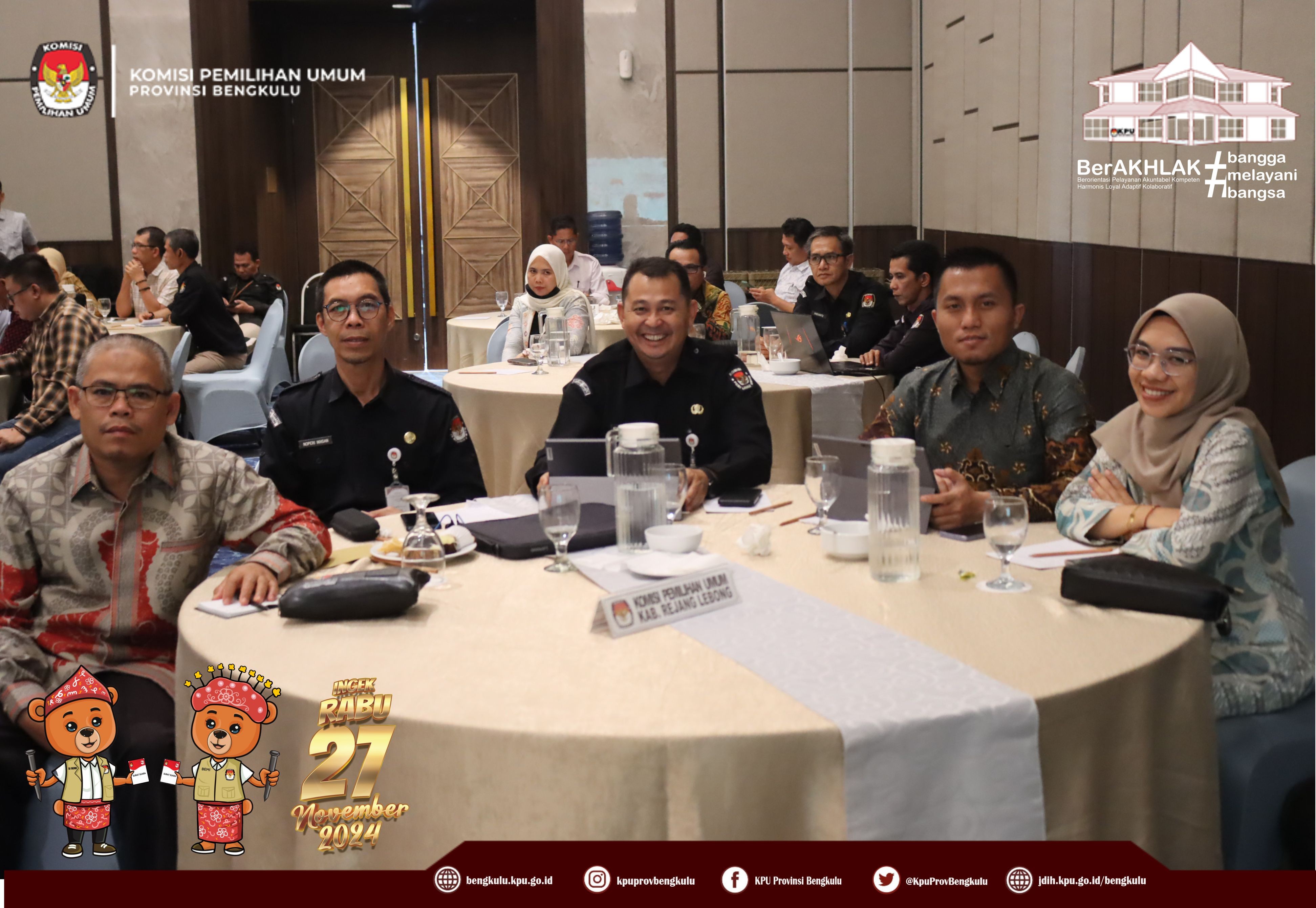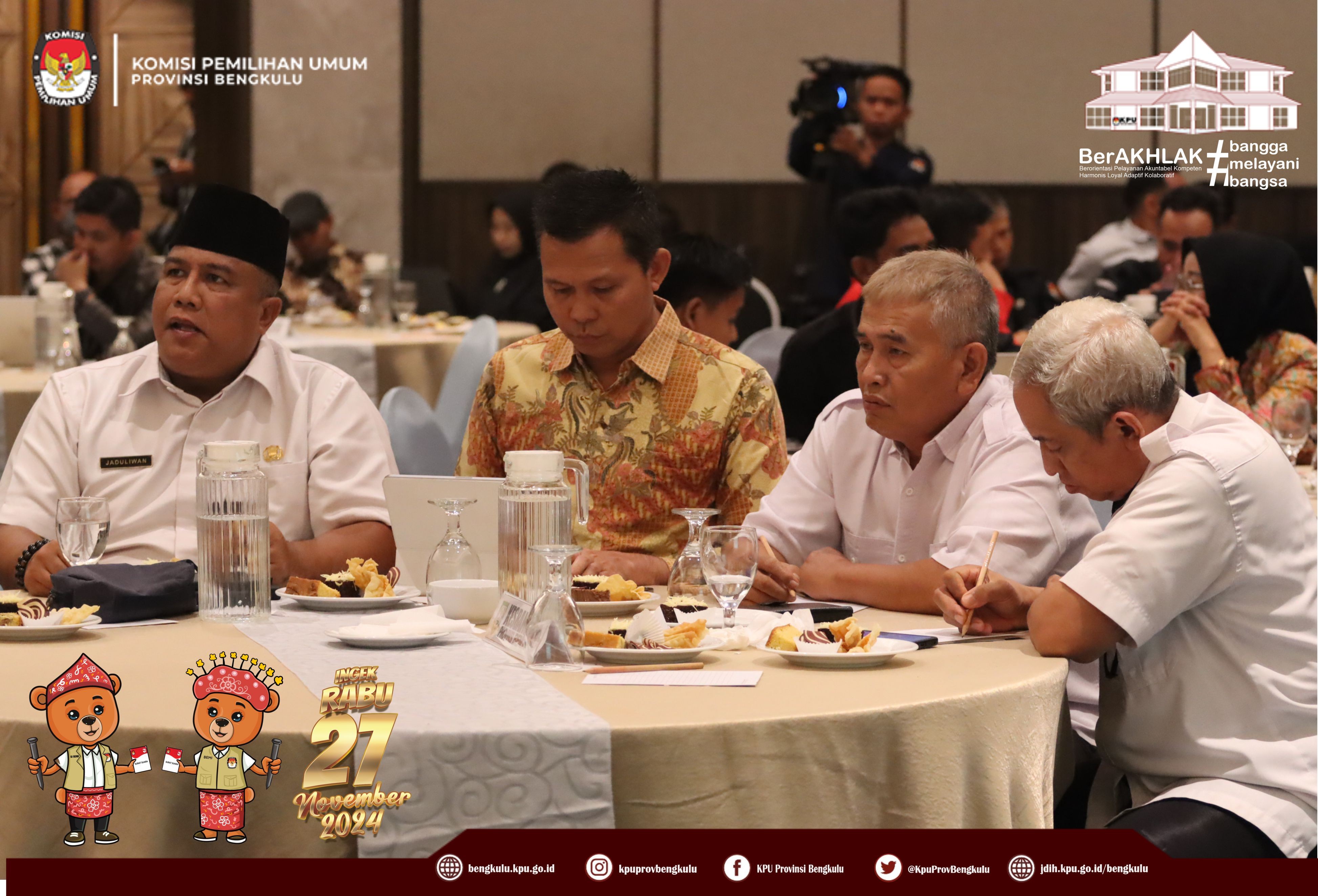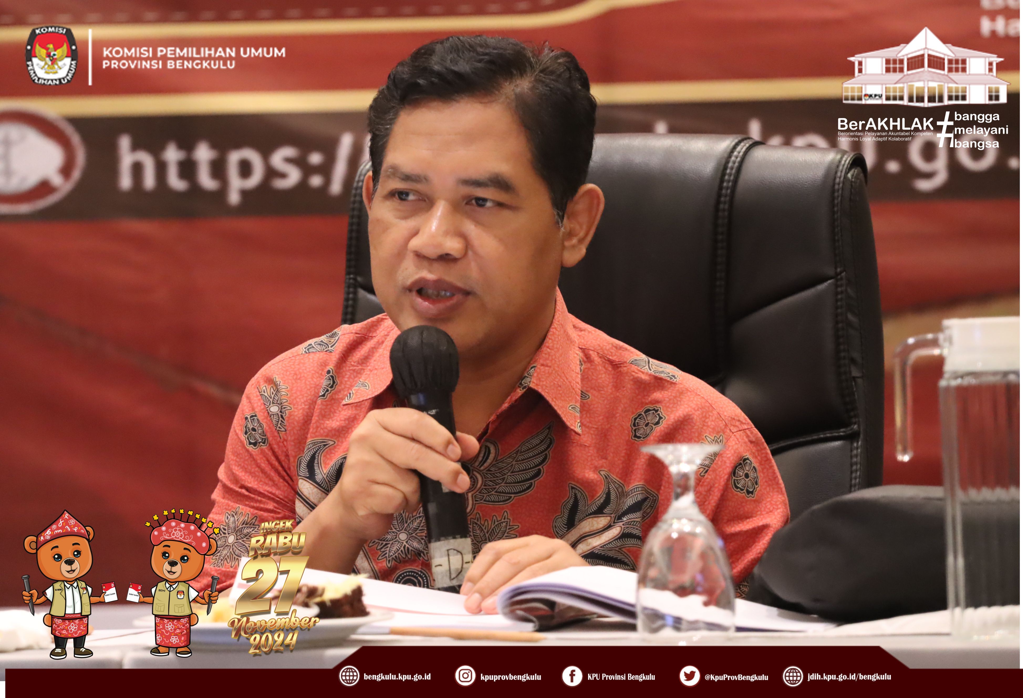 Bengkulu, bengkulu.kpu.go.id - Hari kedua Rabu (18/9/2024) Bimbingan Teknis Pelaksanaan Regulasi Kampanye dan Pelaporan Dana Kampanye untuk mewujudkan Pemilihan Gubernur dan Wakil Gubernur, Bupati dan Wakil Bupati serta Walikota dan Wakil Walikota di Provinsi Bengkulu Tahun 2024 yang Partisipatif, Terbuka, dan Berakuntabilitas Publik dilanjutkan dengan penyampaian materi dari Anggota KPU Provinsi Bengkulu Bapak Dodi Hendra Supiarso yang membahas tentang Kebijakan Kampanye Pemilihan Serentak Tahun 2024, Anggota KPU Provinsi Bengkulu Bapak Sarjan Efendi yang membahas tentang Kebijakan Dana Kampanye Pemilihan Serentak Tahun 2024, Ketua Bawaslu Provinsi Bengkulu Fahamsyah yang membahas tentang Pengawasan Tahapan Kampanye dan Dana Kampanye pada Pemilihan Serentak Tahun 2024, Kasubdit Politik Ditintelkam Polda Bengkulu Bapak AKBP. PM. Amin, S.Ag yang membahas tentang Peran Kepolisian Dalam Pengamanan Kampanye dan Pencegahan Dana Kampanye Illegal dan Asisten Pemerintahan Dan Kesra Setda Provinsi Bengkulu Bapak Drs. Khairil Anwar, M.Si yang membahas tentang Zona dan Lokasi Kampanye Pemilihan Serentak Tahun 2024 di Wilayah Provinsi Bengkulu. Selain materi, ada diskusi tanya jawab.