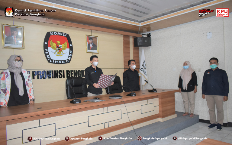 Dalam rangka melaksanakan Surat KPU Nomor 604/SDM.03.5-SD/05/KPU/VI/2021 Perihal Himbauan Pelaksanaan Apel Pagi. Sekretaris KPU Provinsi Bengkulu Kemas M Ajir membacakan naskah Pancasila yang diikuti Kabag, Kasubbag, dan Staf pada Rabu (14/7) yang dilaksanakan secara luring maupun daring. Himbauan membacakan naskah Pancasila iini dilaksanakan pada hari Rabu dan Jum’at di setiap Minggu, Pukul 10.00 pagi waktu setempat dengan menerapkan protokol kesehatan Covid-19. Himbauan guna membakar semangat dan menumbuhkan nasionalisme di lingkungan satuan kerja (satker) masing-masing.