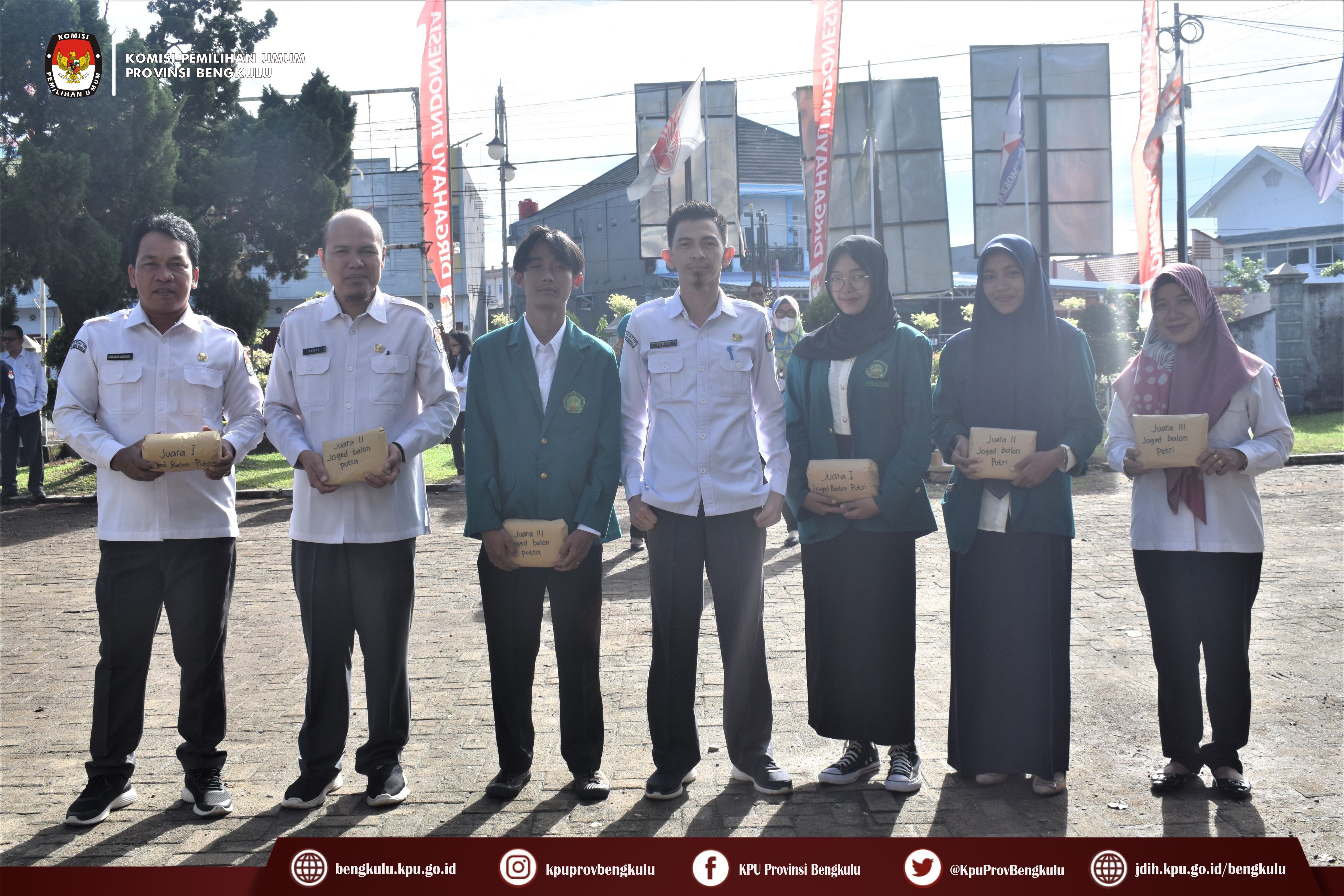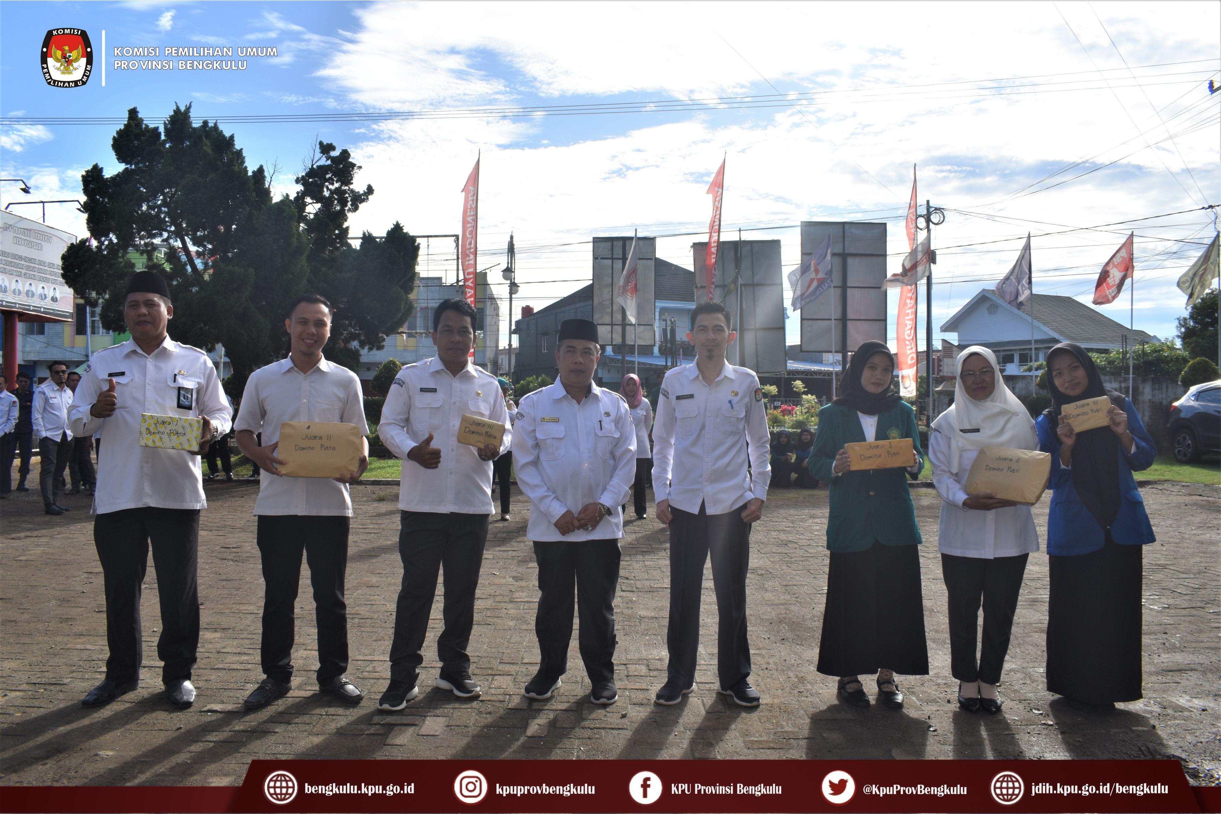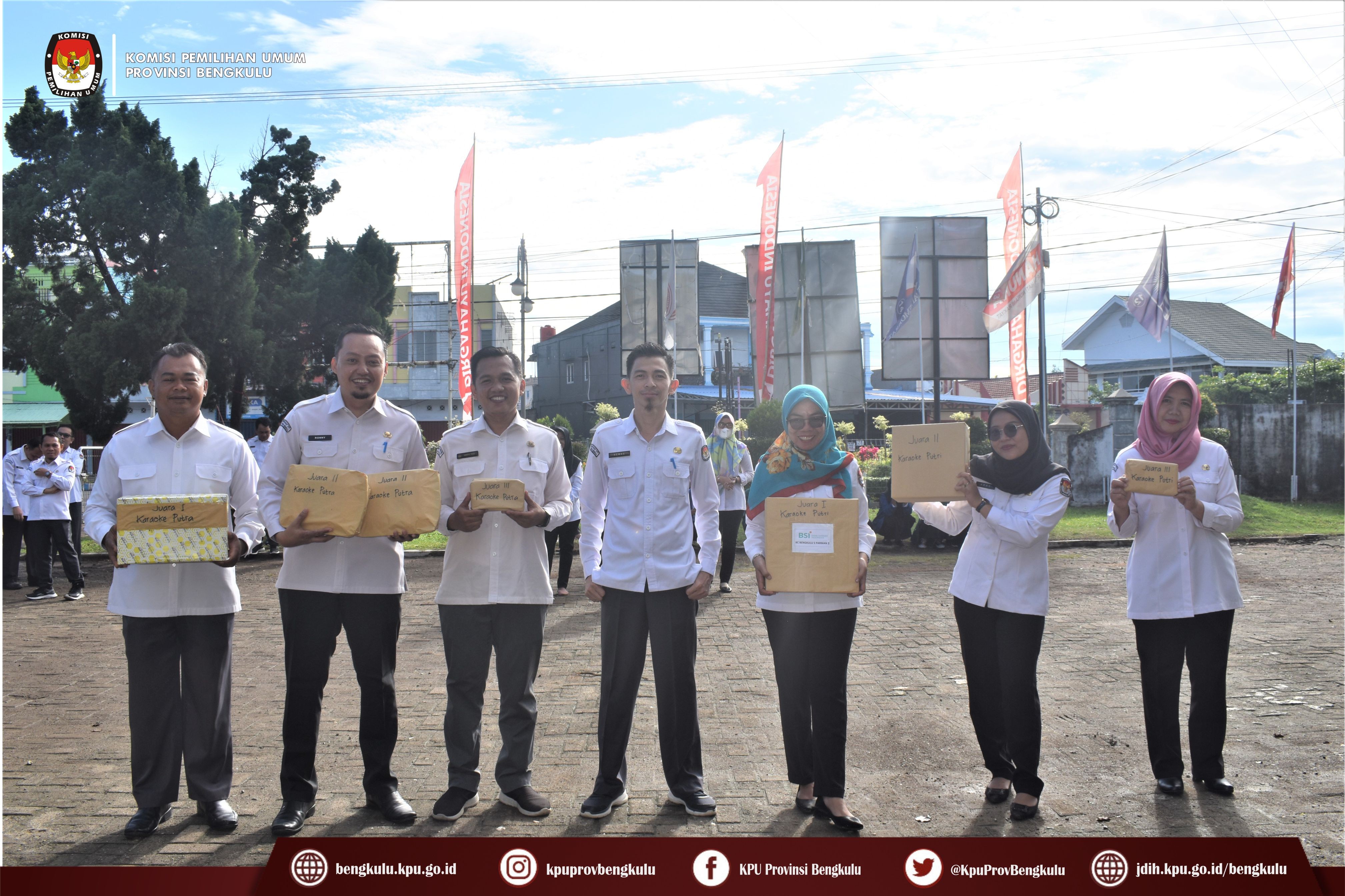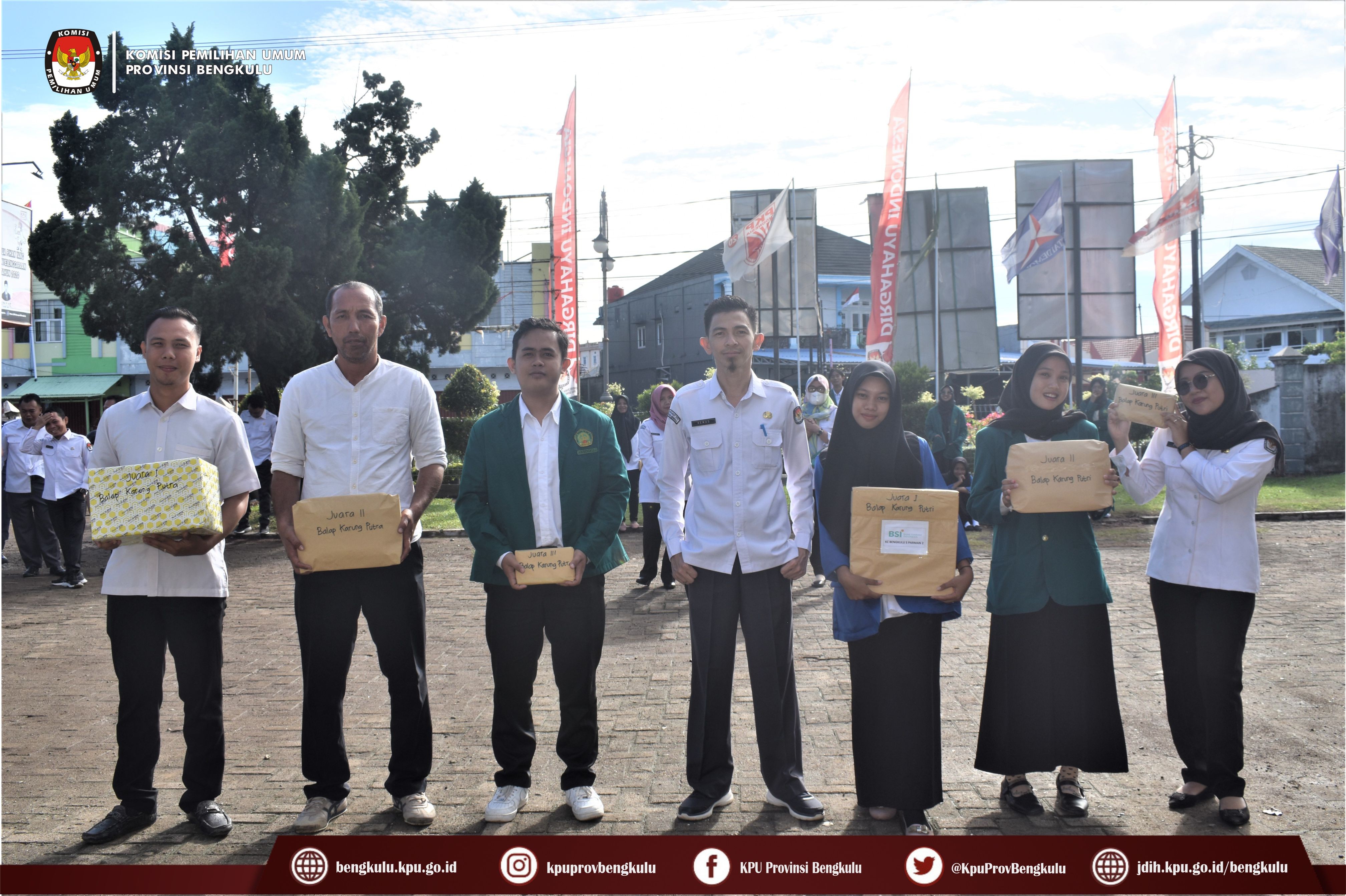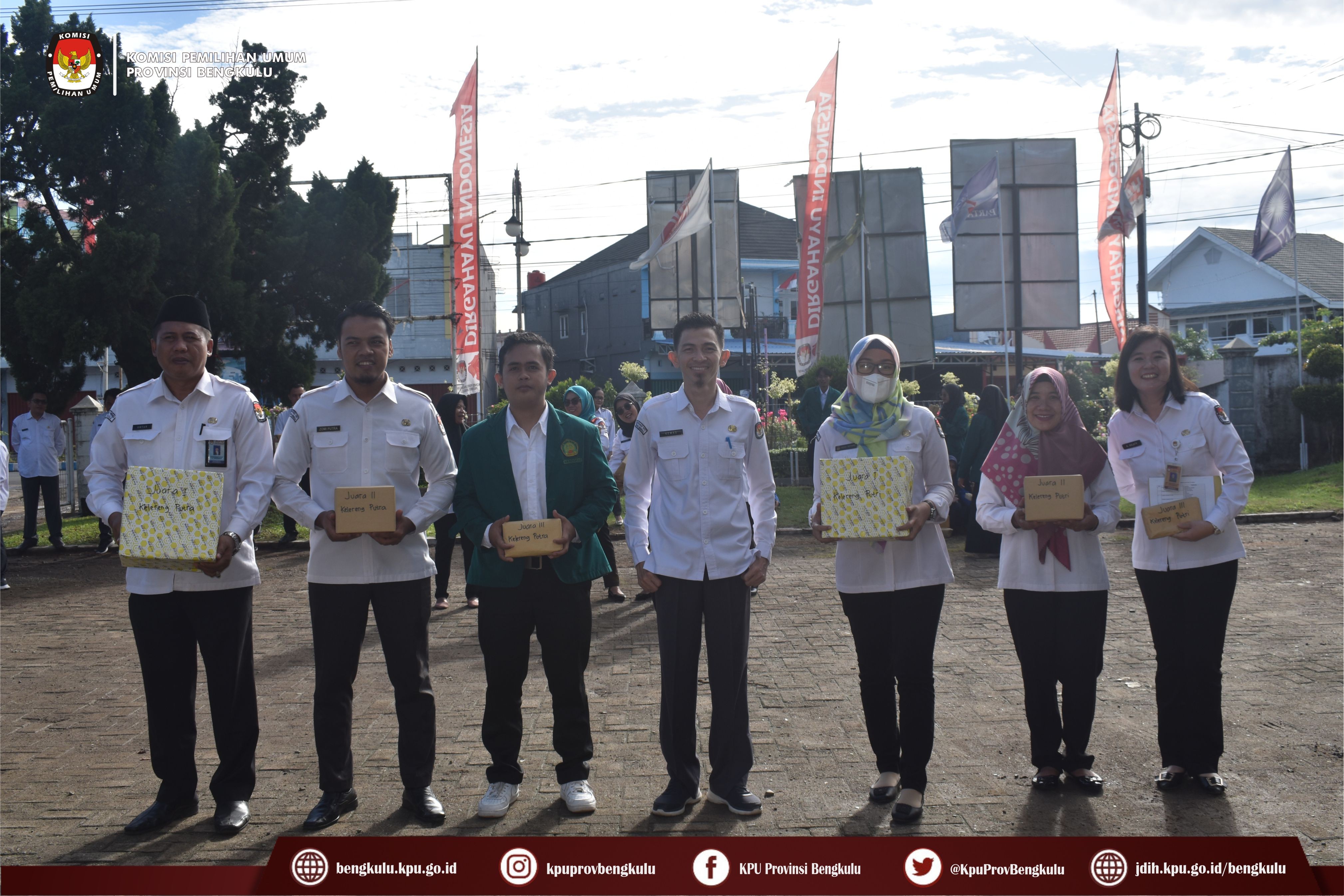 Bengkulu-bengkulu.kpu.go.id, Anggota KPU Provinsi Bengkulu Emex Verzoni dan Sekretaris Kemas Mohammad Ajir didampingi Kabag KUL Sudirman dan Kabag TPPPHHS Oktan Huzaeiry membagikan hadiah lomba dalam rangka memeriahkan Hari Ulang Tahun Republik Indonesia ke-77 di Lingkungan Sekretariat KPU Provinsi Bengkulu. Pembagian hadiah dilaksanakan di halaman Kantor KPU Provinsi Bengkulu, Senin (22/8). Adapun rincian hadiah lomba yang dibagikan adalah lomba kelereng dalam sendok, karaoke, joged balon, memasukkan paku dalam botol, balap karung, makan kerupuk, estafet tepung, dan memindahkan belut. Selamat kepada juara lomba semoga di tahun depan lebih meriah.