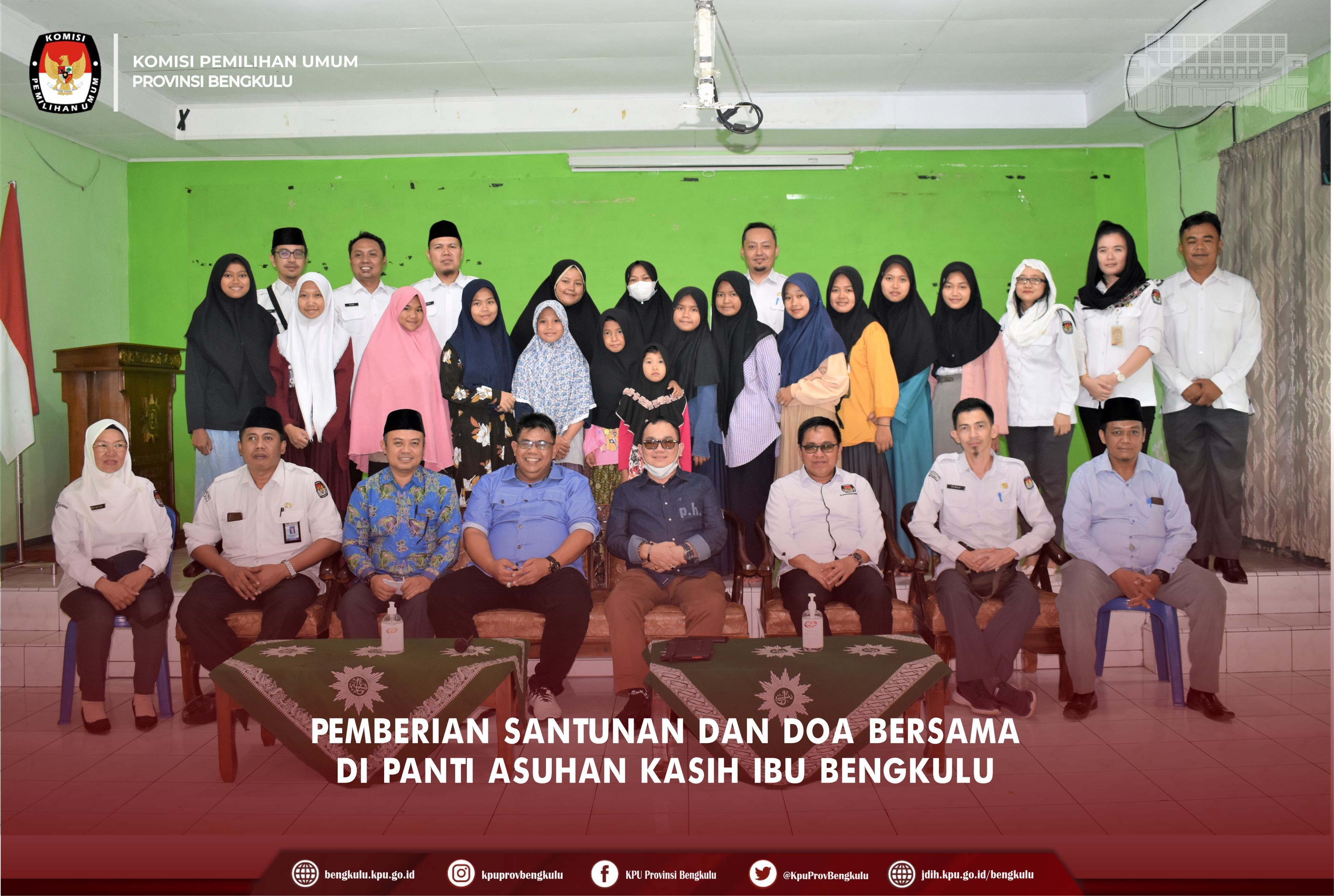 Bengkulu-bengkulu.kpu.go.id, Anggota KPU RI Parsadaan Harahap hadir dalam giat Pemberian Santunan dan Doa Bersama di Aula Panti Asuhan Aisyiyah Kasih Ibu Bengkulu, Senin (22/8). Dalam kegiatan tersebut Pimpinan Panti Asuhan Kasih Ibu Bengkulu menyampaikan ucapan terima kasih dan selamat datang kepada Anggota KPU RI Parsadaan Harahap beserta Anggota, Sekretaris dan Jajaran Sekretariat KPU Provinsi Bengkulu. Sementara itu, dalam sambutannya Parsadaan menyampaikan bahwa kegiatan ini harus dilanjutkan dan tingkatkan untuk ke depannya untuk mendapatkan keseimbangan antara kerja yang kita lakukan (KPU-red) dengan nuasa kegiatan seperti ini mudah-mudahan berkah dan bentuk kepedulian terhadap sesama. Ini merupakan sebuah ikhtiar dan upaya yang dilakukan oleh KPU RI untuk komitmen yang kuat dalam pelaksanaan tahapan pemilu agar berjalan dengan demokratis.