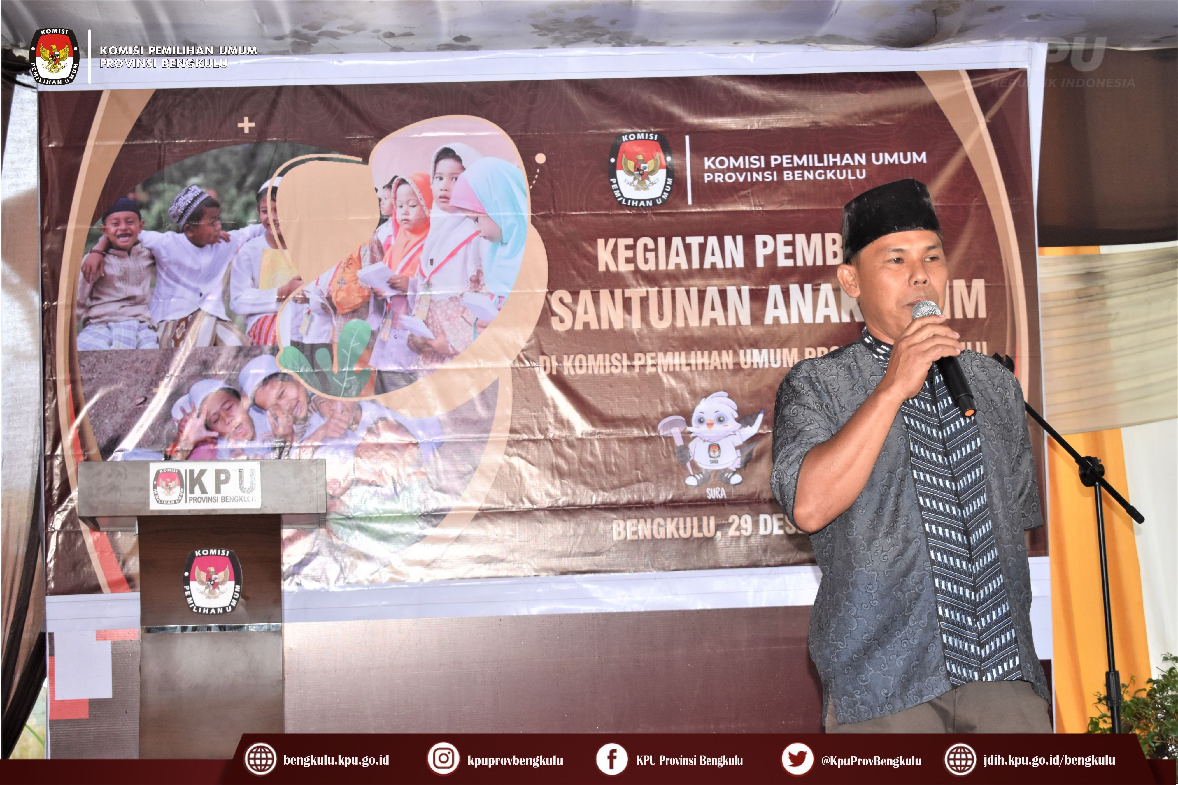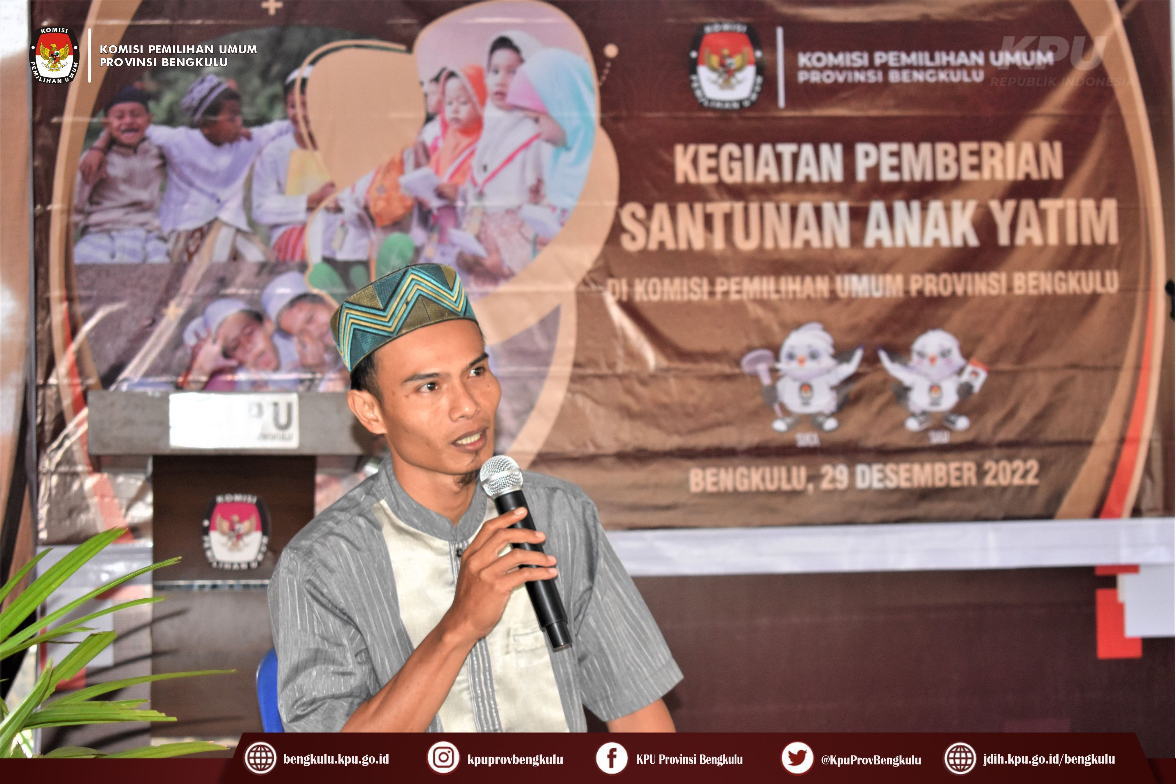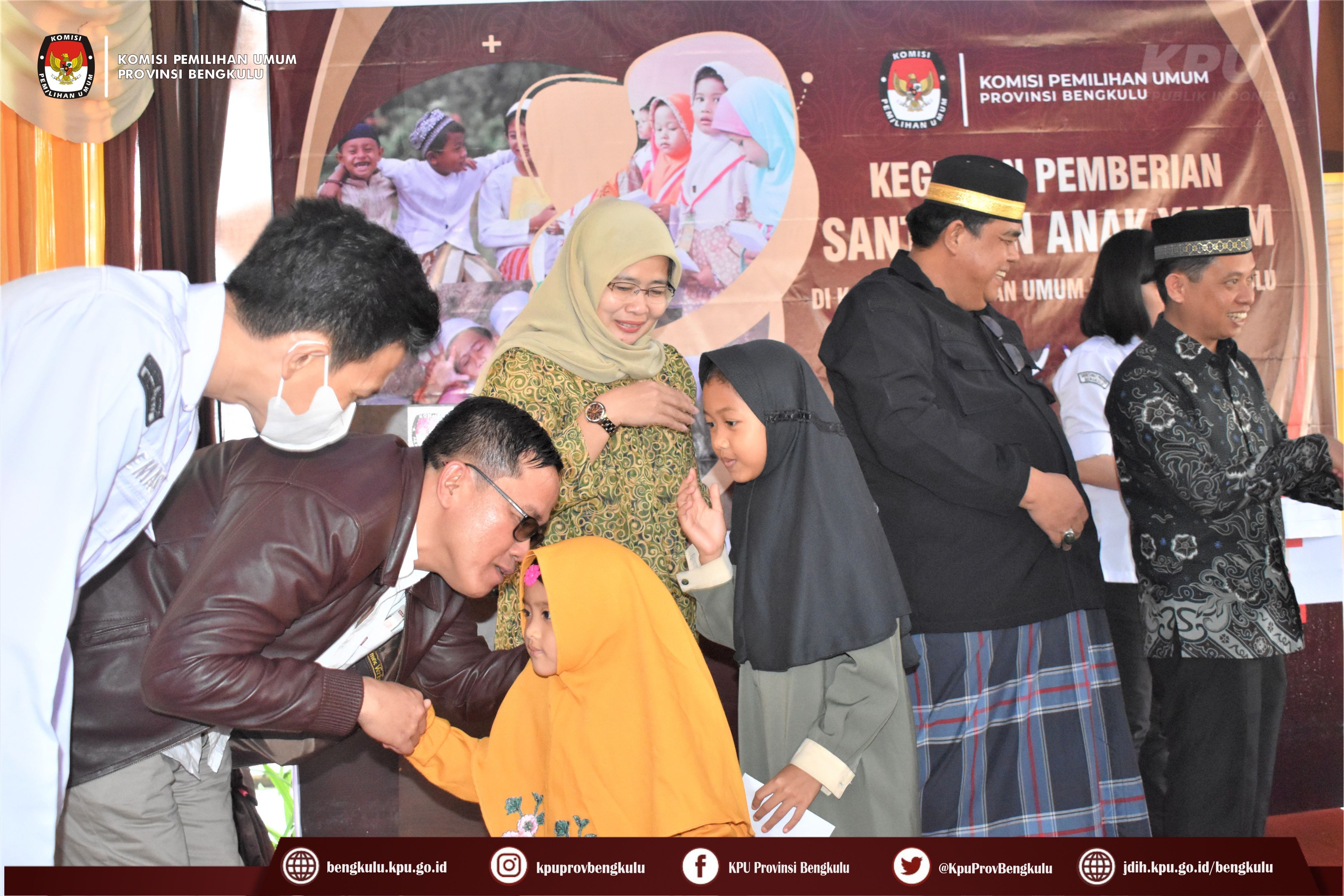 Bengkulu-bengkulu.kpu.go.id, Ketua KPU Provinsi Bengkulu Irwan Saputra bersama Anggota KPU Provinsi Bengkulu Darlinsyah, Emex Verzoni, dan Irna Riza Yuliastuty serta Sekretaris Kemas Mohammad Ajir memberikan Santunan kepada anak yatim di Lingkungan KPU dan masyarakat setempat di Halaman Kantor KPU Provinsi Bengkulu, Kamis (29/12).