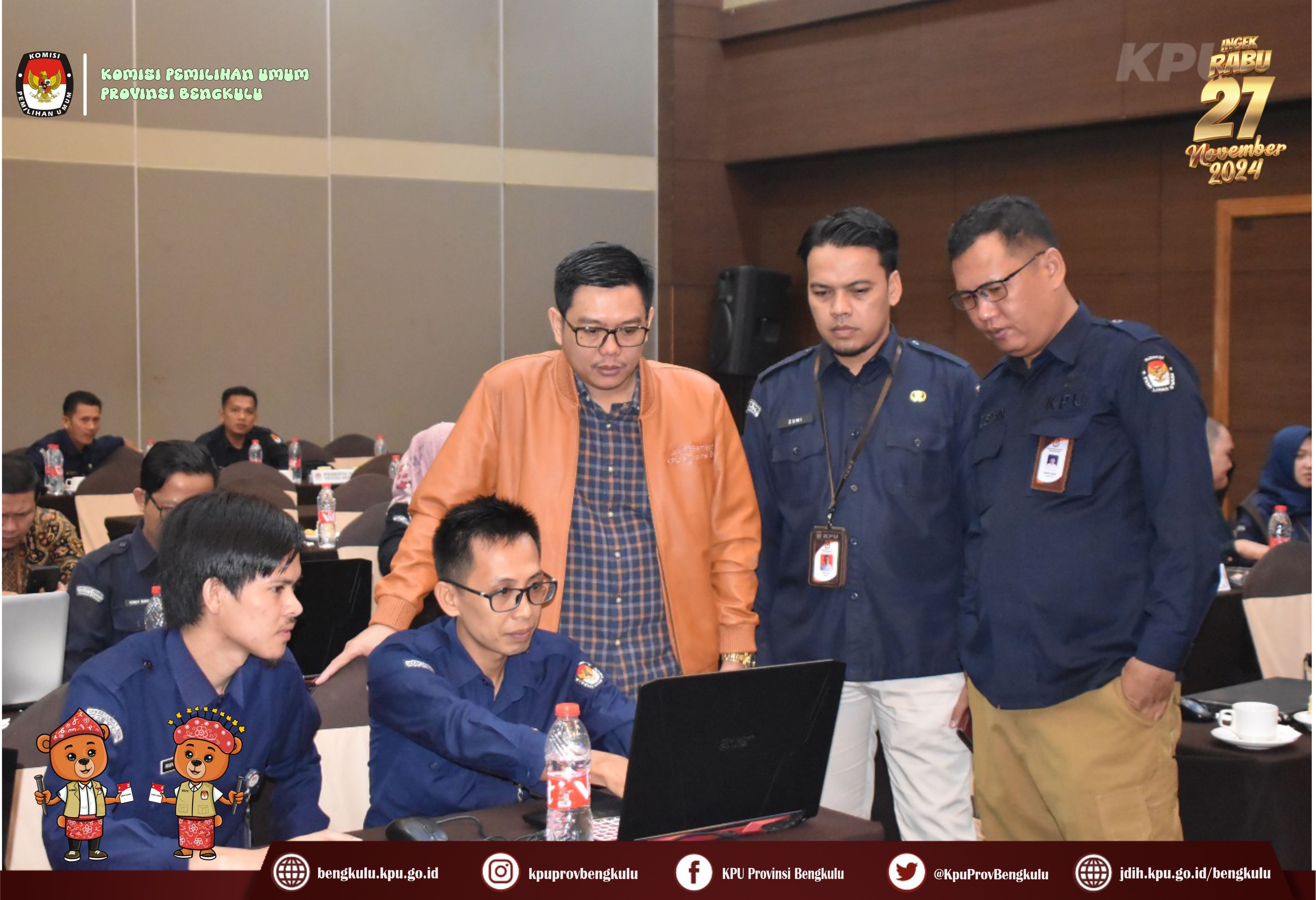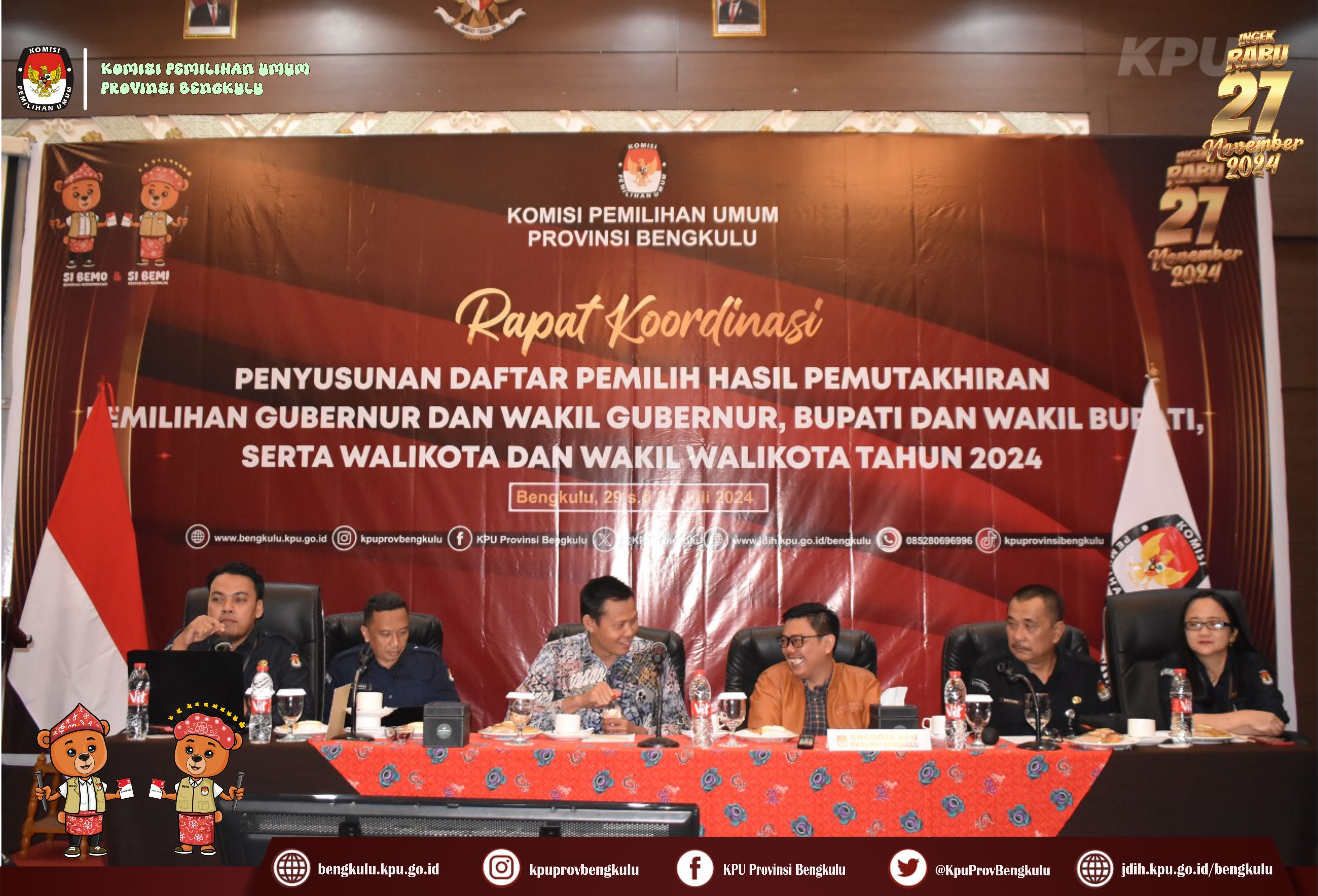 Bengkulu, bengkulu.kpu.go.id - Hari kedua Rapat Koordinasi Penyusunan Daftar Pemilih Hasil Pemutakhiran Pemilihan Gubernur dan Wakil Gubernur, Bupati dan Wakil Bupati serta Walikota dan Wakil Walikota Tahun 2024 Pemilihan Data hasil dilanjutkan dengan pemyandingan, penyusunan dan pengecekan coklit oleh admin/operator sidalih. Tujuan penyusunan tersebut demi terwujudnya Daftar Pemilih yang komprehensif, akurat dan mutakhir untuk Pemilihan Gubernur dan Wakil Gubernur, Bupati dan Wakil Bupati, serta Walikota dan Wakil Walikota Tahun 2024.