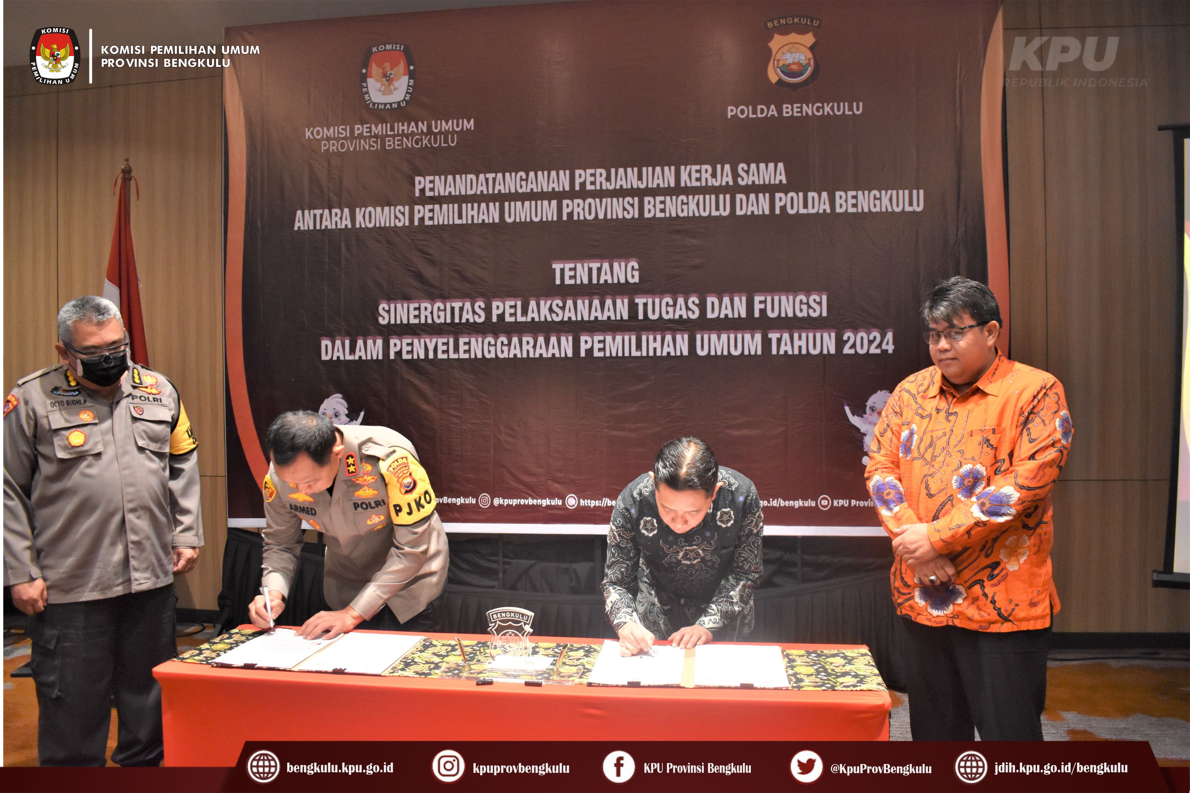 Penandatangan Perjanjian Kerjasama Antara KPU Provinsi Bengkulu dan Kepolisian Daerah Bengkulu