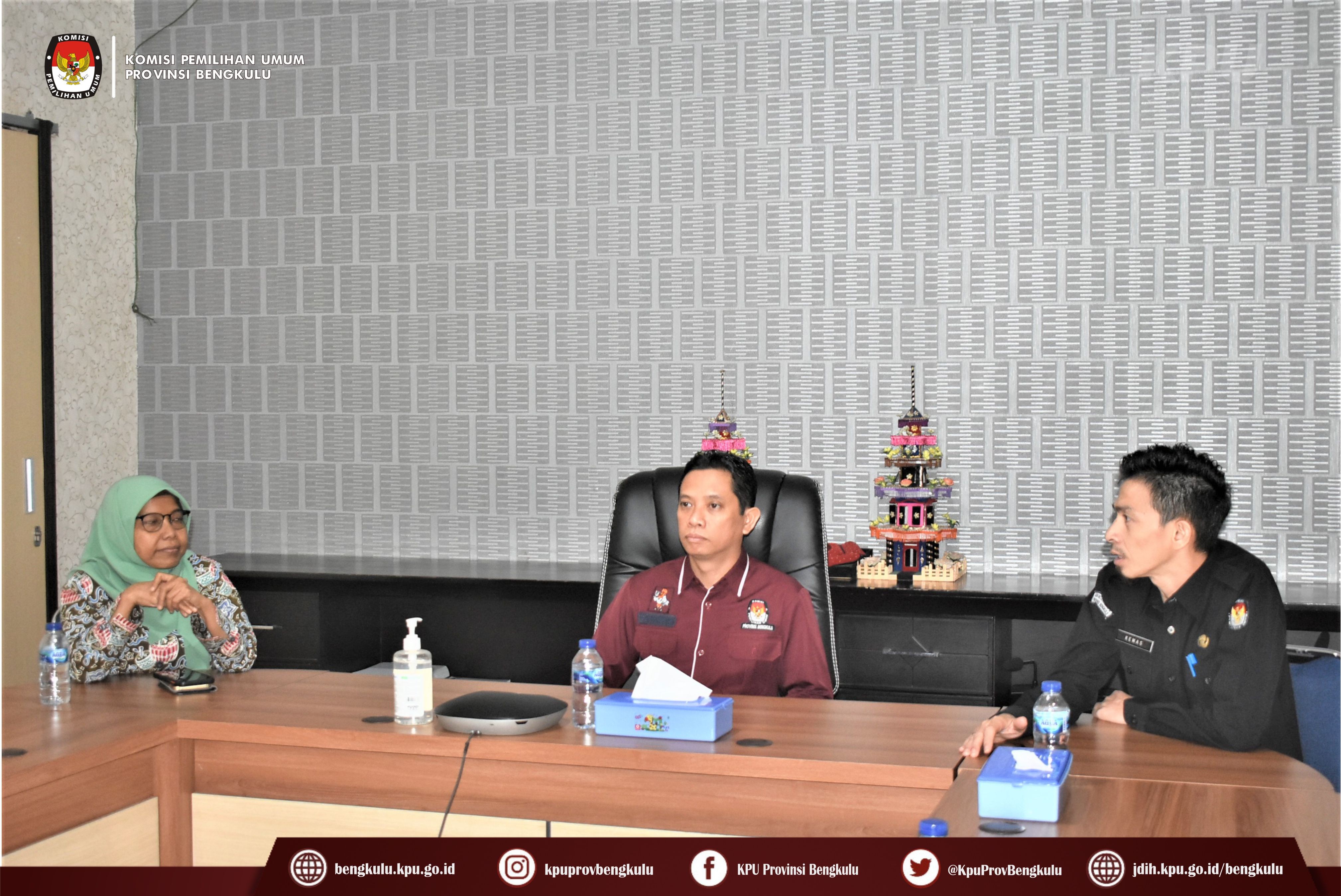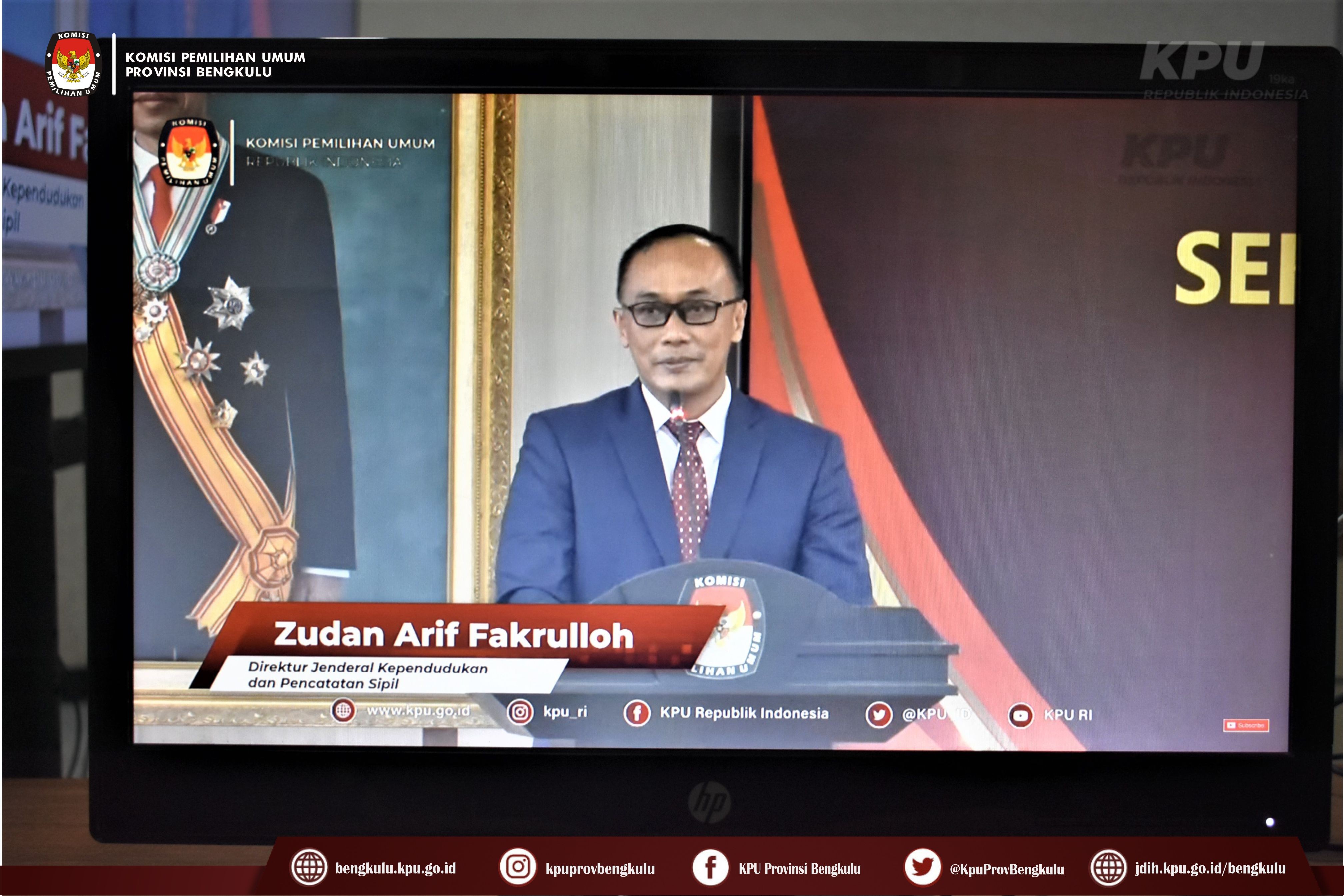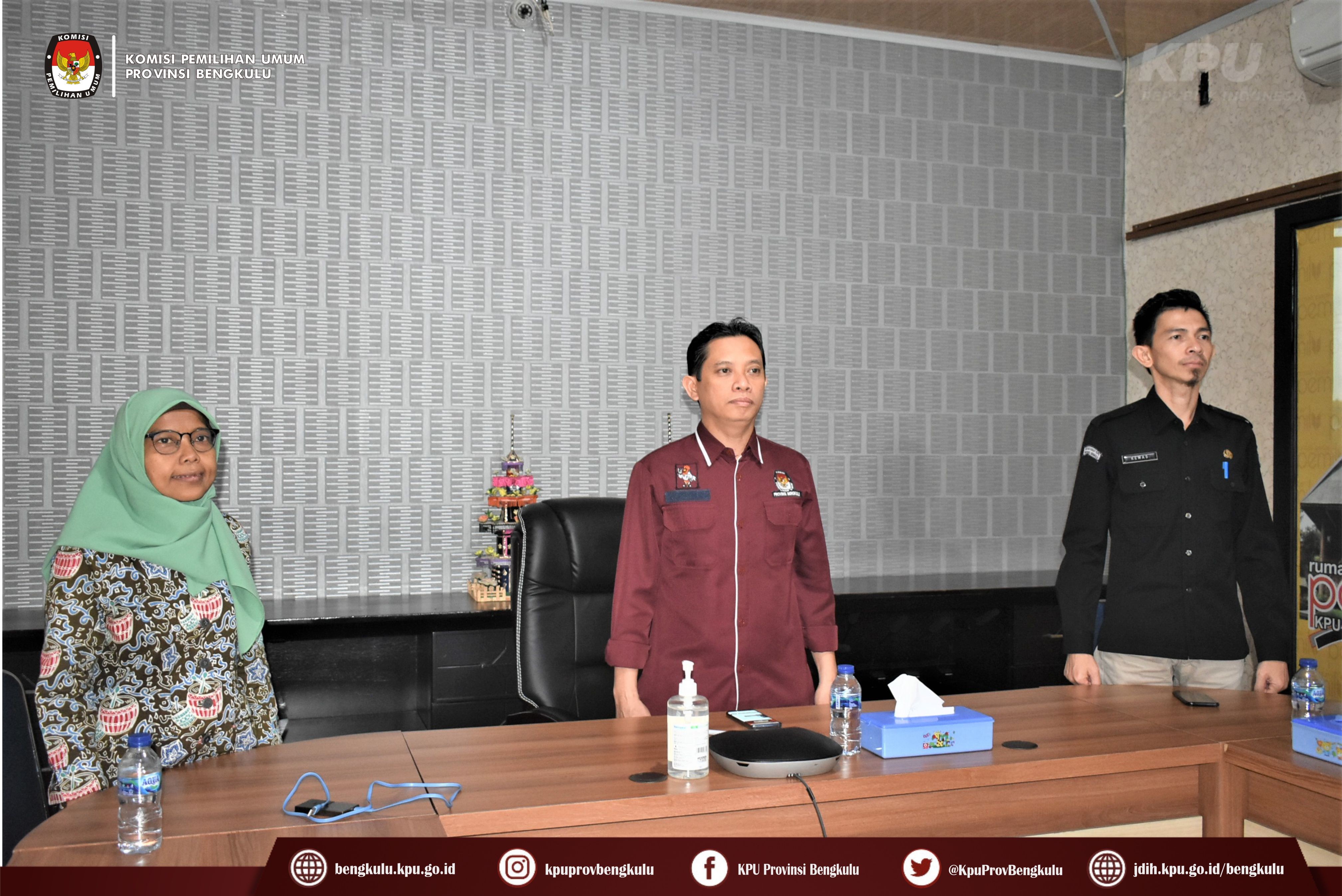 Bengkulu-bengkulu.kpu.go.id, Ketua KPU Provinsi Bengkulu Irwan Saputra bersama Anggota Siti Baroroh, Sekretaris Kemas M Ajir dan Kasubbag Data dan Informasi Yunita Dika Fitri mengikuti Penandatanganan Perjanjian Kerjasama Antara Setjen KPU RI dengan Dirjen Dukcapil Kemendagri secara daring melalui live streaming youtube KPU RI, Rabu (29/6). Penandatanganan kerjasama ini dilakukan oleh Sekretaris Jenderal KPU RI Bernad Dermawan Sutrisno dan Dirjen Dukcapil Kemendagri Zudan Arif Fakrulloh disaksikan Ketua KPU RI Hasyim Asy'ari dan Anggota KPU RI Yulianto Sudrajat, Parsadaan Harahap, August Mellaz, dan M. Afifuddin. Setelah penandatanganan acara dilanjutkan dengan sambutan Dirjen Dukcapil Kemendagri Zudan Arif Fakrulloh dan Ketua KPU RI Hasyim Asy'ari.