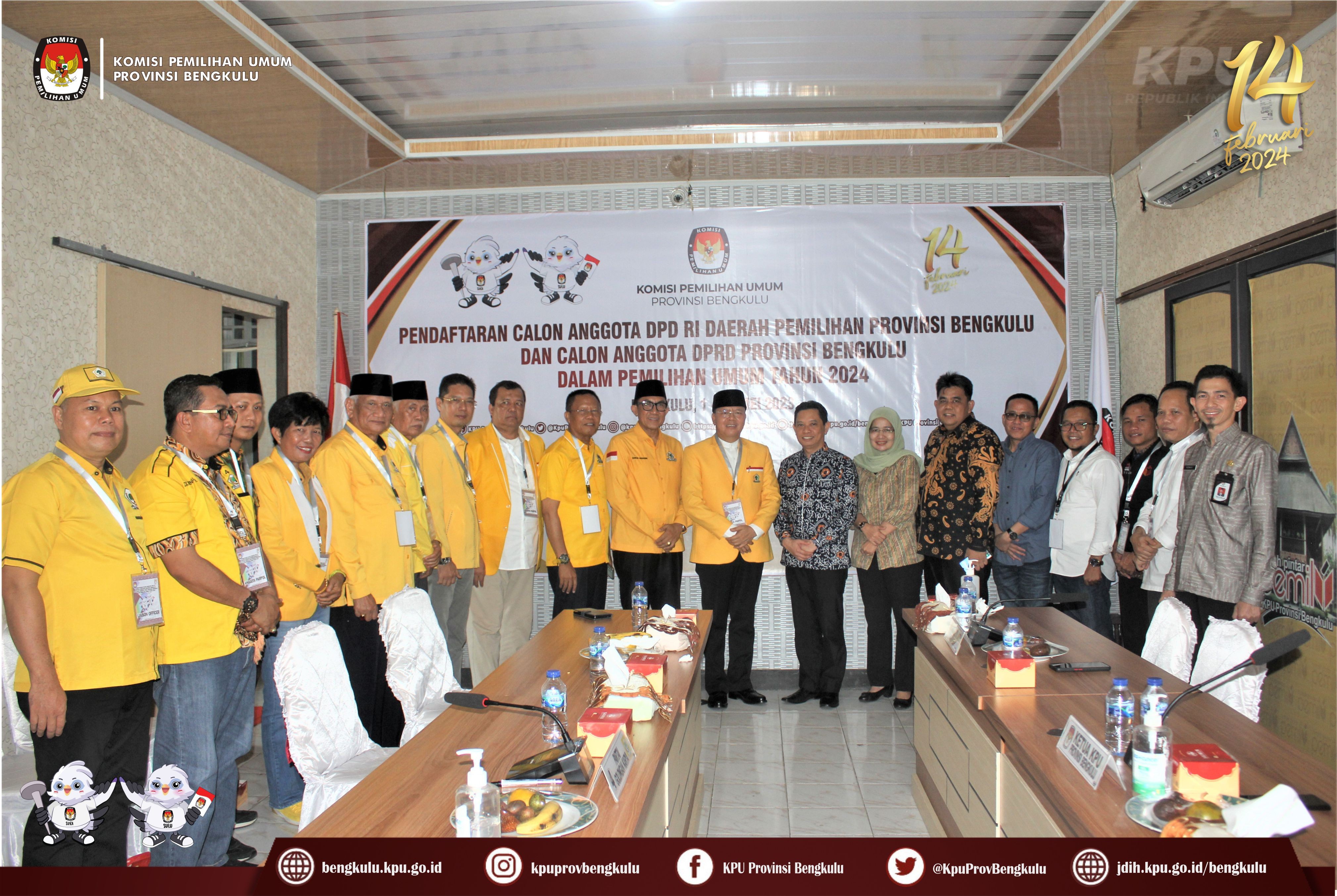 Pengajuan Bakal Calon Anggota Dewan Perwakilan Rakyat Daerah Pemilihan Provinsi Bengkulu dari Partai Golkar
