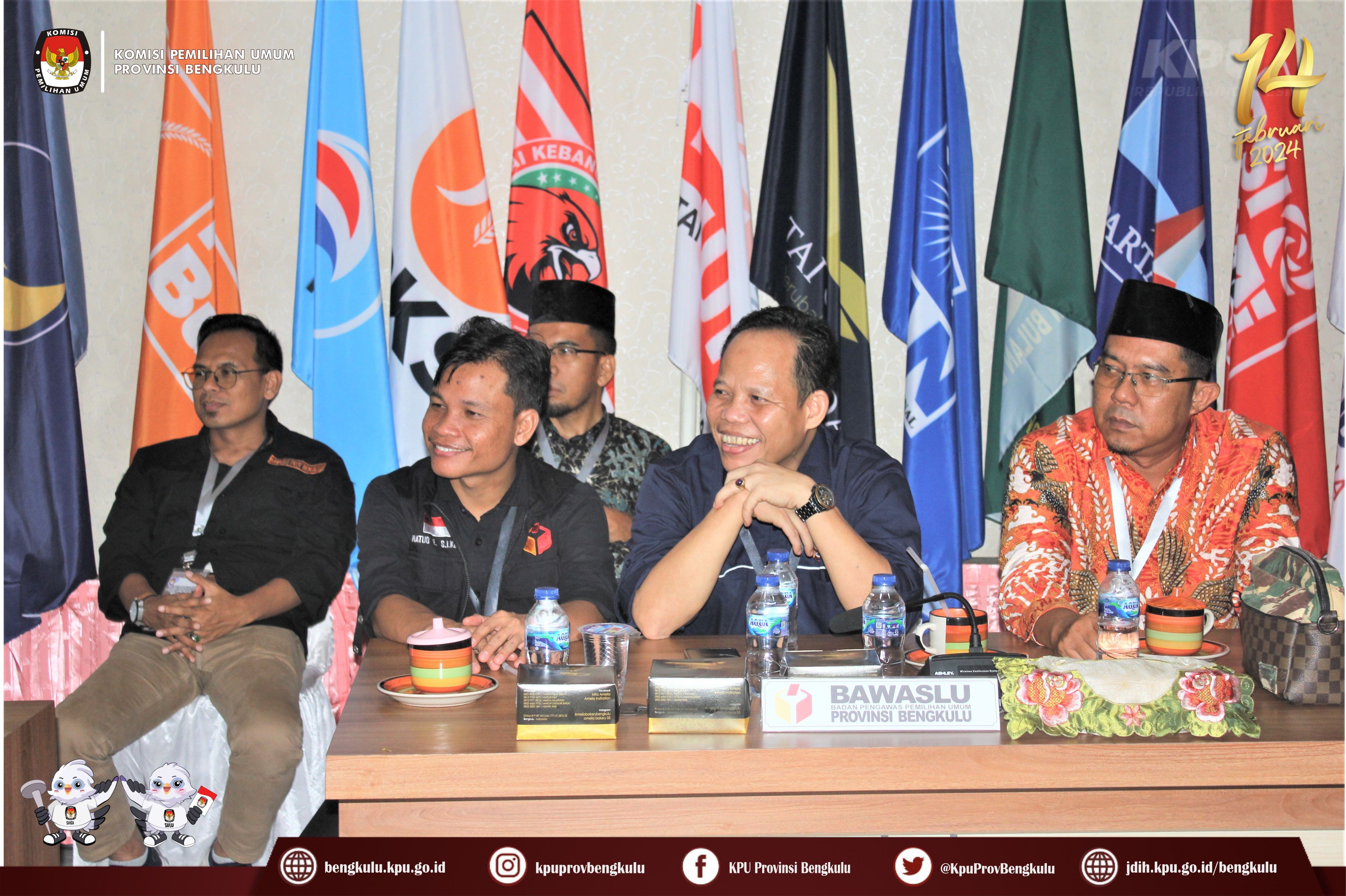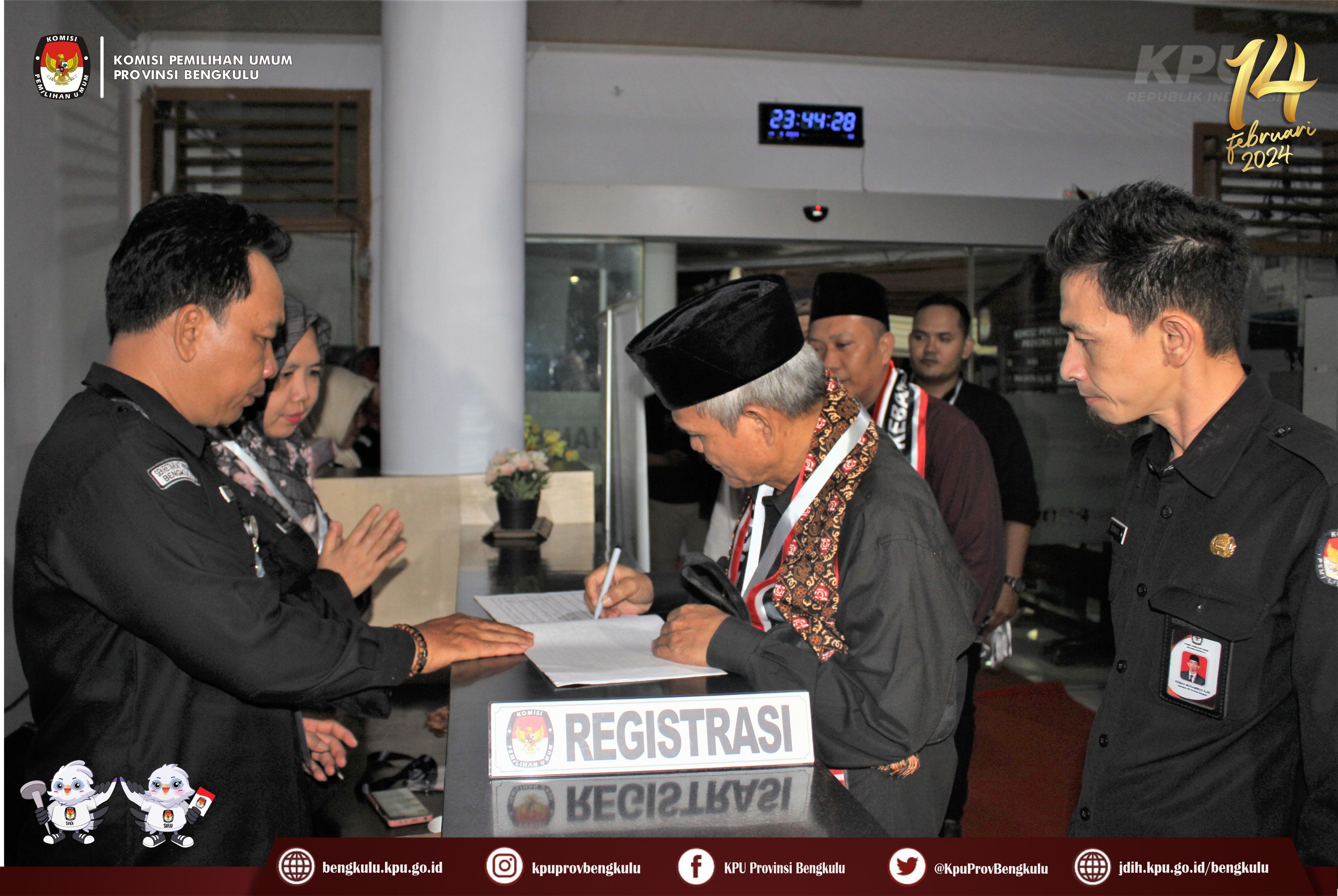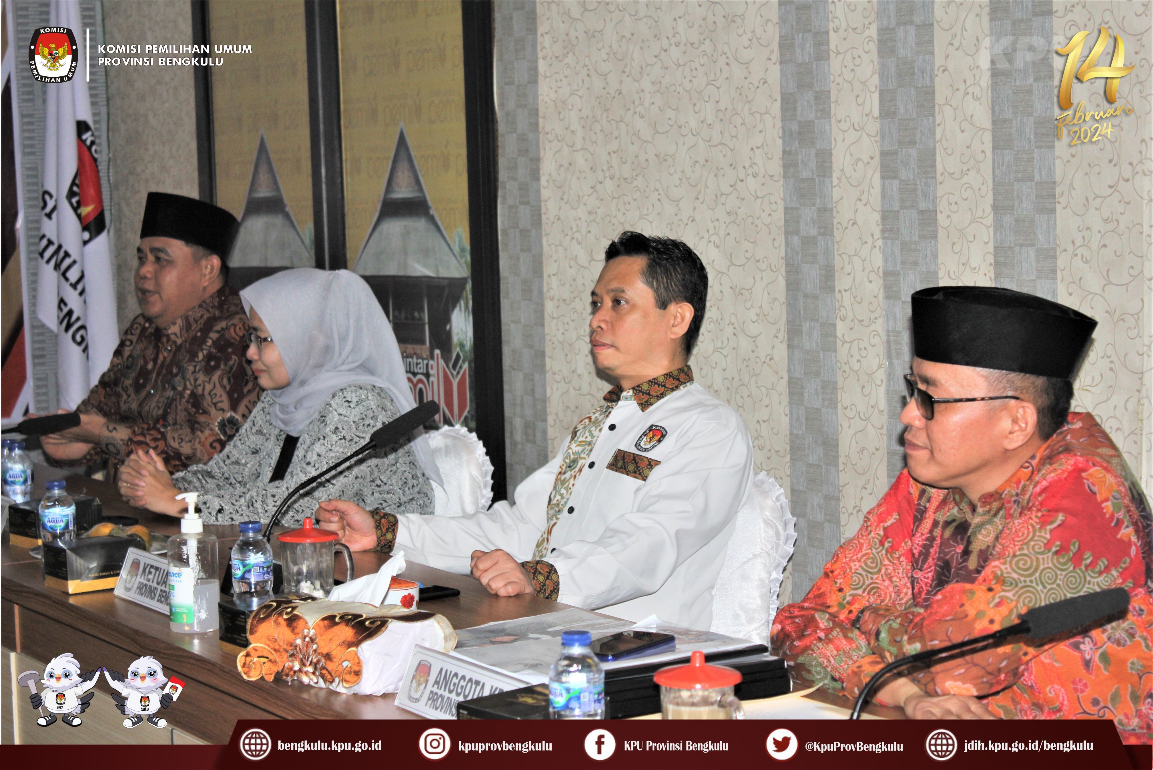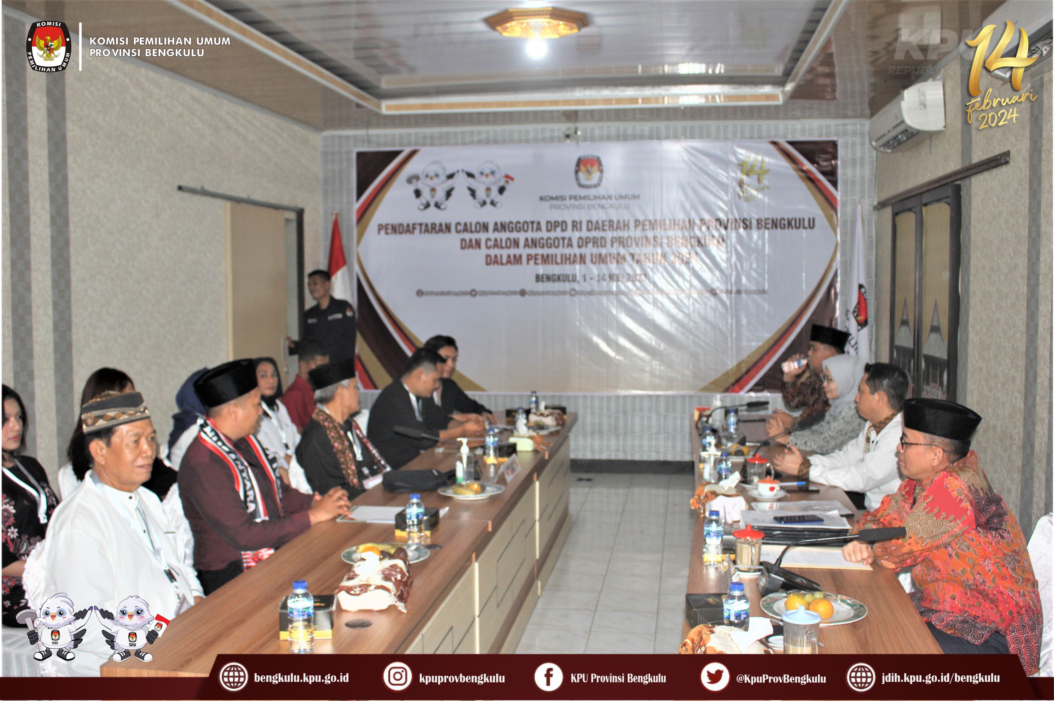 Ketua KPU Provinsi Bengkulu Irwan Saputra bersama Anggota Darlinsyah, Emex Verzoni dan Irna Riza Yuliastuty serta Sekretaris Kemas Mohammad Ajir menerima Pengajuan Bakal Calon Anggota Dewan Perwakilan Rakyat Daerah Pemilihan Provinsi Bengkulu dari Partai Kebangkitan Nusantara (PKN) pada Pemilihan Umum Serentak 2024, Minggu (14/5/2023) di Kantor KPU Provinsi Bengkulu. Rangkaian acara berjalan khidmat dan lancar, dalam pelaksanaanya diisi dengan penyampaian maksud dan tujuan dari Partai Kebangkitan Nusantara (PKN), penyerahan dokumen syarat Pengajuan Bakal Calon, sambutan dari Ketua KPU Provinsi Bengkulu Irwan Saputra, foto bersama, pemeriksaan dokumen syarat calon dan konferensi pers. Hadir dalam Pengajuan Bakal Calon Anggota Dewan Perwakilan Rakyat Daerah adalah PD Partai Kebangkitan Nusantara (PKN), Ketua Bawaslu Provinsi Bengkulu Halid Saifullah dan Anggota Dodi Herwansyah, serta Natijo Elem. Pelaksanaan Pengajuan disiarkan live streaming melalui youtube KPU Provinsi Bengkulu.