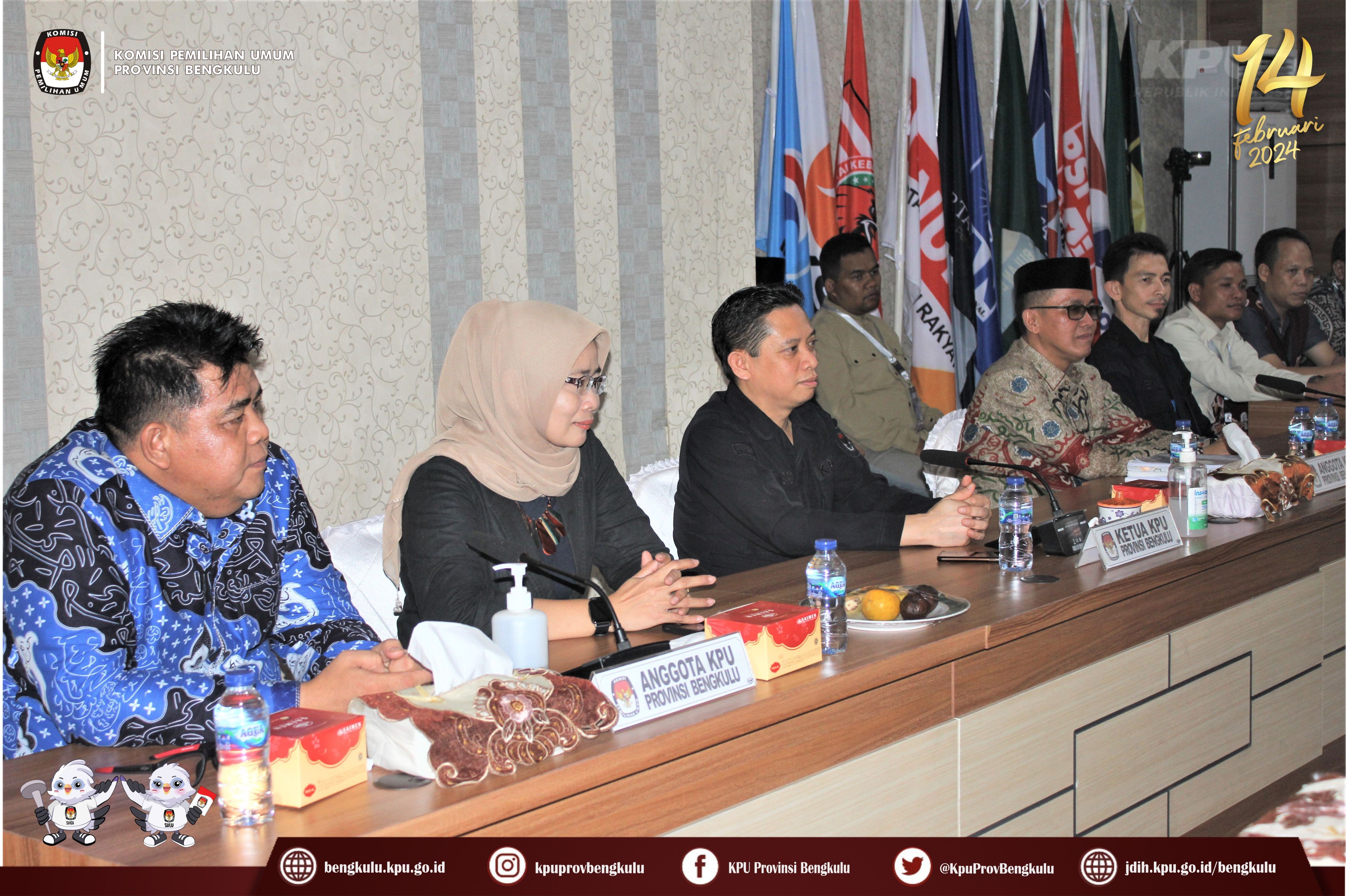 Bengkulu-bengkulu.kpu.go.id, Ketua KPU Provinsi Bengkulu Irwan Saputra bersama Anggota Darlinsyah, Emex Verzoni dan Irna Riza Yuliastuty serta Sekretaris Kemas Mohammad Ajir menerima Pengajuan Bakal Calon Anggota Dewan Perwakilan Rakyat Daerah Pemilihan Provinsi Bengkulu dari Partai Persatuan Indonesia (PERINDO) pada Pemilihan Umum Serentak 2024, Sabtu (13/5/2023) di Kantor KPU Provinsi Bengkulu. Rangkaian acara berjalan khidmat dan lancar, dalam pelaksanaanya diisi dengan penyampaian maksud dan tujuan dari Partai Persatuan Indonesia (PERINDO), penyerahan dokumen syarat Pengajuan Bakal Calon, sambutan dari Ketua KPU Provinsi Bengkulu Irwan Saputra, foto bersama, pemeriksaan dokumen syarat calon dan konferensi pers. Hadir dalam Pengajuan Bakal Calon Anggota Dewan Perwakilan Rakyat Daerah adalah Pengurus DPW Partai Persatuan Indonesia (PERINDO), Ketua Bawaslu Provinsi Bengkulu Halid Saifullah dan Anggota Fahamsyah serta Natijo Elem. Pelaksanaan Pengajuan disiarkan live streaming melalui youtube KPU Provinsi Bengkulu.