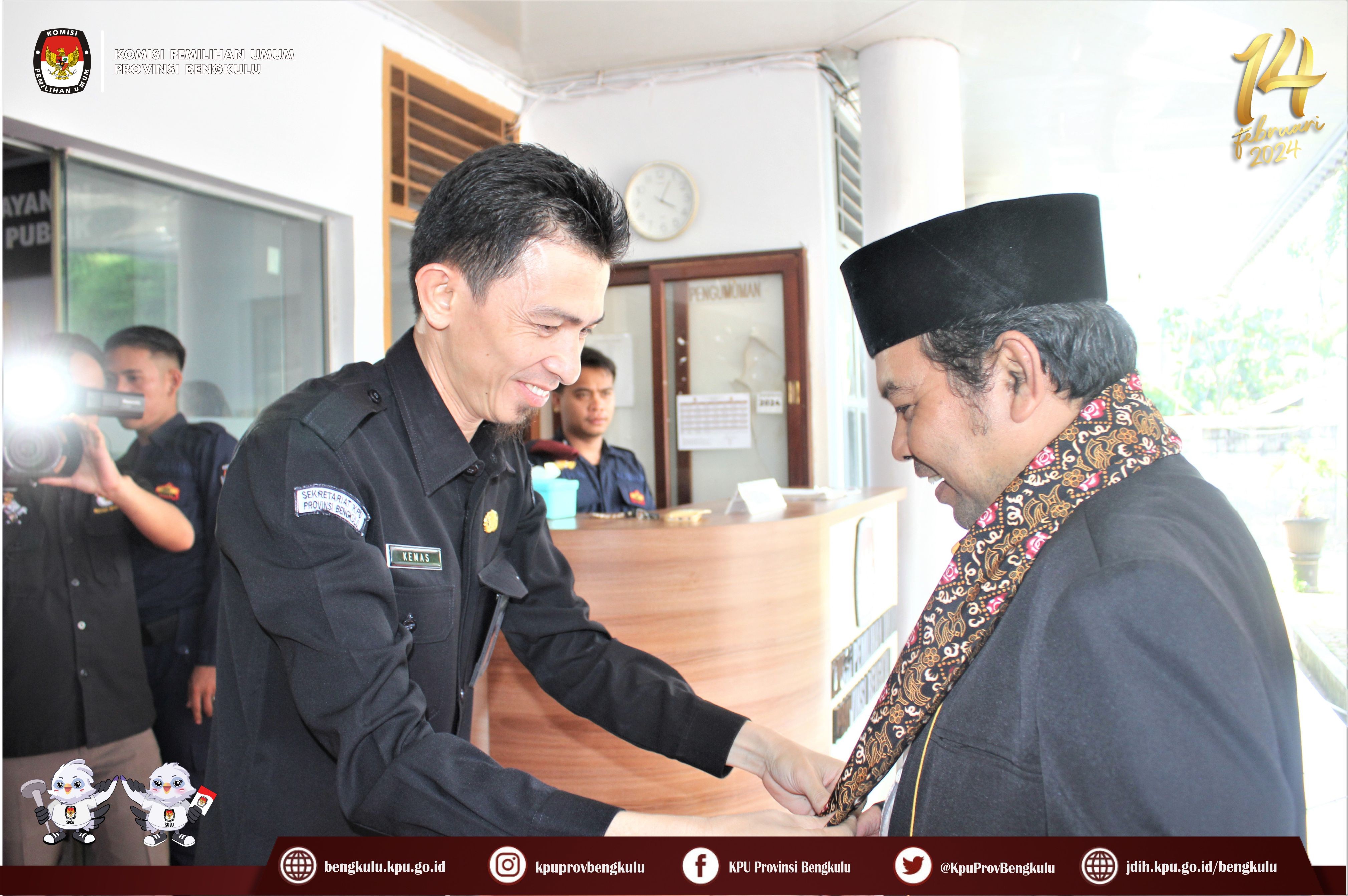 Bengkulu-bengkulu.kpu.go.id, Ketua KPU Provinsi Bengkulu Irwan Saputra bersama Anggota Darlinsyah, Emex Verzoni dan Irna Riza Yuliastuty serta Sekretaris Kemas Mohammad Ajir menerima Pengajuan Bakal Calon Anggota Dewan Perwakilan Rakyat Daerah Pemilihan Provinsi Bengkulu dari Partai Ummat pada Pemilihan Umum Serentak 2024, Minggu (14/5/2023) di Kantor KPU Provinsi Bengkulu. Rangkaian acara berjalan khidmat dan lancar, dalam pelaksanaanya diisi dengan penyampaian maksud dan tujuan dari Partai Ummat, penyerahan dokumen syarat Pengajuan Bakal Calon, sambutan dari Ketua KPU Provinsi Bengkulu Irwan Saputra, foto bersama, pemeriksaan dokumen syarat calon dan konferensi pers. Hadir dalam Pengajuan Bakal Calon Anggota Dewan Perwakilan Rakyat Daerah adalah Pengurus DPW Partai Ummat, Anggota Bawaslu Provinsi Bengkulu Dodi Herwansyah. Pelaksanaan Pengajuan disiarkan live streaming melalui youtube KPU Provinsi Bengkulu.