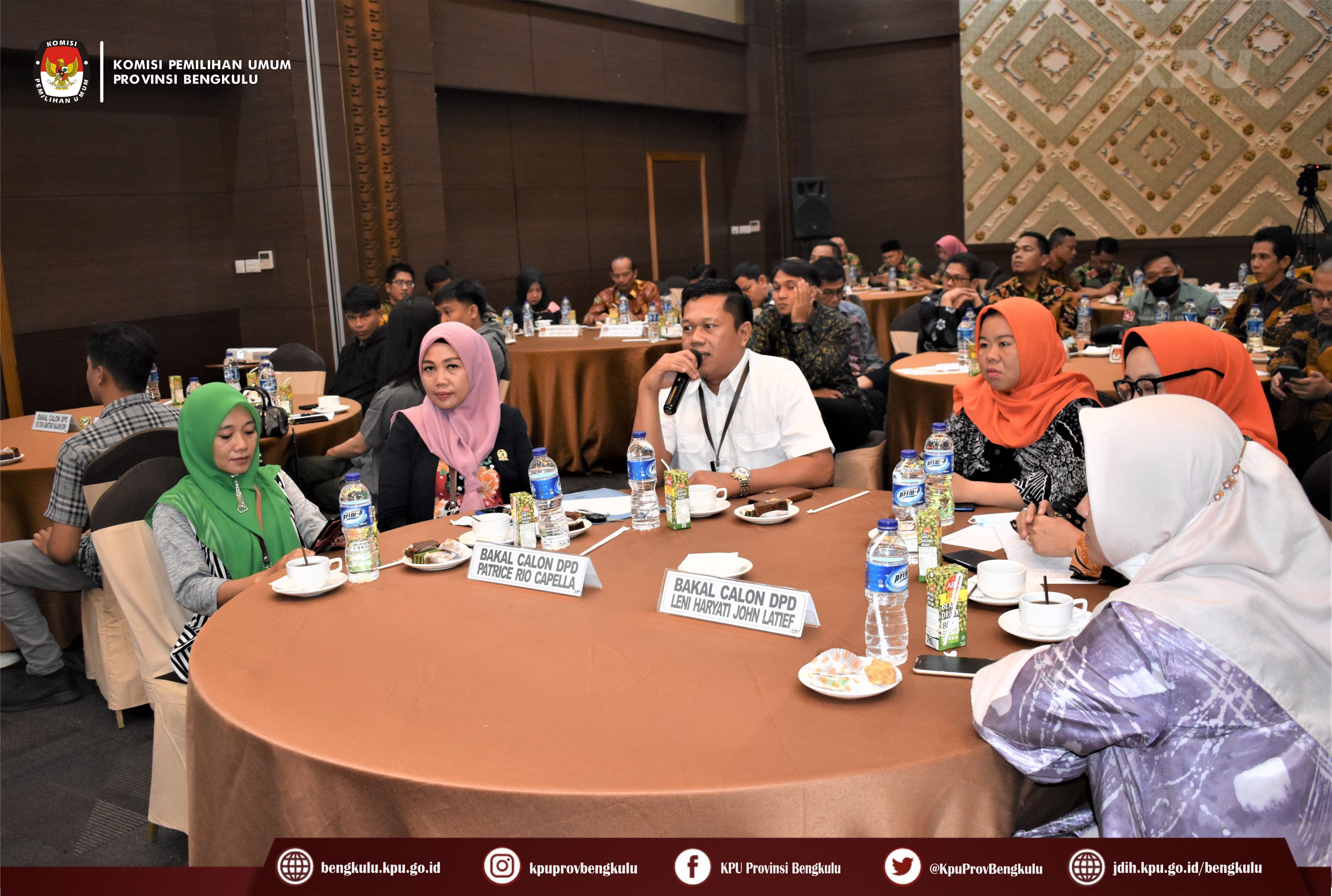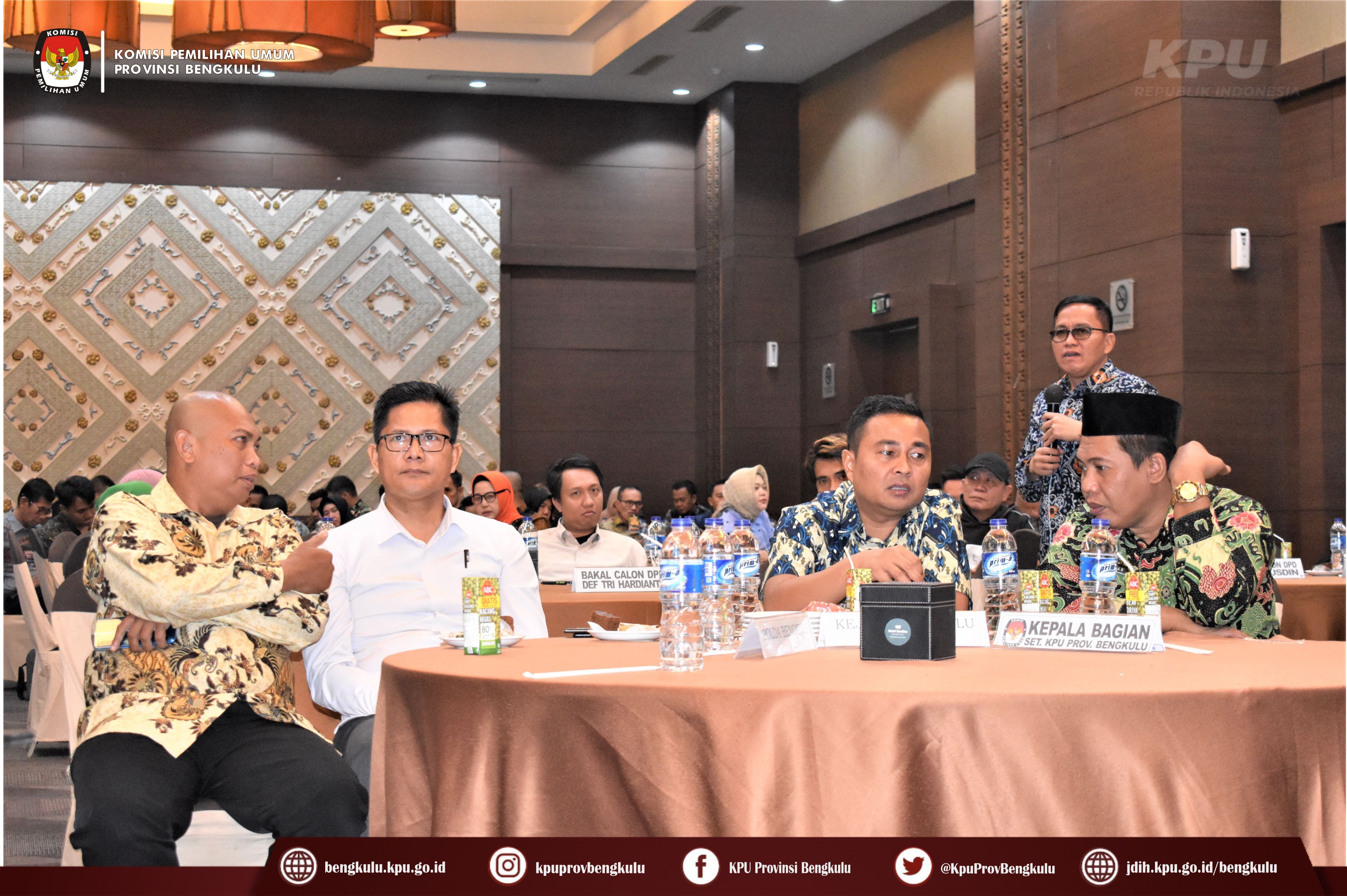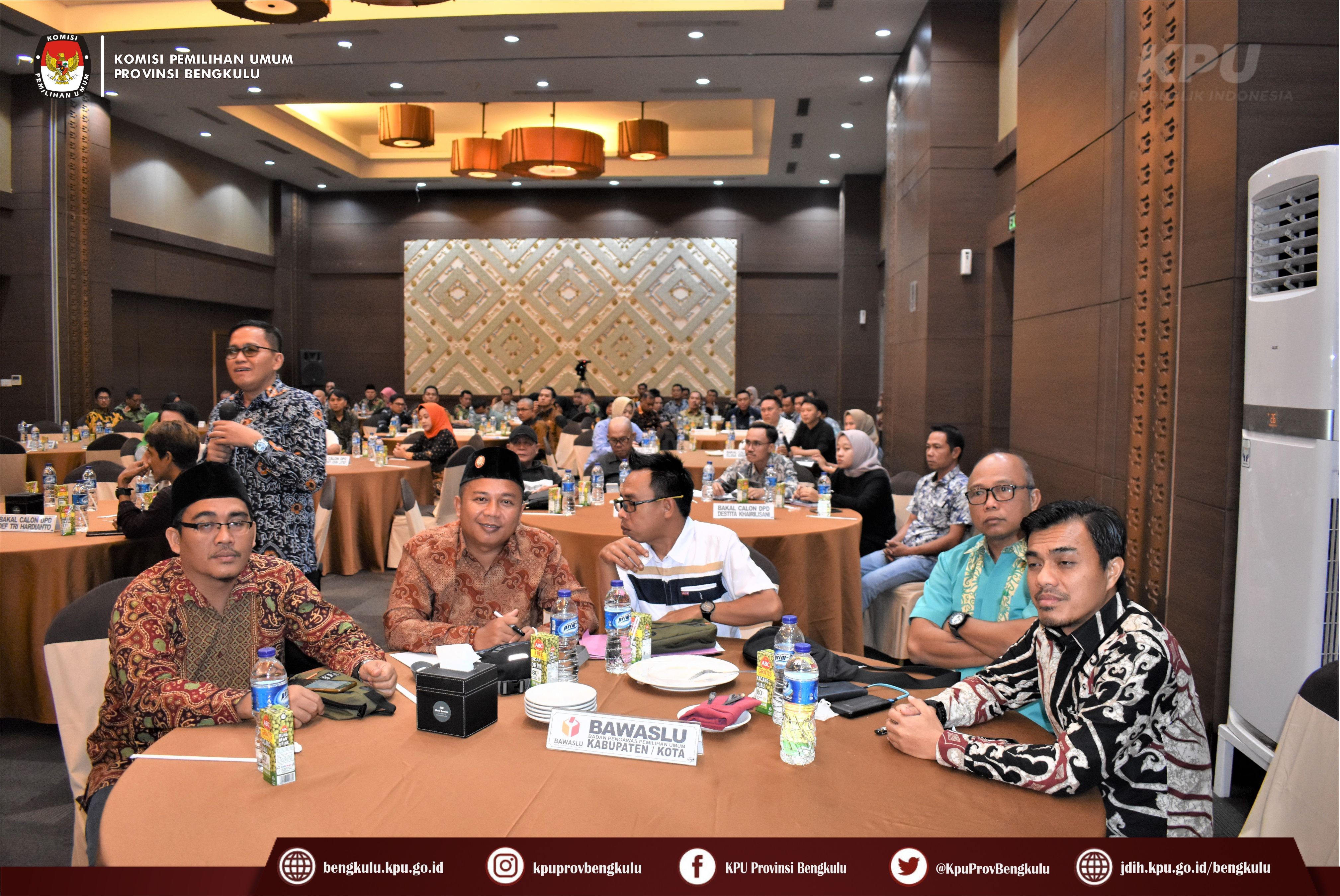 Hadir dalam kegiatan rapat koordinasi tersebut adalah Ketua dan Anggota KPU Provinsi Bengkulu, Pihak Eksternal dari Polda dan Kejati Bengkulu, Bakal Calon, Petugas Penghubung dan Admin/Operator Silon Bakal Calon Anggota DPD, Anggota Bawaslu Kabupaten/Kota, Anggota Divisi Teknis Penyelenggaraan, Anggota Divisi Hukum dan Pengawasan, Kasubbag Teknis Penyelenggaraan Pemilu Partisipasi dan Hubungan Masyarakat, dan Admin/Operator Silon KPU Kabupaten/Kota se-Provinsi Bengkulu.